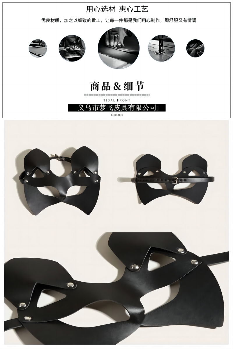 Mengfei nueva máscara de gato de Halloween Baile sexy cuero femenino con máscara SM cabeza divertida al por mayor