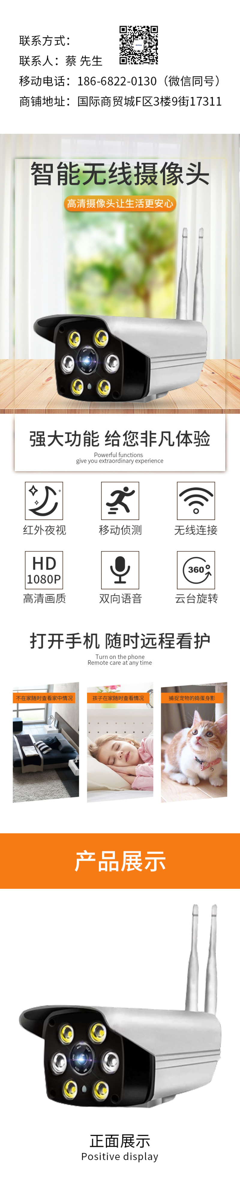 Cámara de red móvil WiFi remoto visión nocturna doméstica al aire libre Monitor al aire libre impermeable