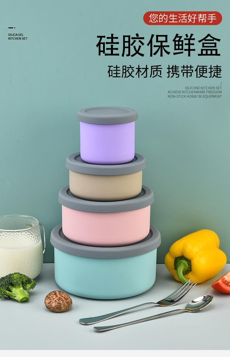 Caja de conservación de silicona 4 juegos de refrigeradores de microondas cerradura fresca y portátil lonchera de picnic