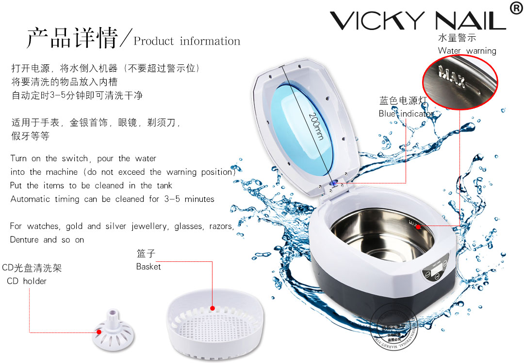 Hermosa punta de dedo CD Shaver máquina de limpieza ultrasónica doméstica joyas de oro y plata 750ml