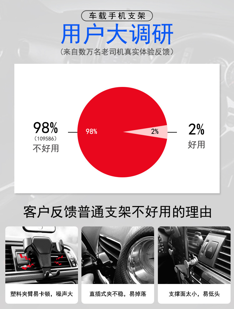 Nuevo soporte de teléfono móvil para vehículos de salida de aire soporte de teléfono móvil de aleación de aluminio general para vehículos de inducción de gravedad soporte de teléfono móvil