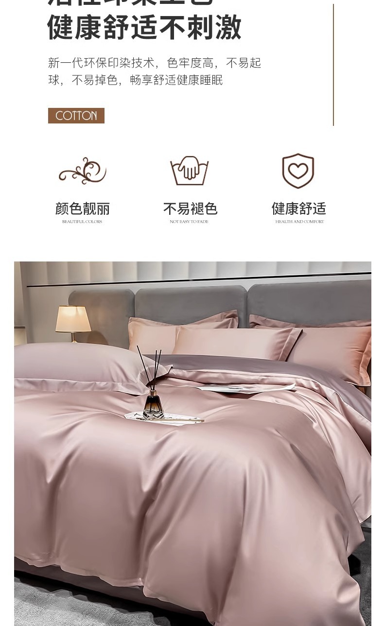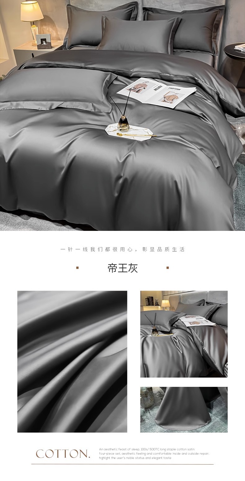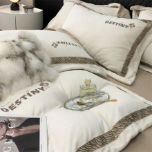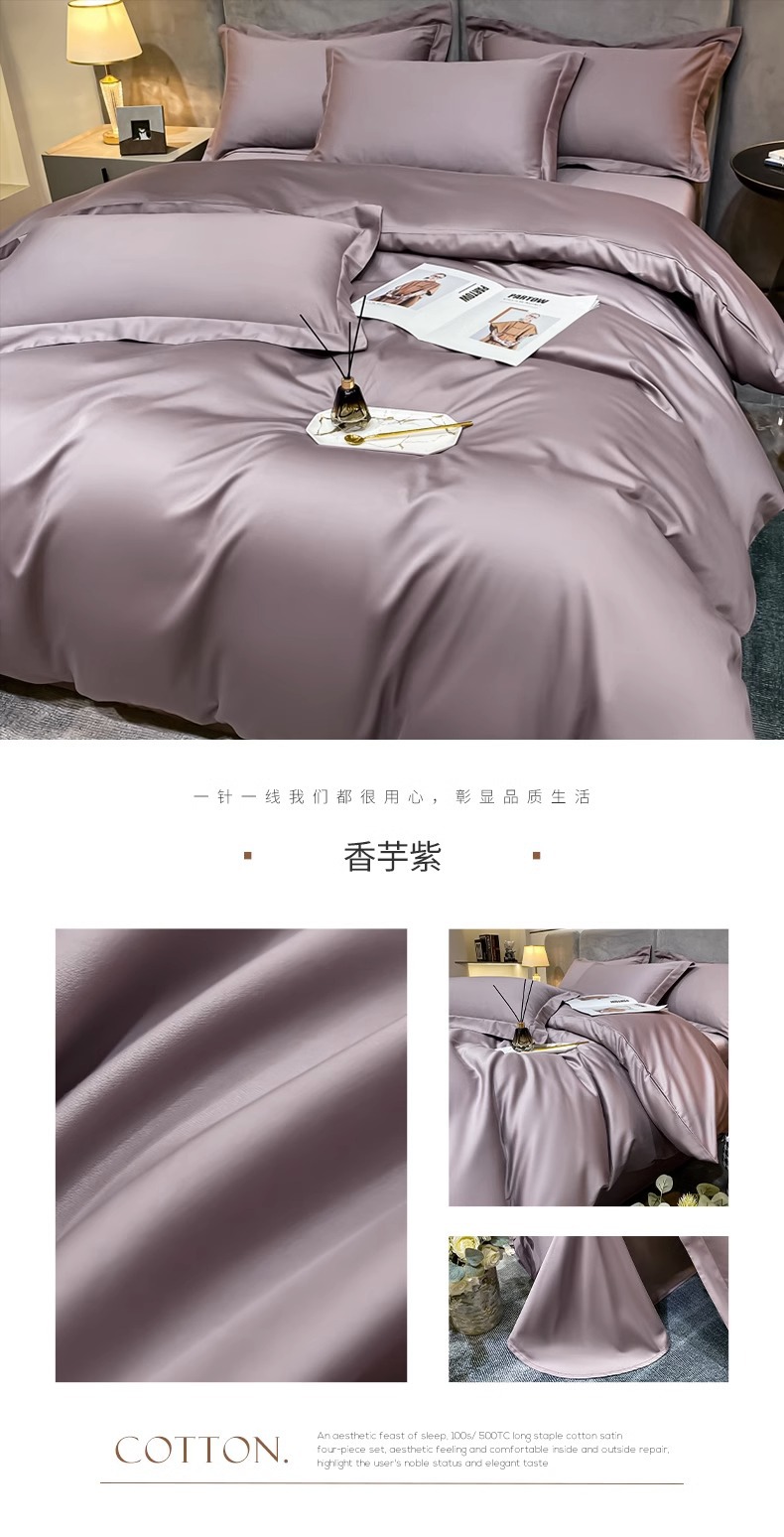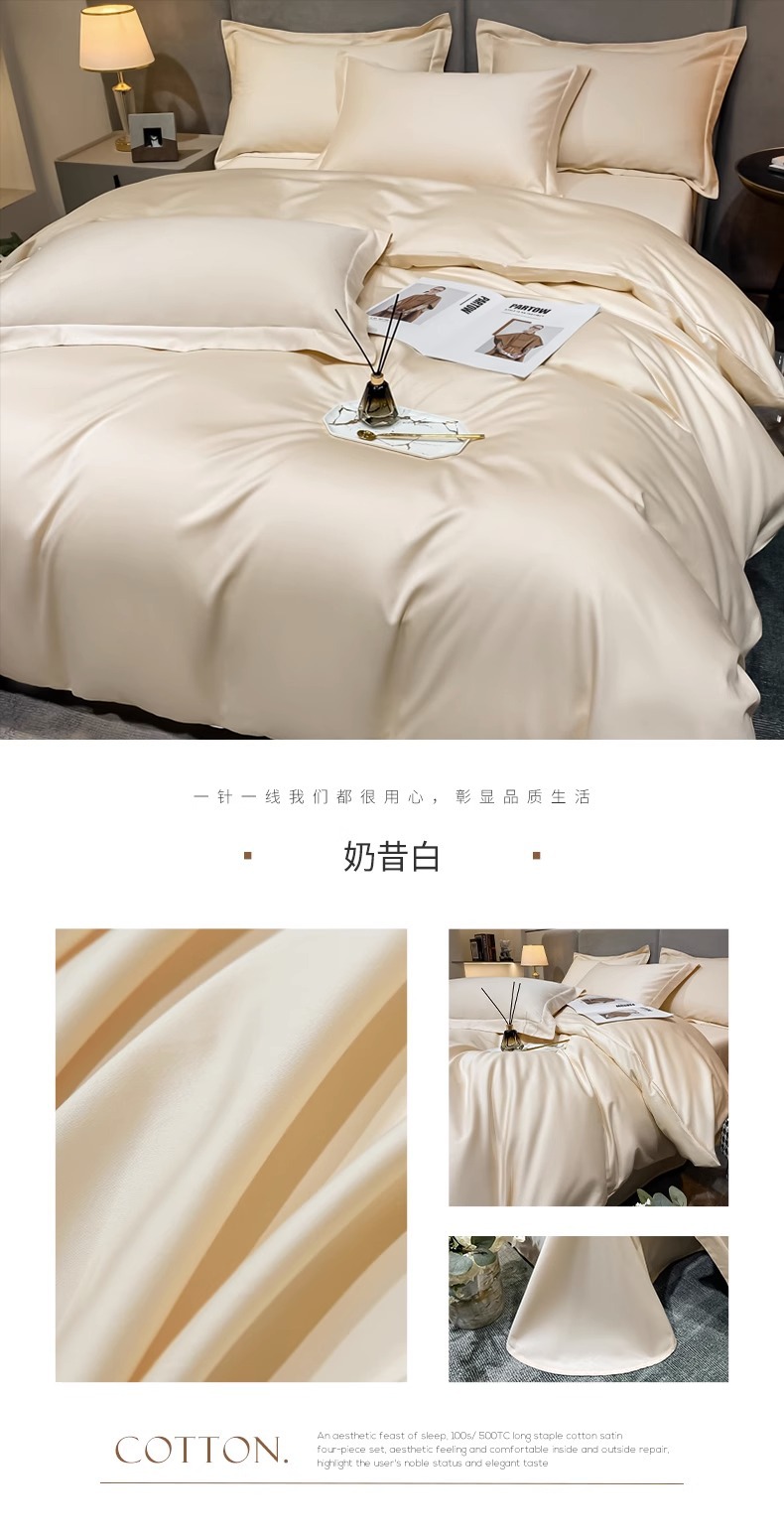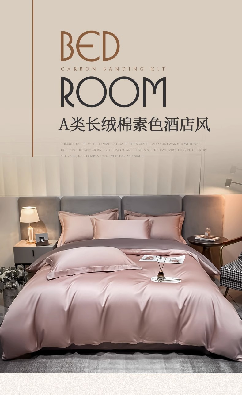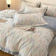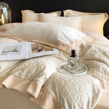 Categoría a 100 juegos de algodón de lana larga de cuatro piezas, sábanas de edredón de algodón puro, ropa de cama ligera de lujo para dormir desnuda en Nantong durante cuatro estaciones