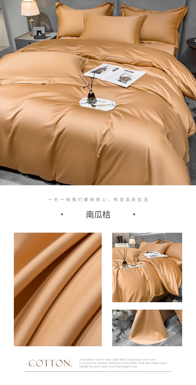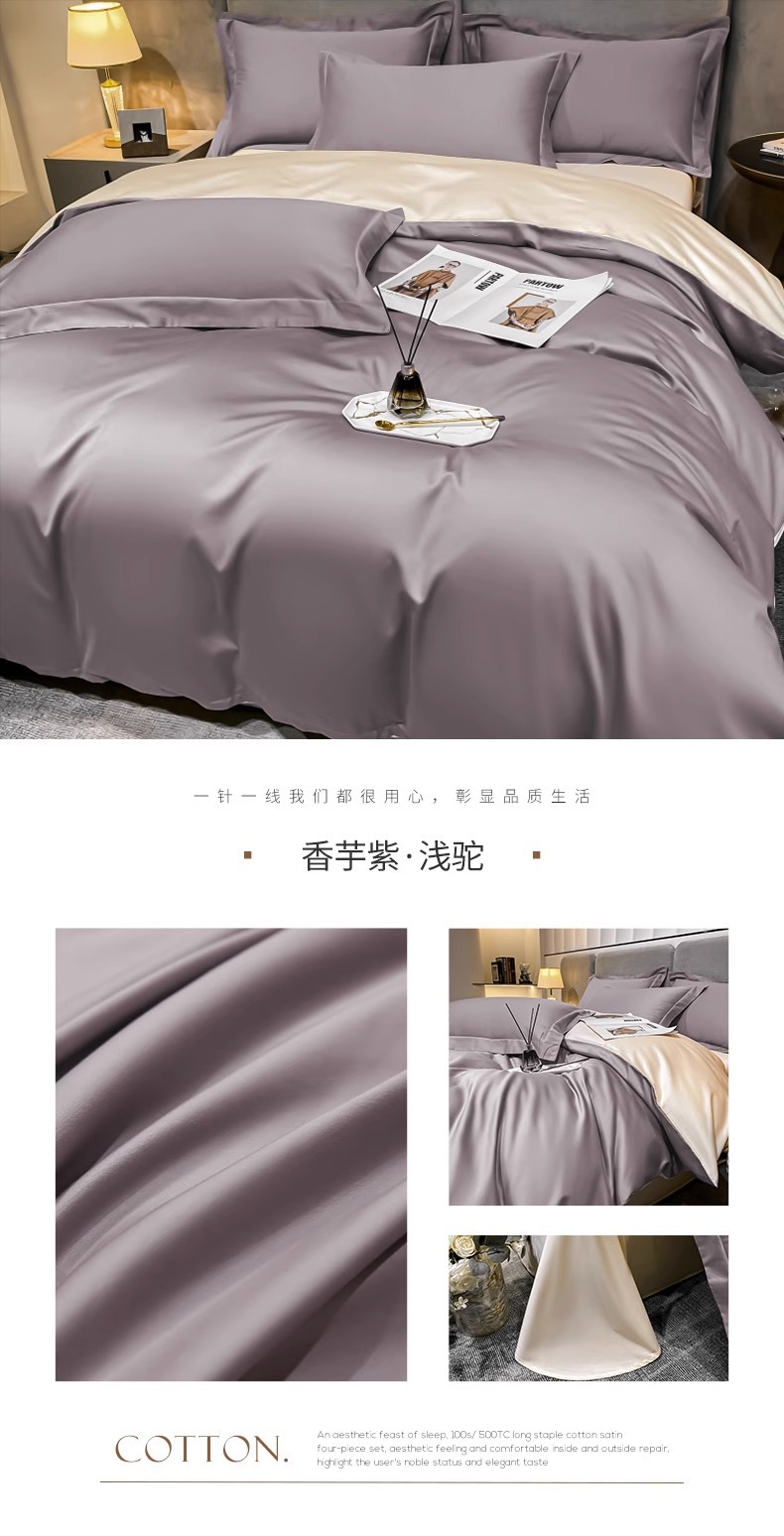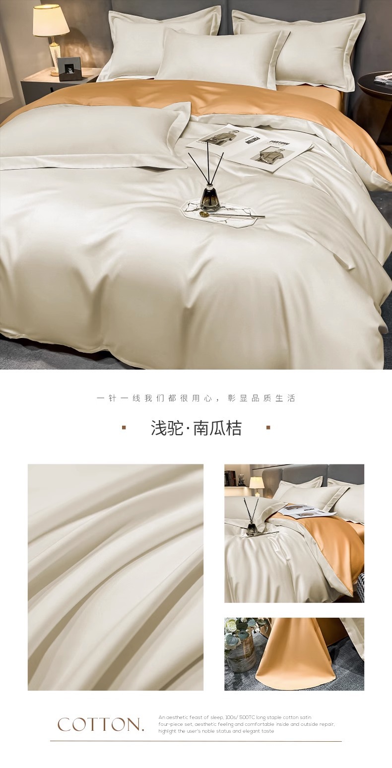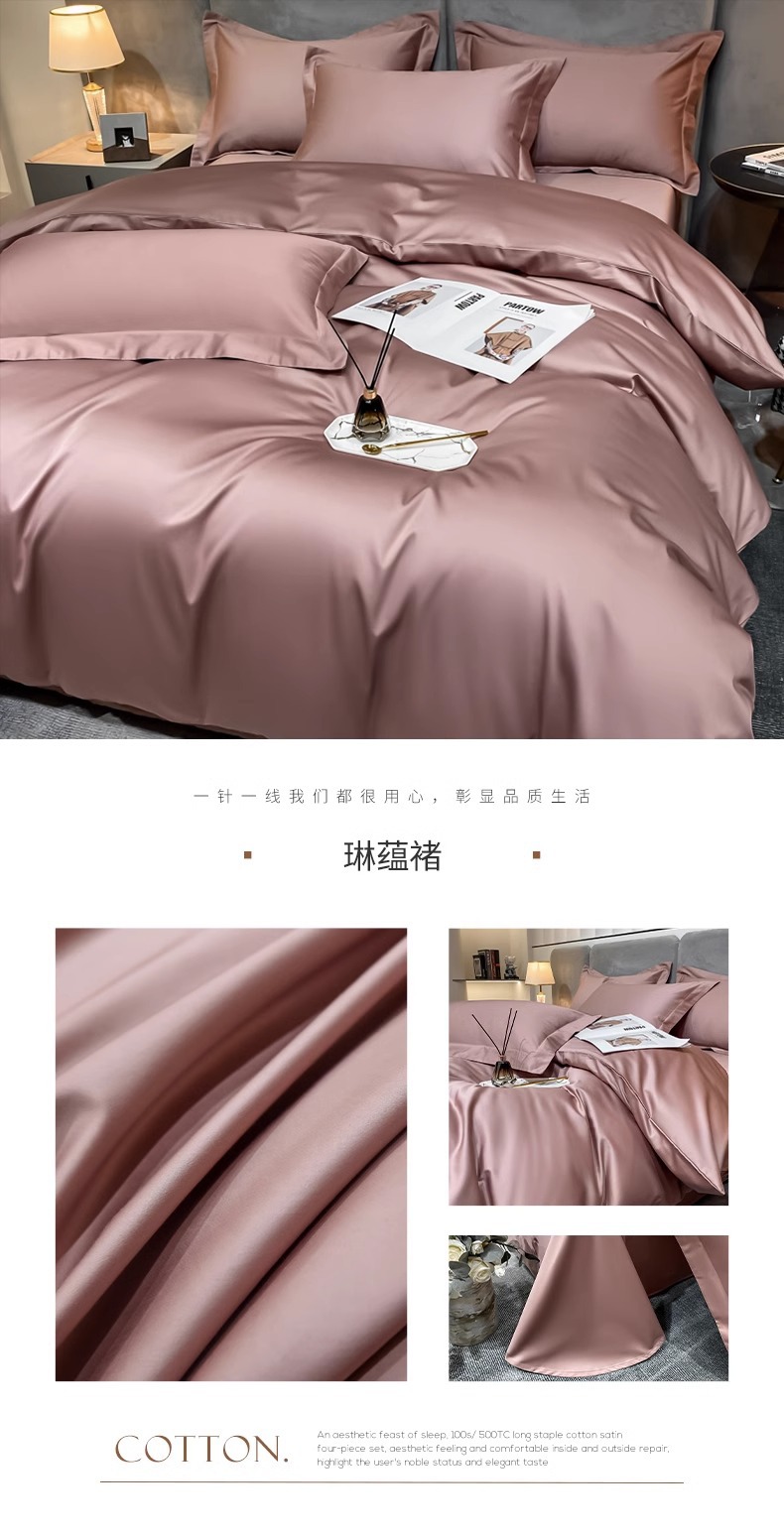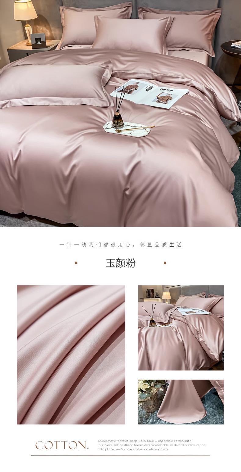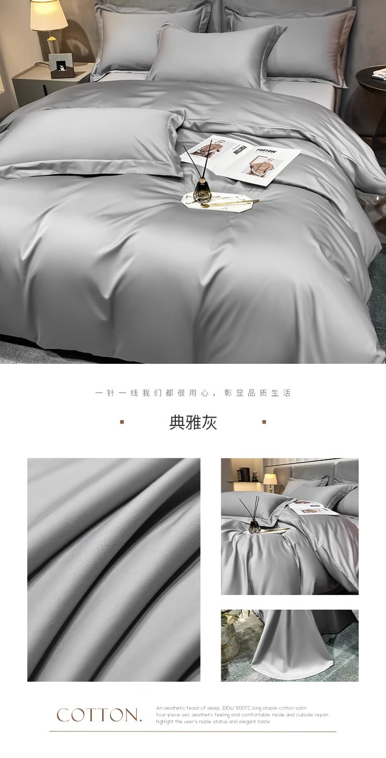 Categoría a 100 juegos de algodón de lana larga de cuatro piezas, sábanas de edredón de algodón puro, ropa de cama ligera de lujo para dormir desnuda en Nantong durante cuatro estaciones