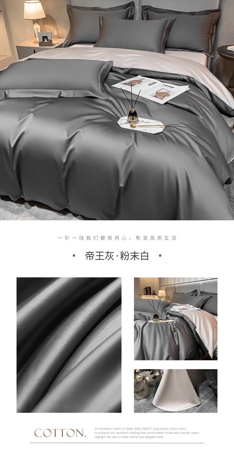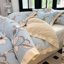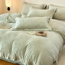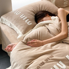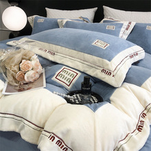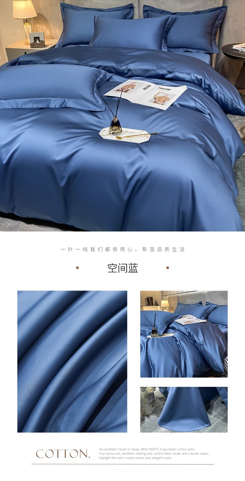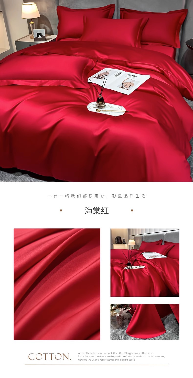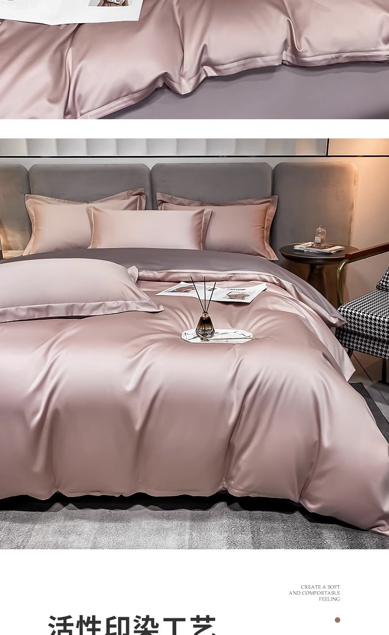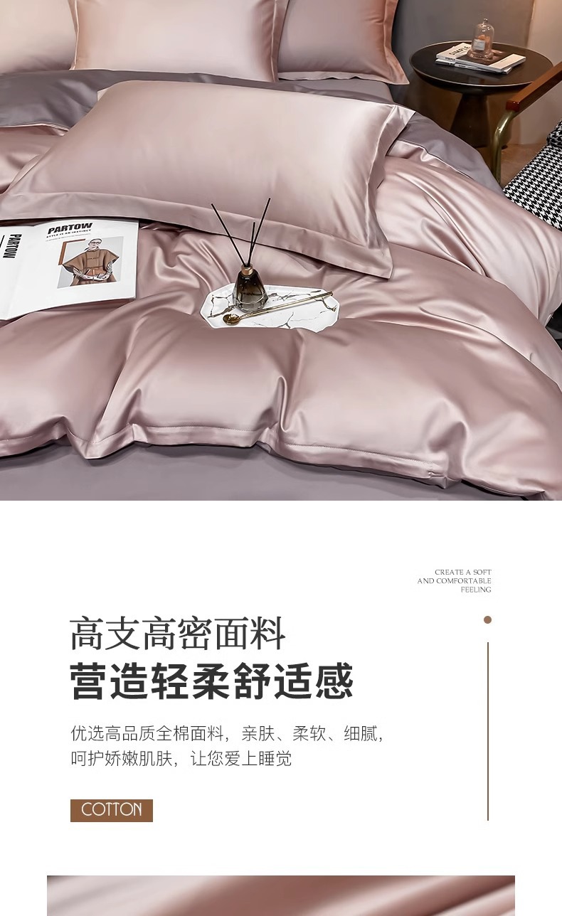 Categoría a 100 juegos de algodón de lana larga de cuatro piezas, sábanas de edredón de algodón puro, ropa de cama ligera de lujo para dormir desnuda en Nantong durante cuatro estaciones