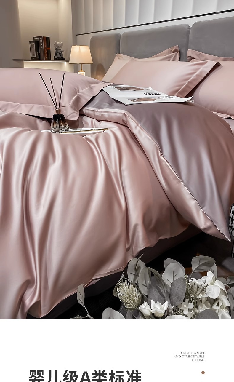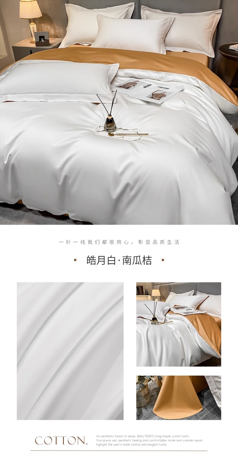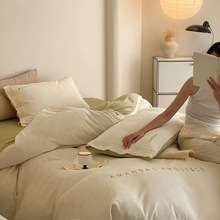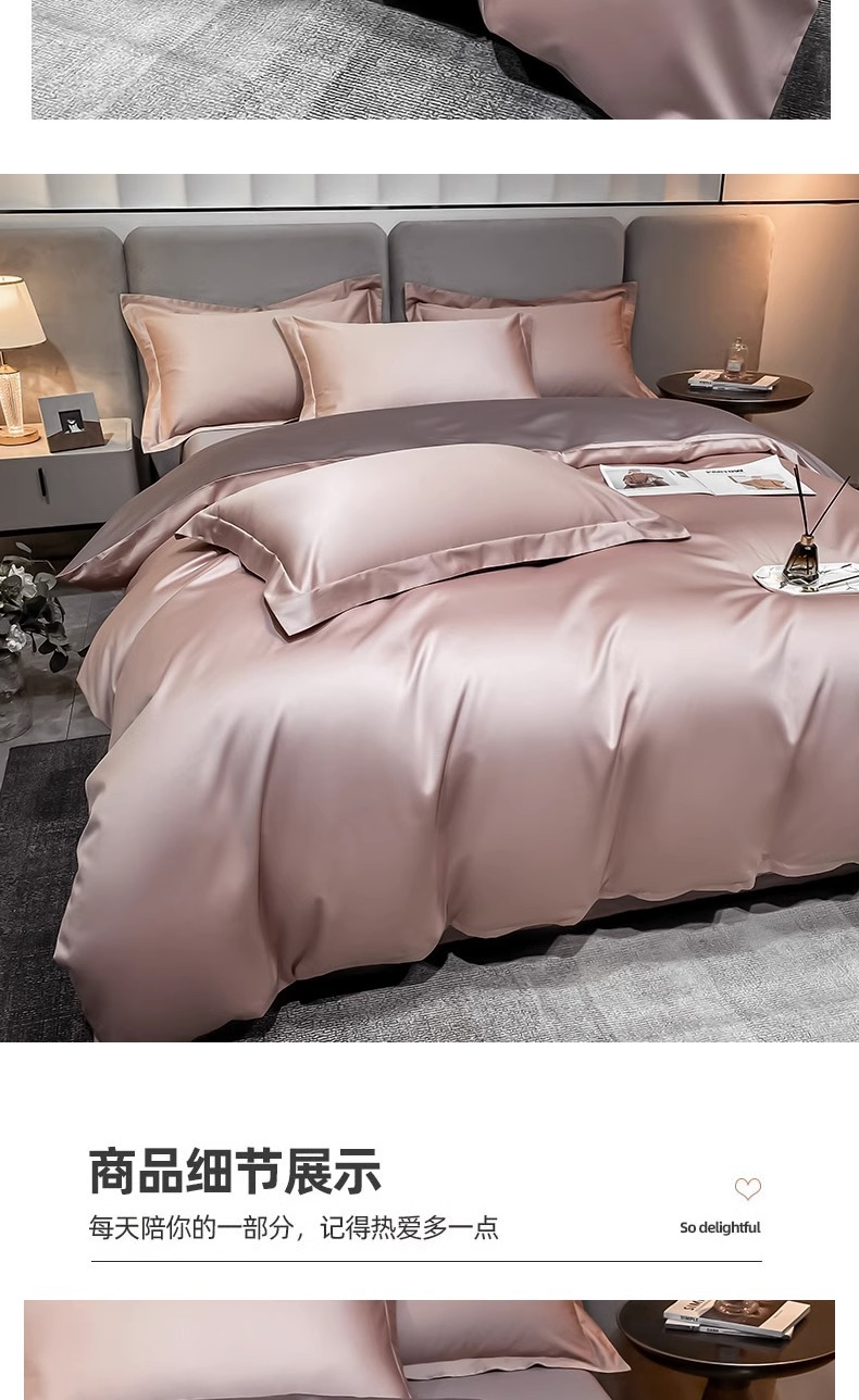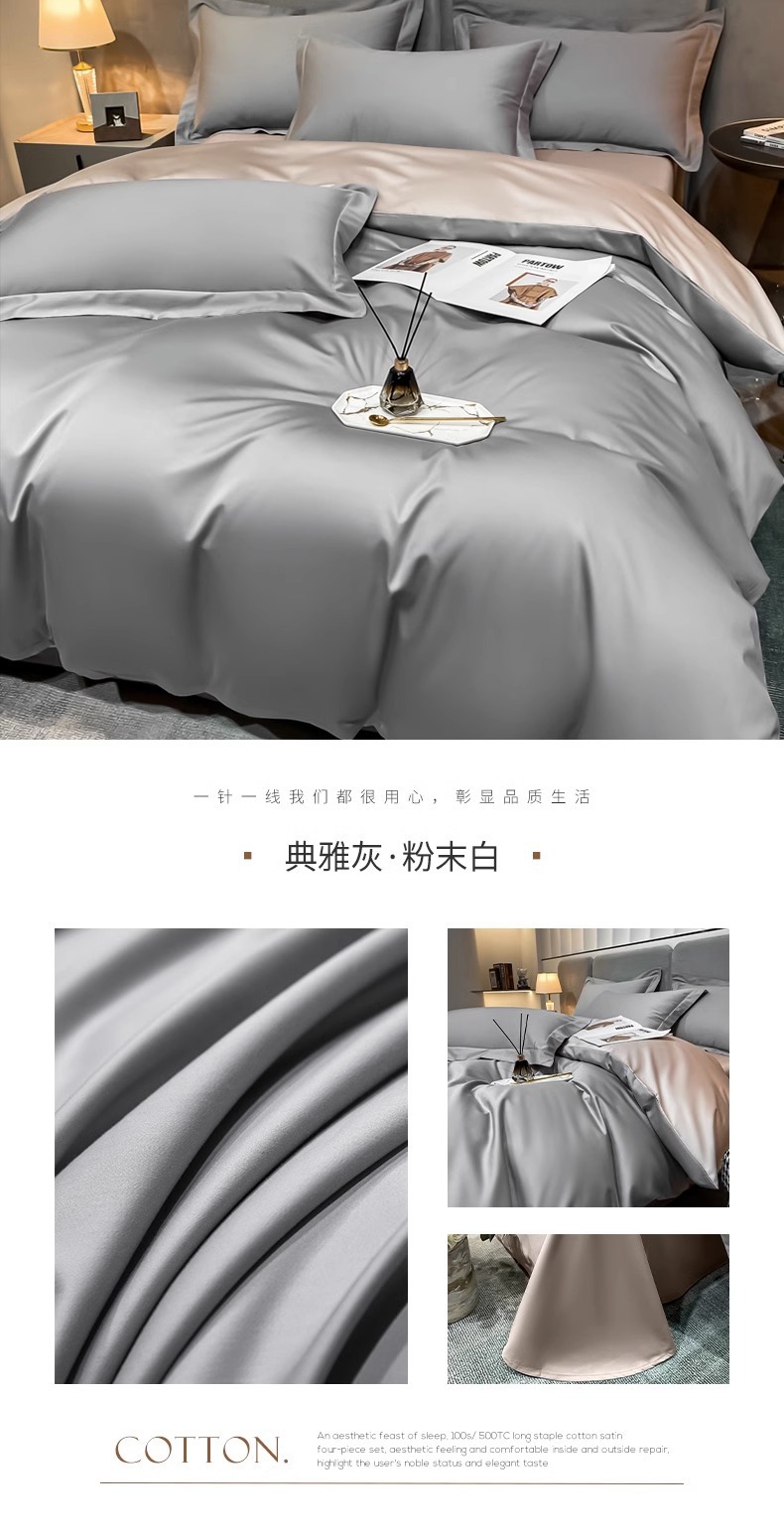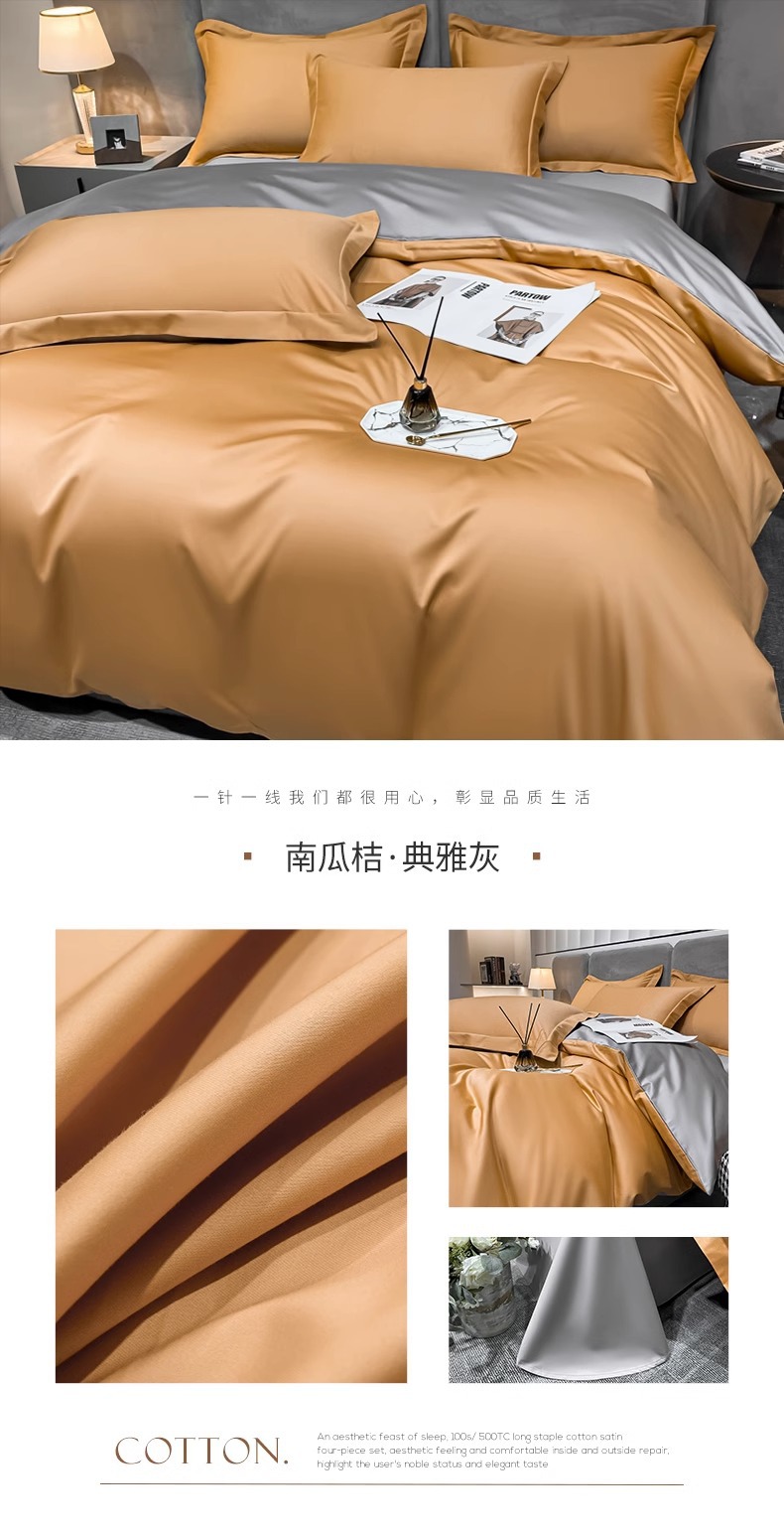 Categoría a 100 juegos de algodón de lana larga de cuatro piezas, sábanas de edredón de algodón puro, ropa de cama ligera de lujo para dormir desnuda en Nantong durante cuatro estaciones