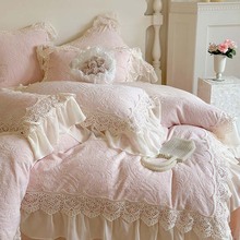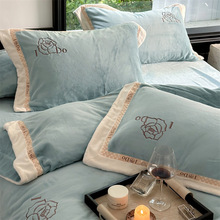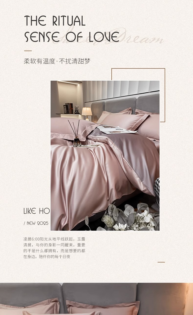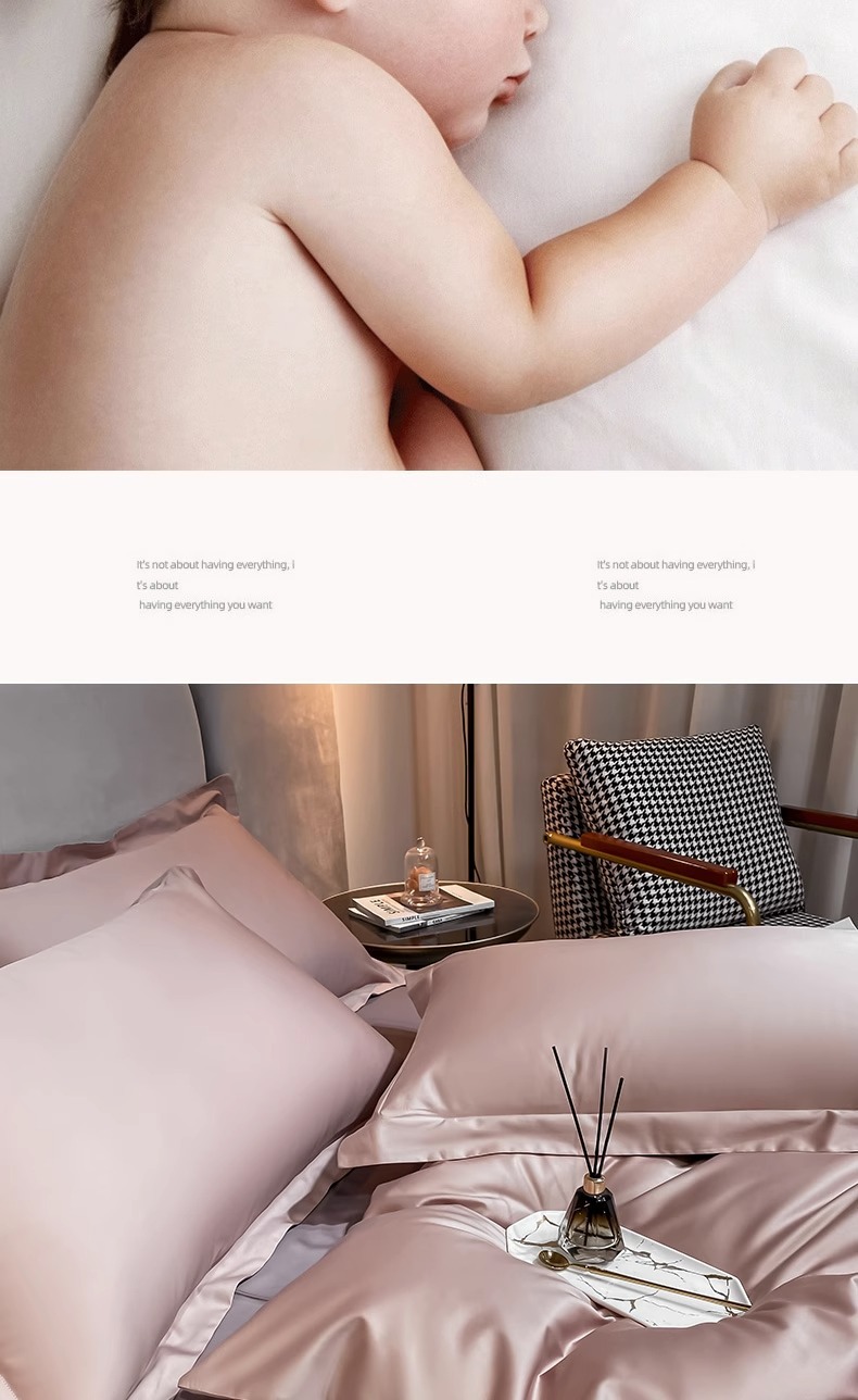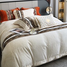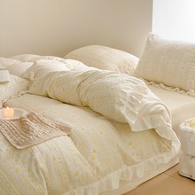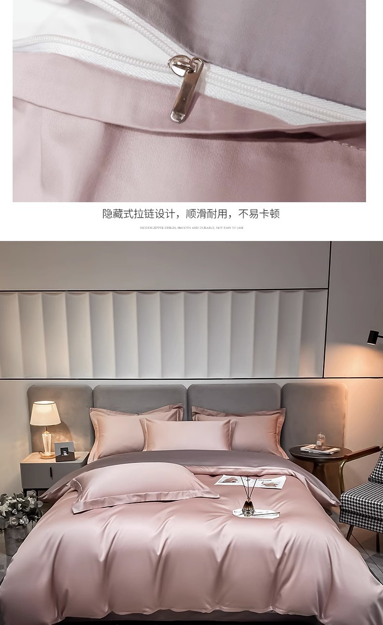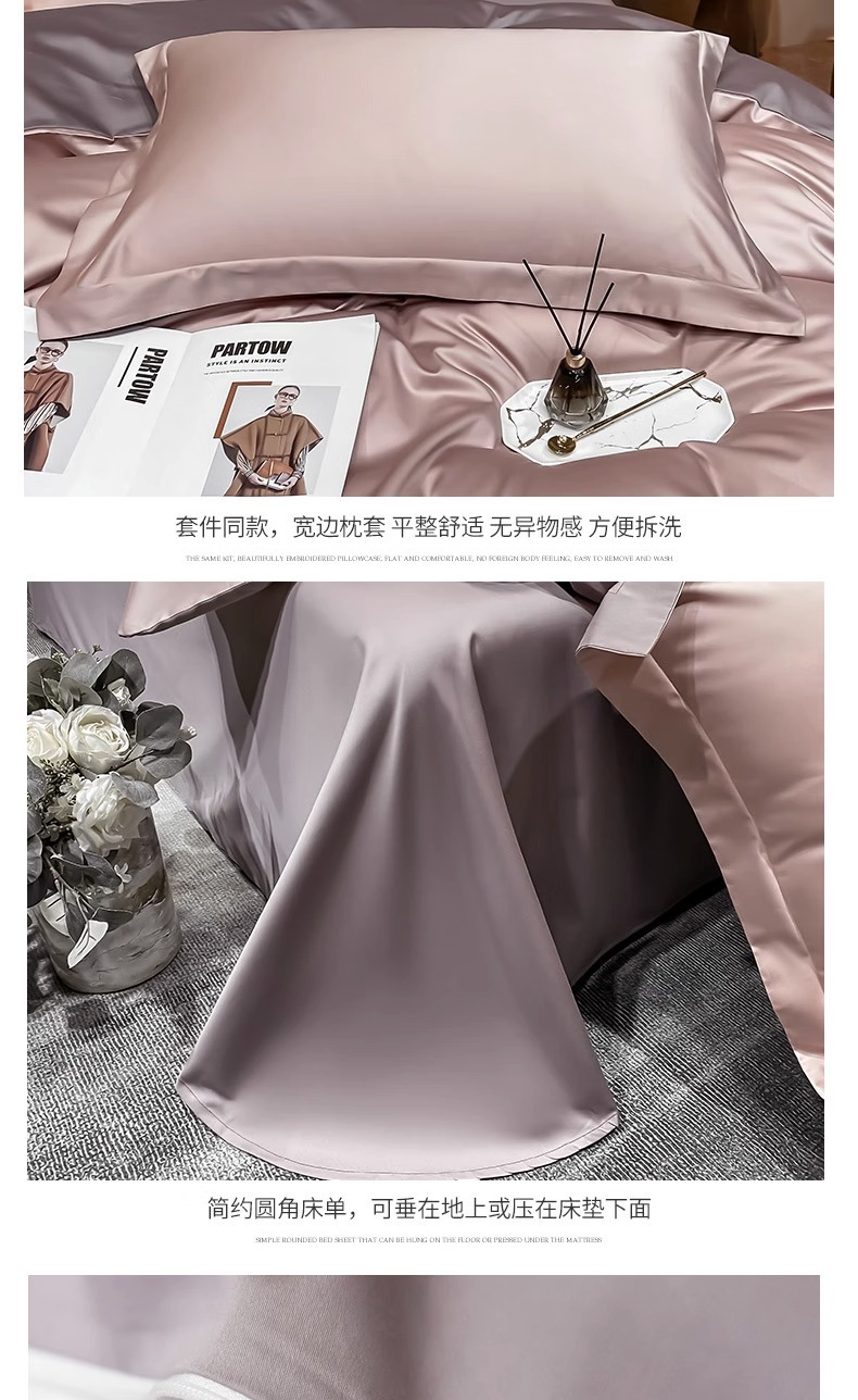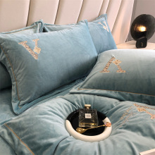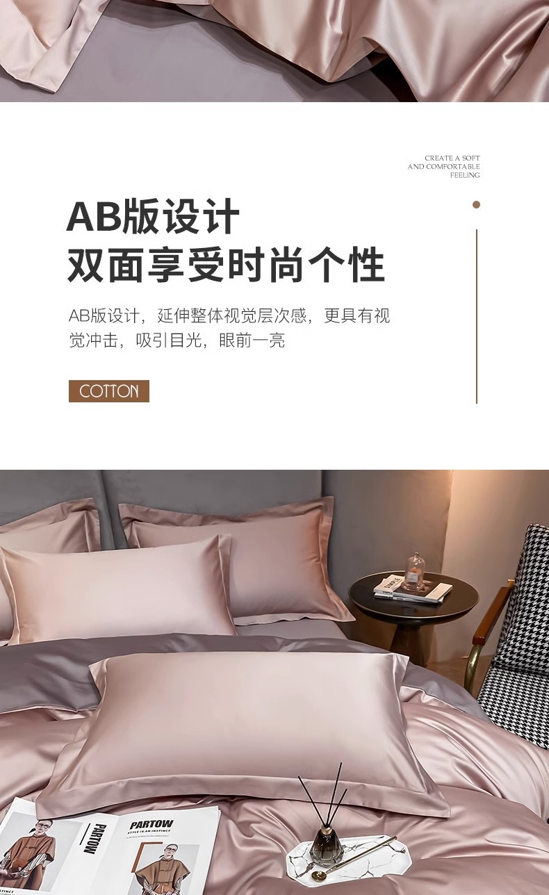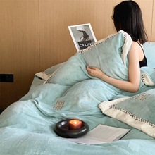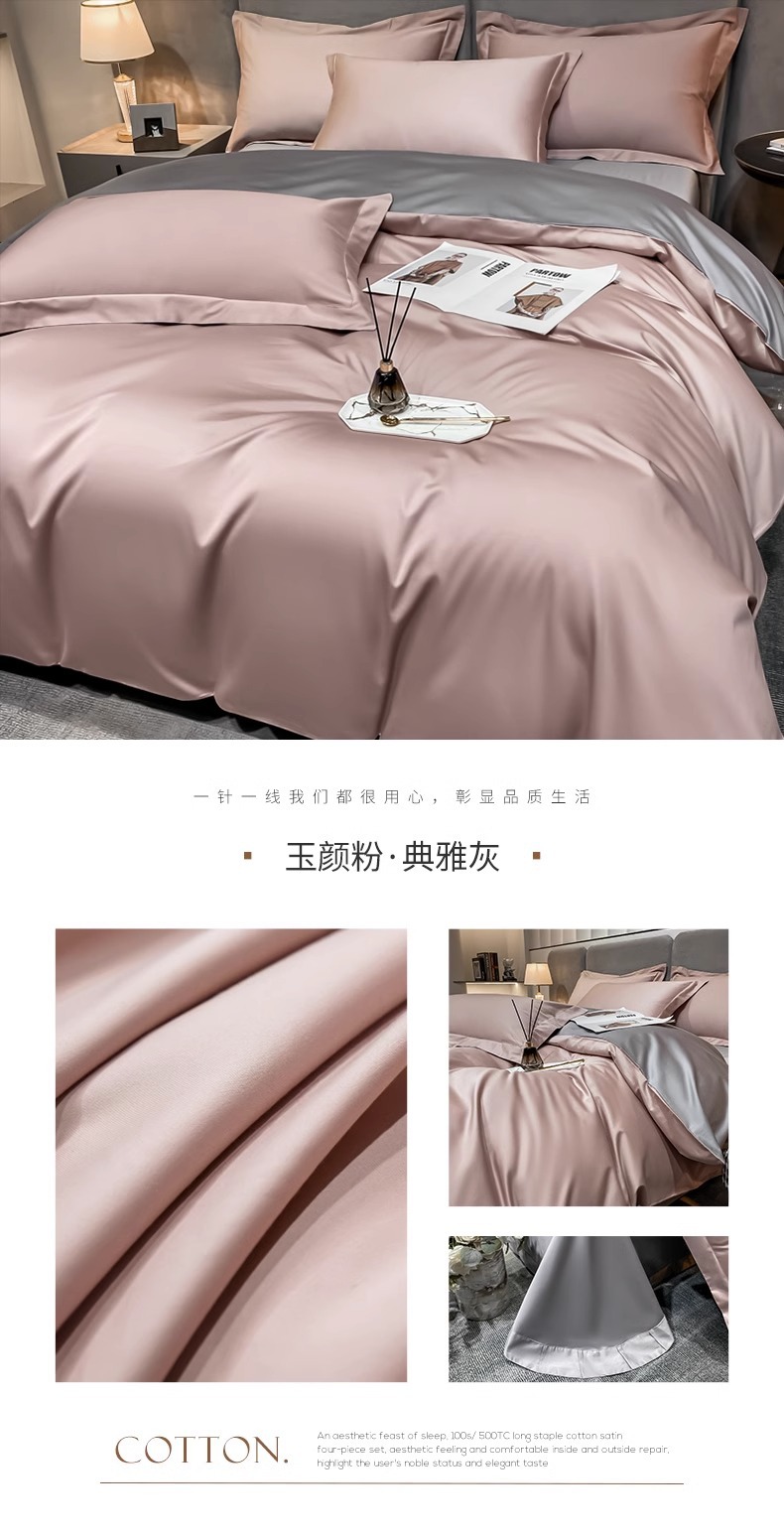 Categoría a 100 juegos de algodón de lana larga de cuatro piezas, sábanas de edredón de algodón puro, ropa de cama ligera de lujo para dormir desnuda en Nantong durante cuatro estaciones