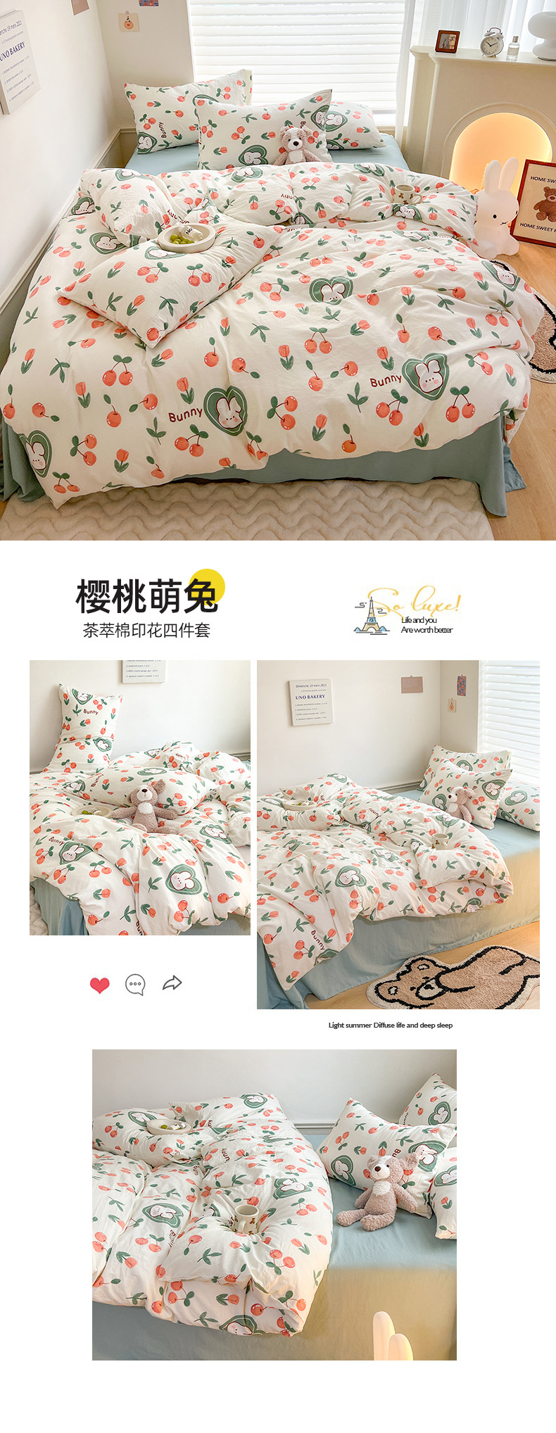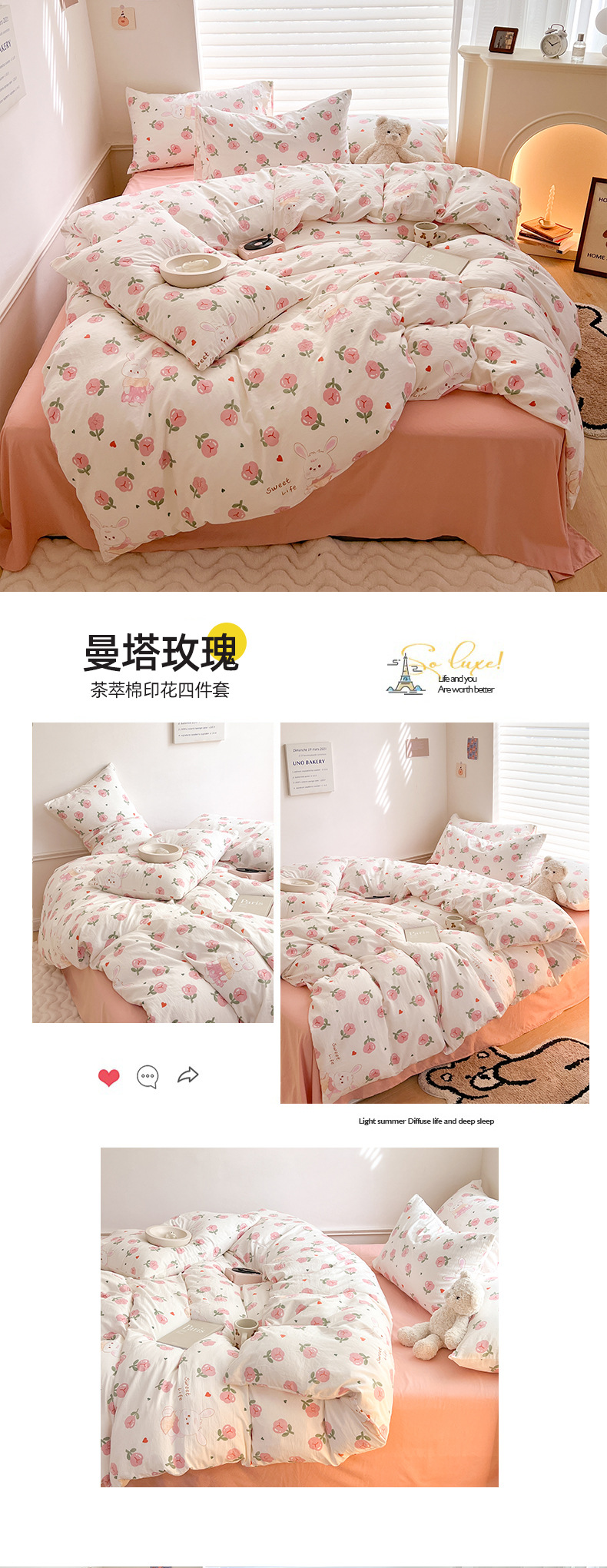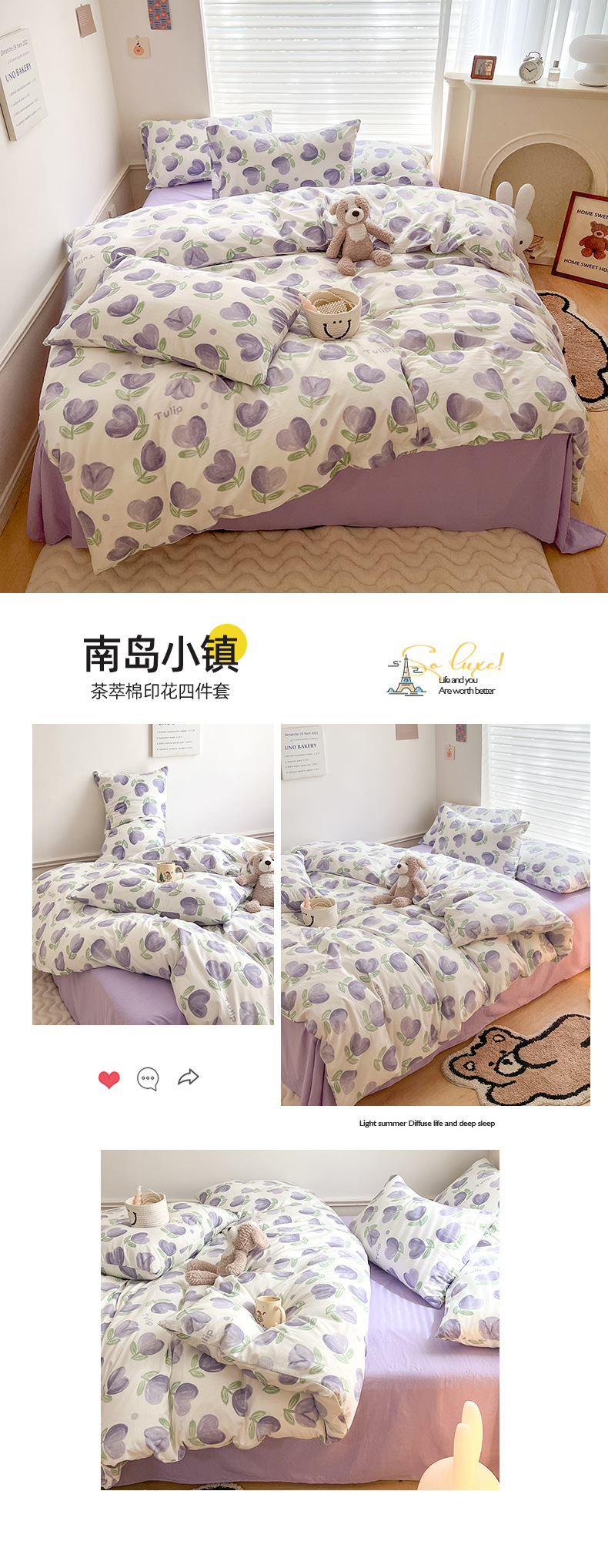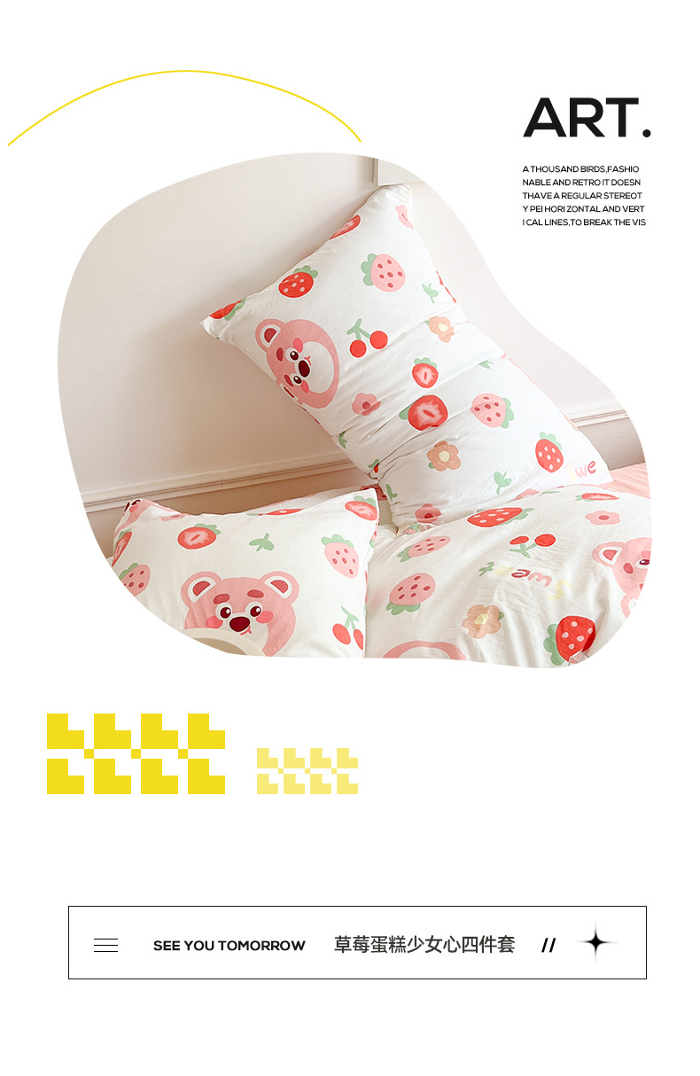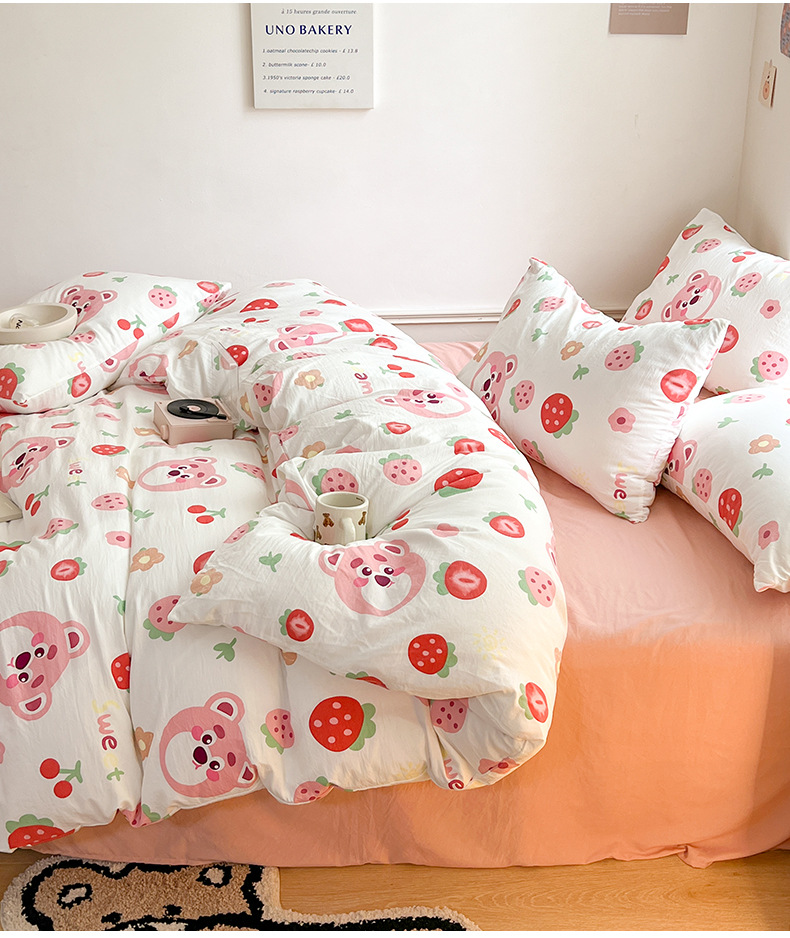 Categoría a, doble hilo, cuatro juegos de sábanas lindas de dibujos animados, edredones, hojas de bambú, dormitorios de algodón y lino, tres juegos de ropa de cama