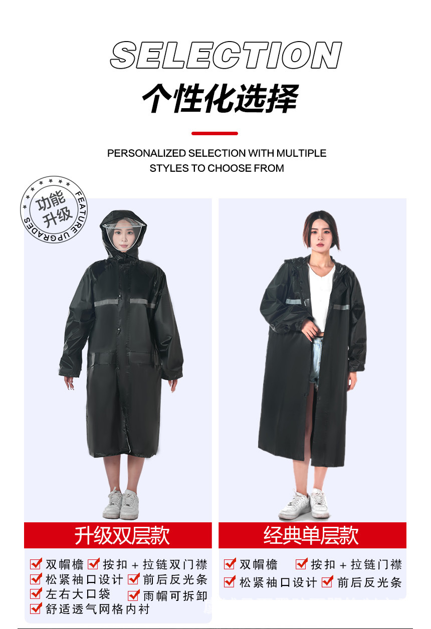Impermeable de tela de Oxford engrosado, impermeable reflectante de senderismo al aire libre, impermeable largo, impermeable al por mayor para adultos, hombres y mujeres Shangqiu