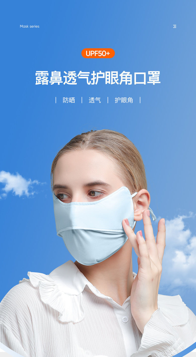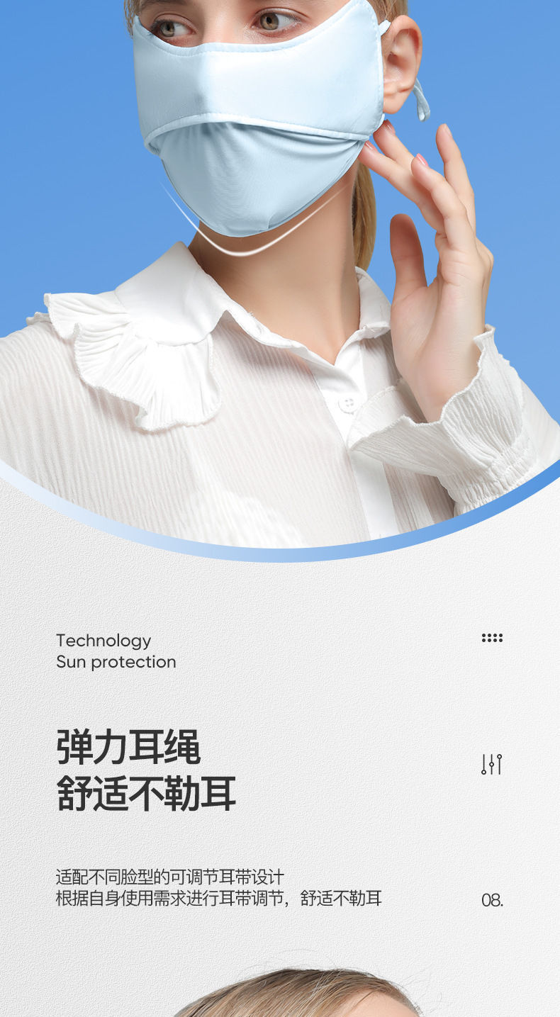 Máscara ultravioleta femenina de alto valor facial, protección solar, modelo delgado, protección facial, esquinas de los ojos, máscara de verano, oreja colgante, alambre de hielo transpirable