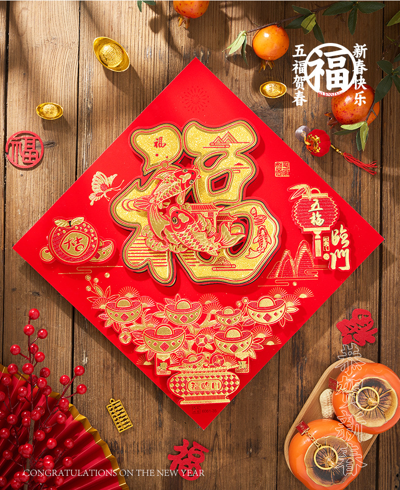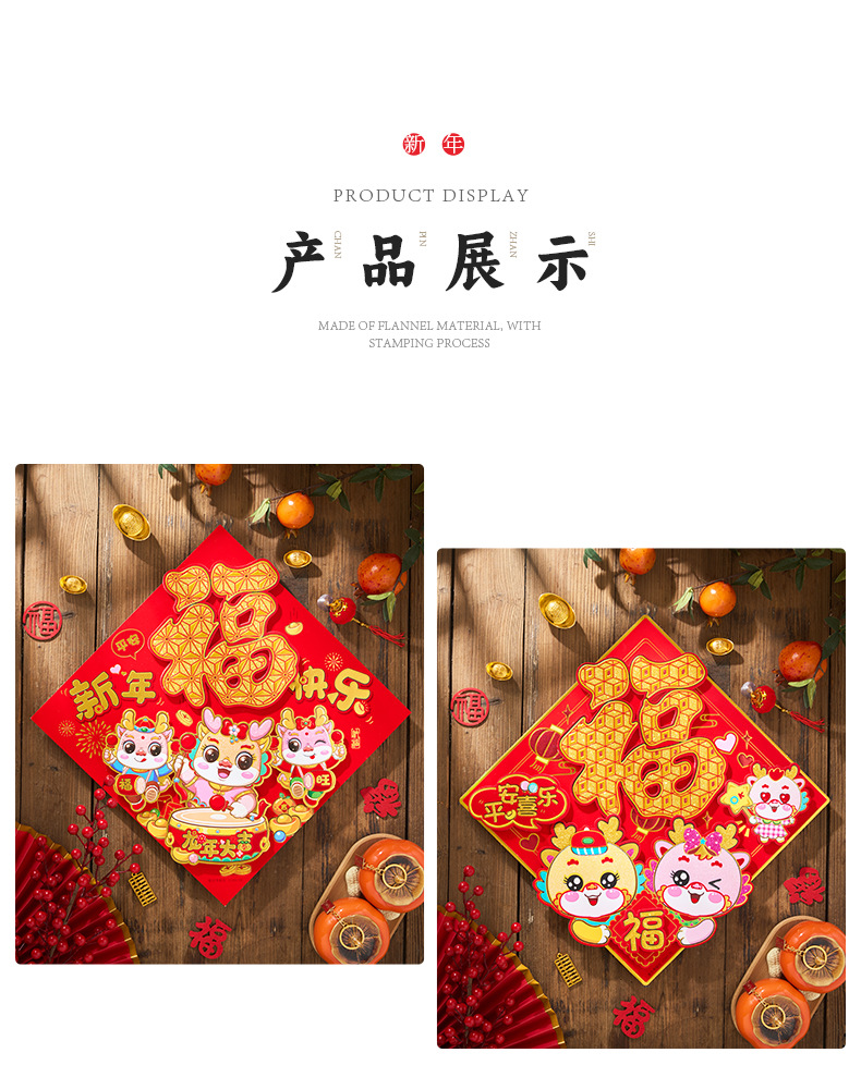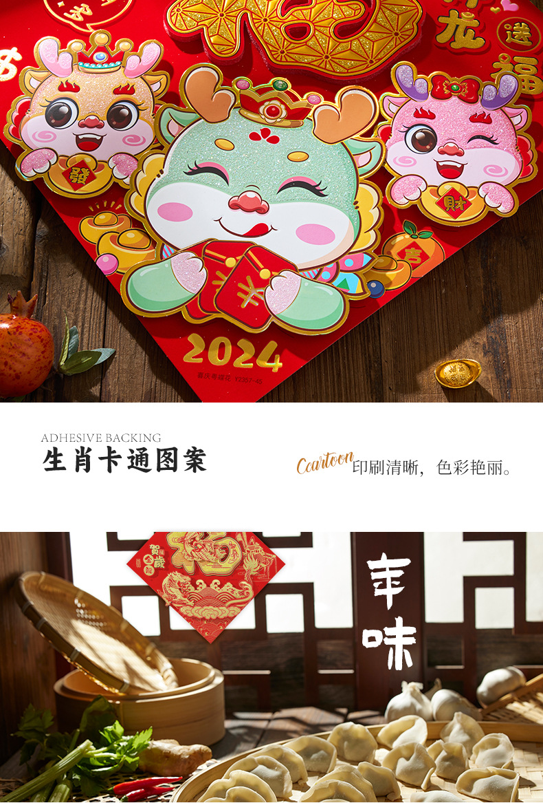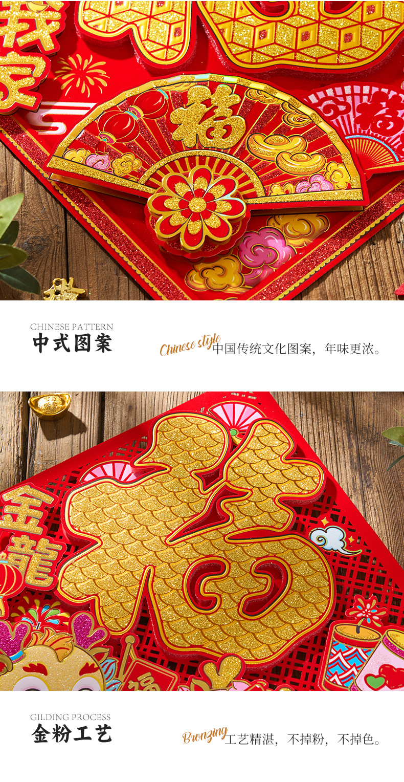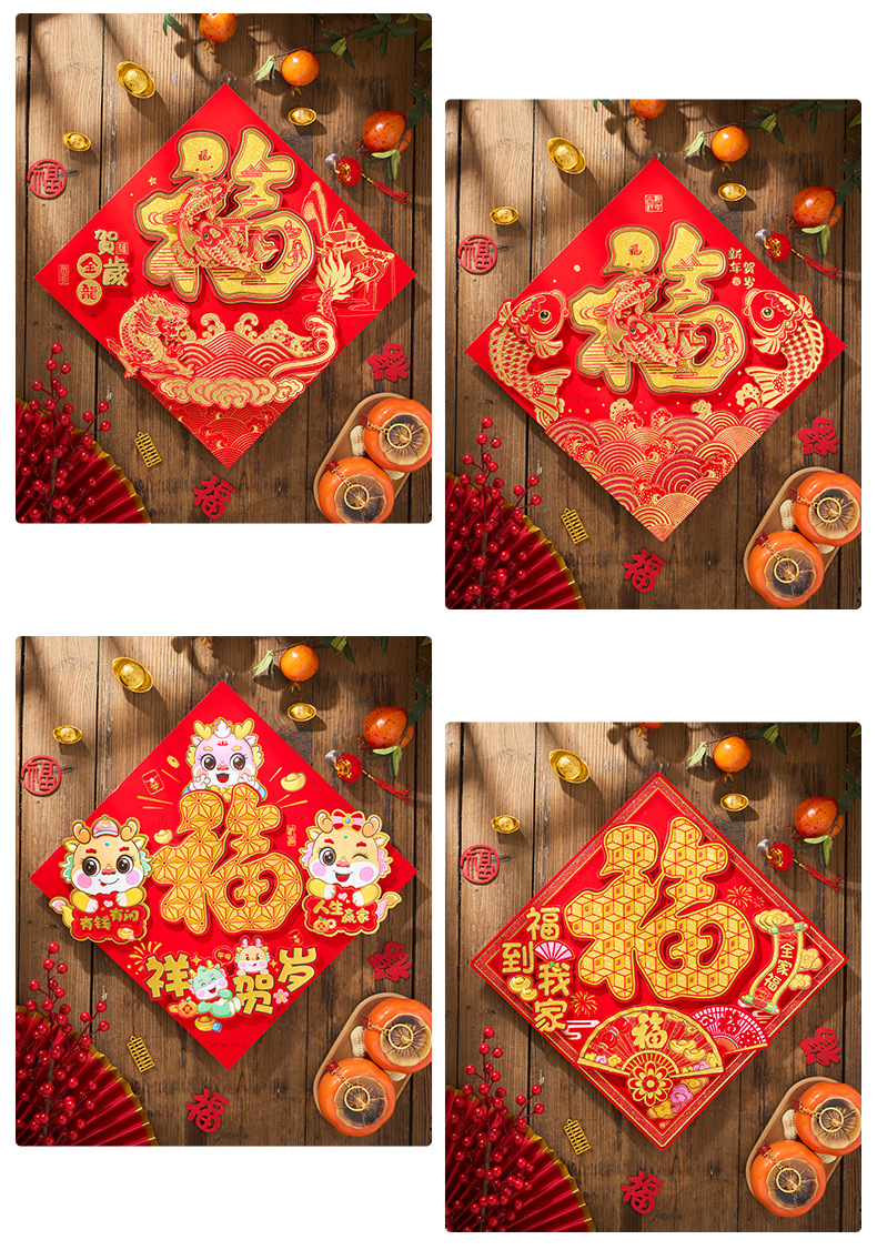 Pegatinas de puertas de Fuzi 2024 nuevas pegatinas decorativas de puertas del Festival de primavera del año nuevo del dragón pegatinas tridimensionales de corte de papel de año nuevo pegatinas de pared de año nuevo