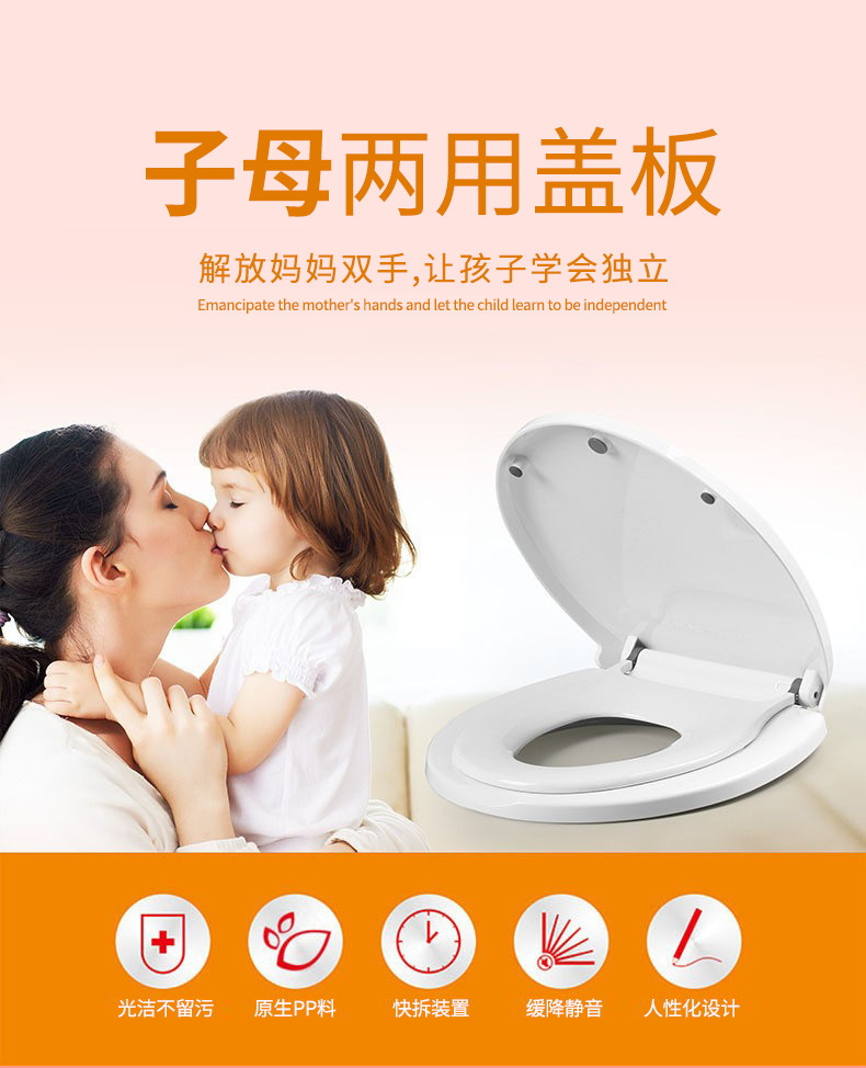 La tapa del inodoro universal de la madre y el inodoro engrosa la tapa del inodoro y la tapa del inodoro de doble uso se reduce lentamente.