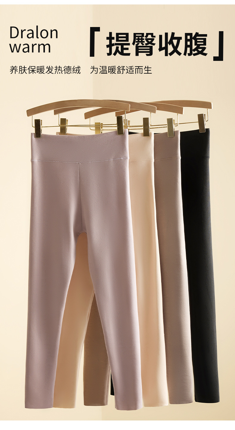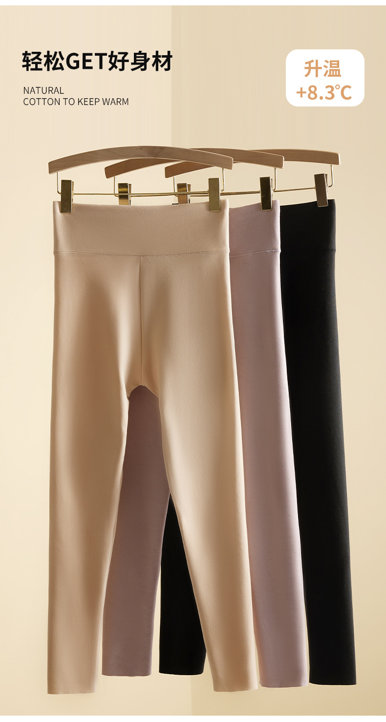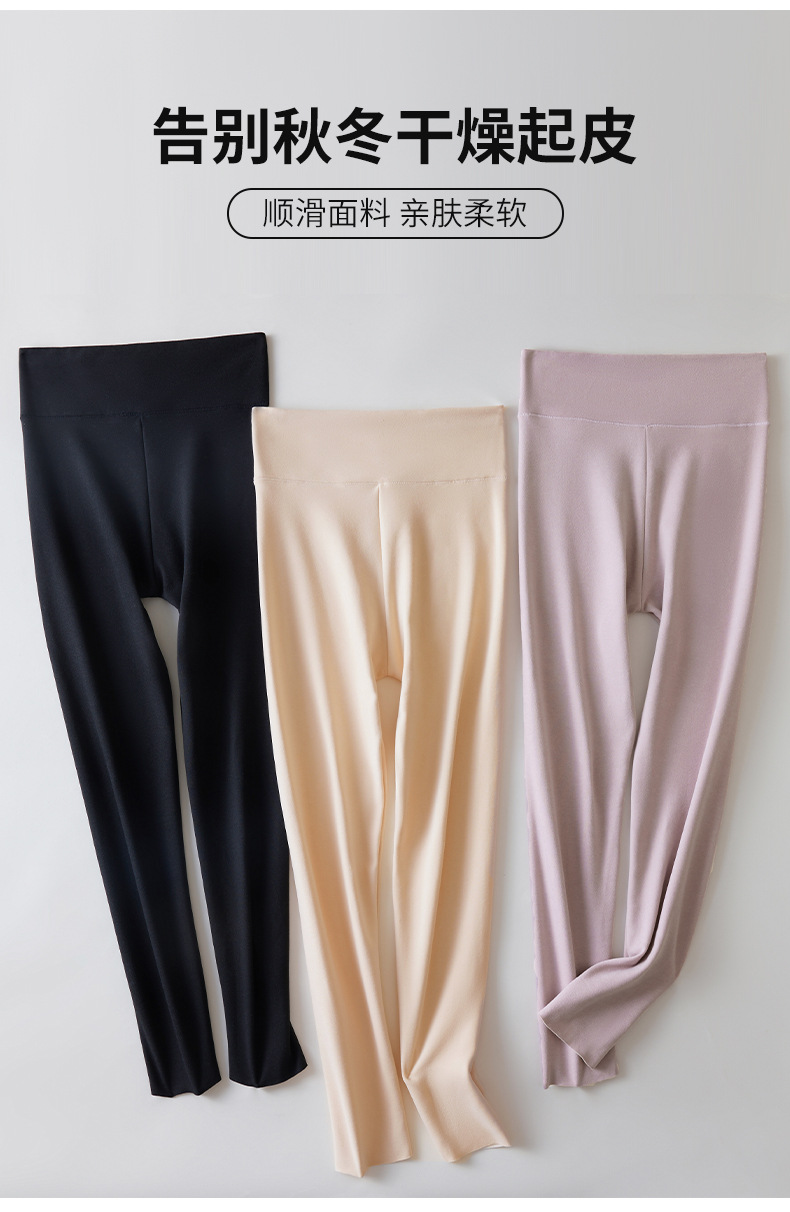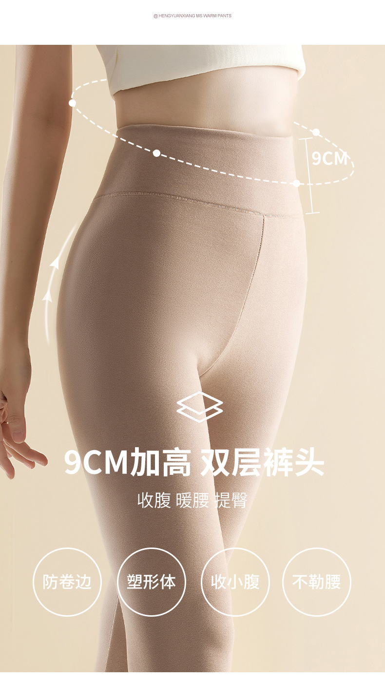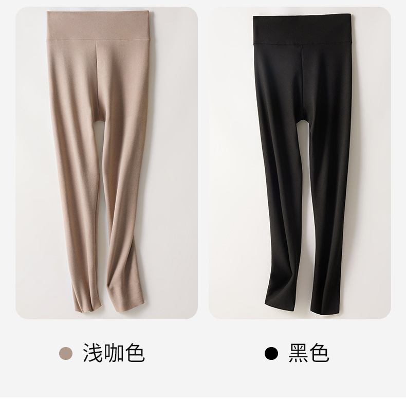 Pantalones de base de calentamiento sin marcas de cintura alta, pantalones de base de terciopelo de doble cara, calor y adelgazamiento, cintura y caderas, pantalones de otoño, pantalones de otoño, otoño e invierno.