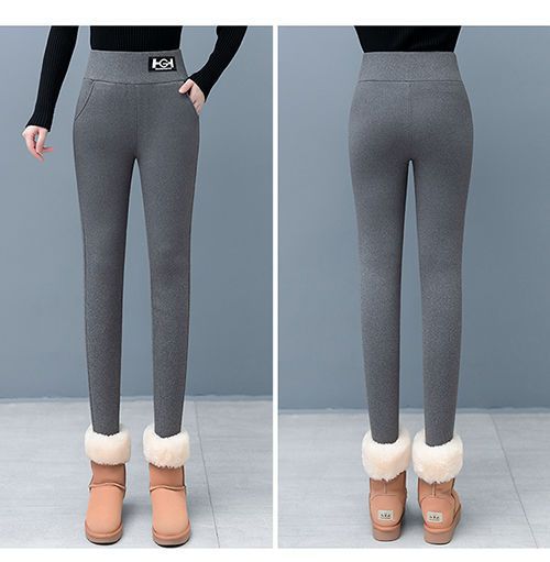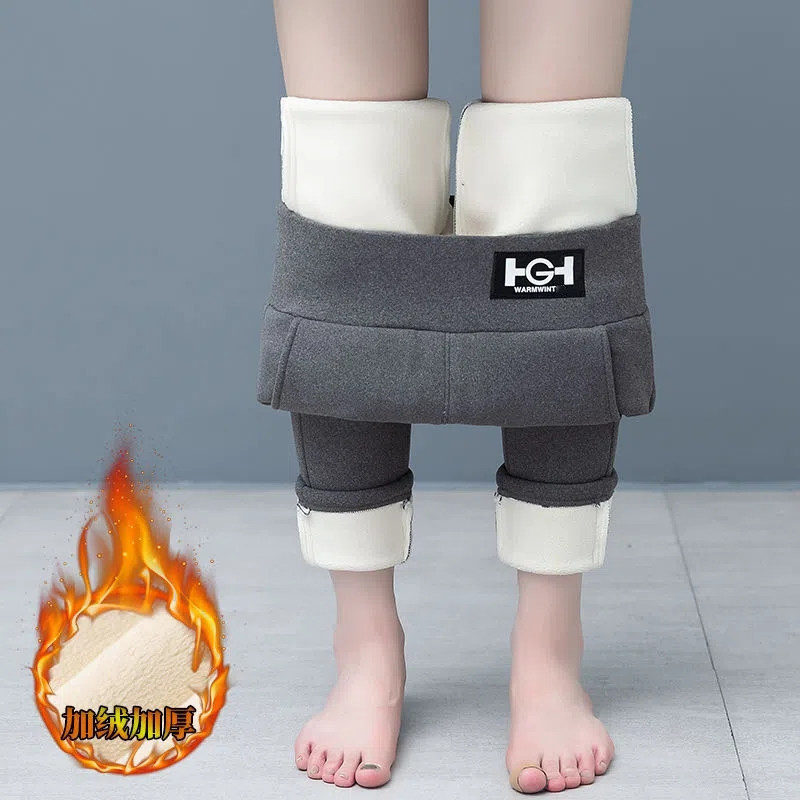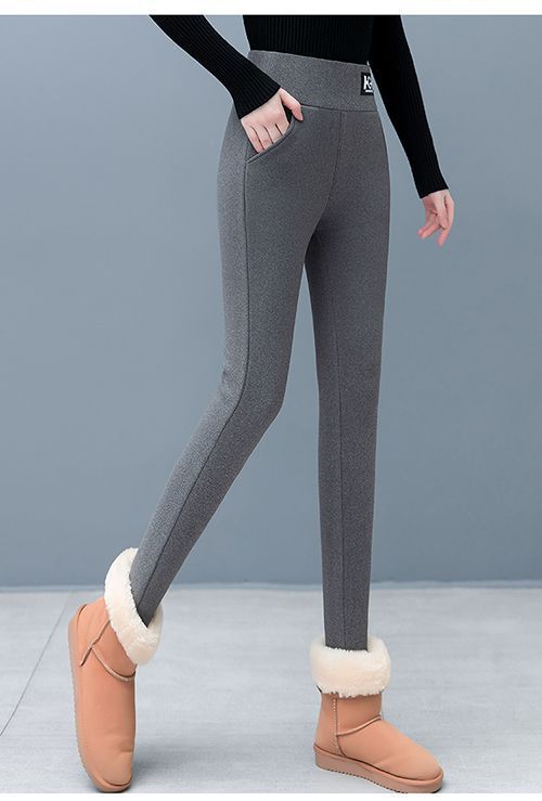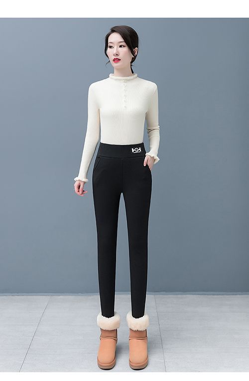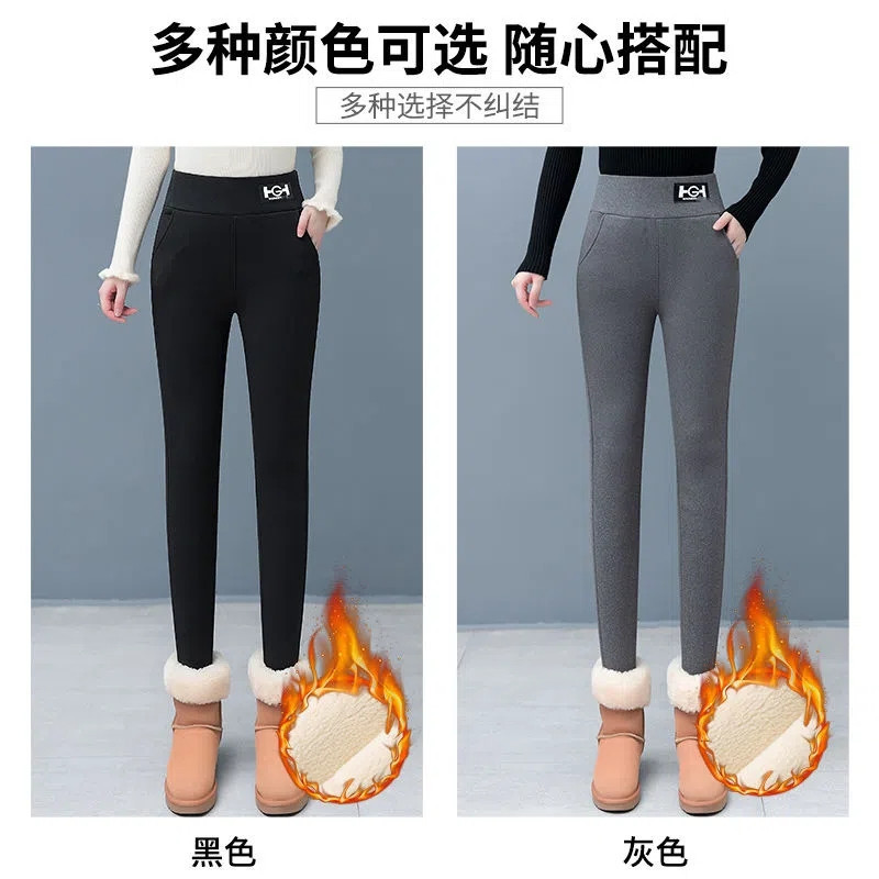 El modelo de trémolo 500g de cordero Hg de gran espesor bolsillo pantalones de fondo las mujeres usan pantalones de lápiz delgados en otoño e invierno más terciopelo grueso.