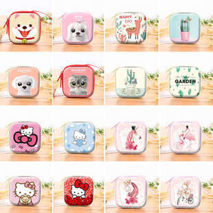 Versión coreana retro de algodón y cáñamo, pequeño y fresco bolso de monedas, bolso de monedas, bolso de llaves de dibujos animados de lona simple y de moda, bolsa de almacenamiento