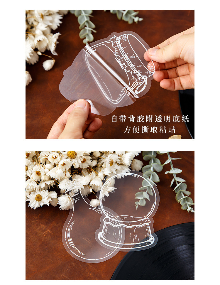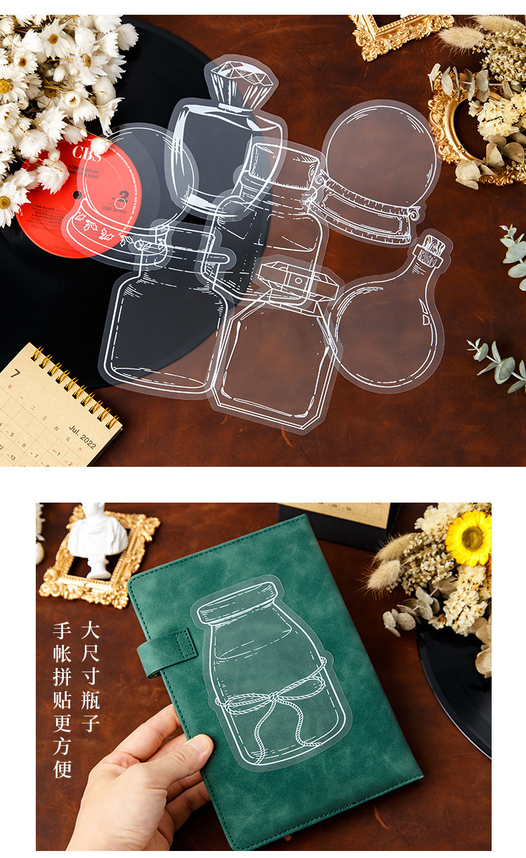 Pegatinas transparentes DIY hechas a mano en botellas de primavera pegatinas decorativas de flores secas en botellas de Pet pegatinas de marcadores transparentes