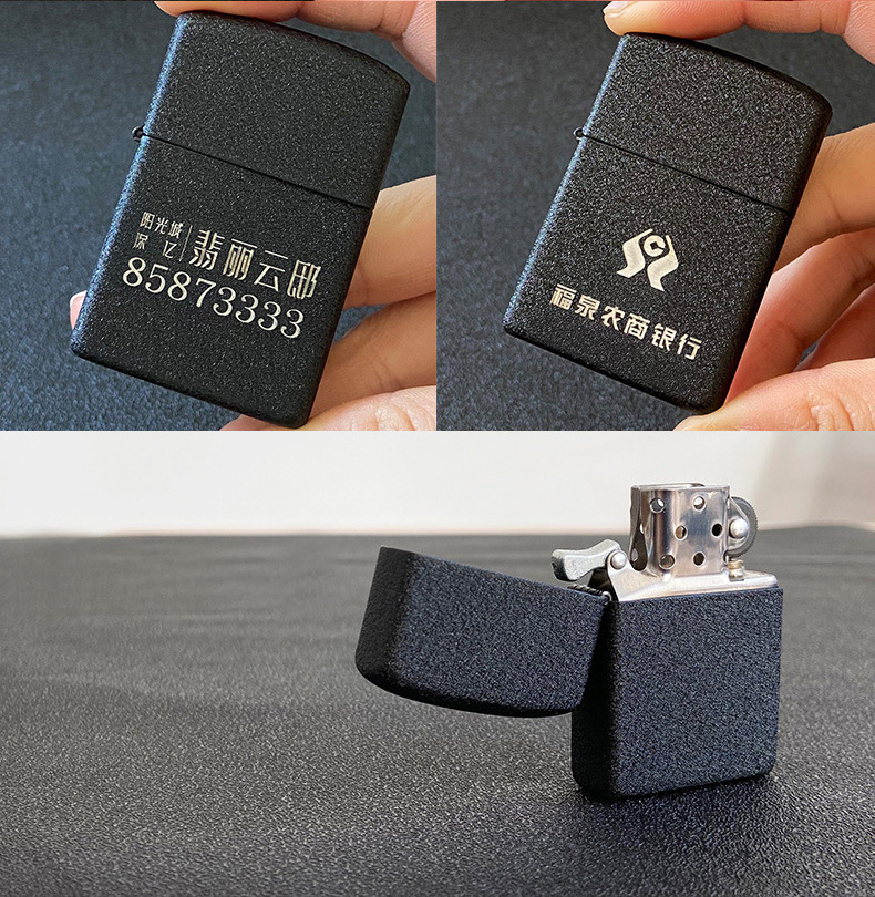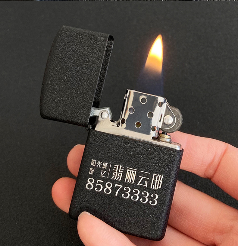 Los fabricantes venden directamente encendedores de queroseno mate negro de alta calidad, máquinas de algodón de luz ligera, publicidad profesional al por mayor de logotipos de grabado