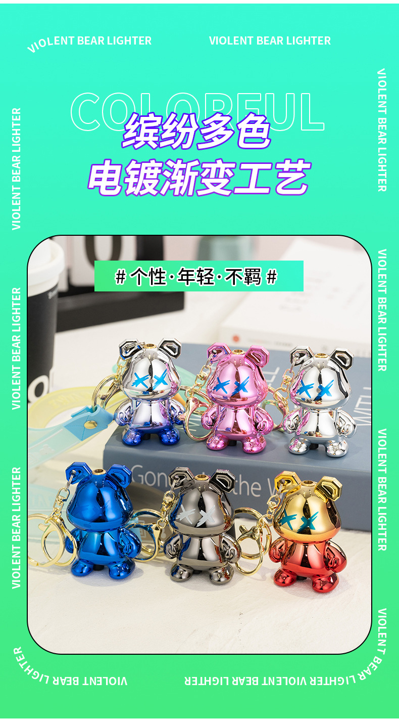 Chapado creativo XX ojos llavero de automóvil oso encendedor inflable colgante chaokuins regalos de pareja al por mayor