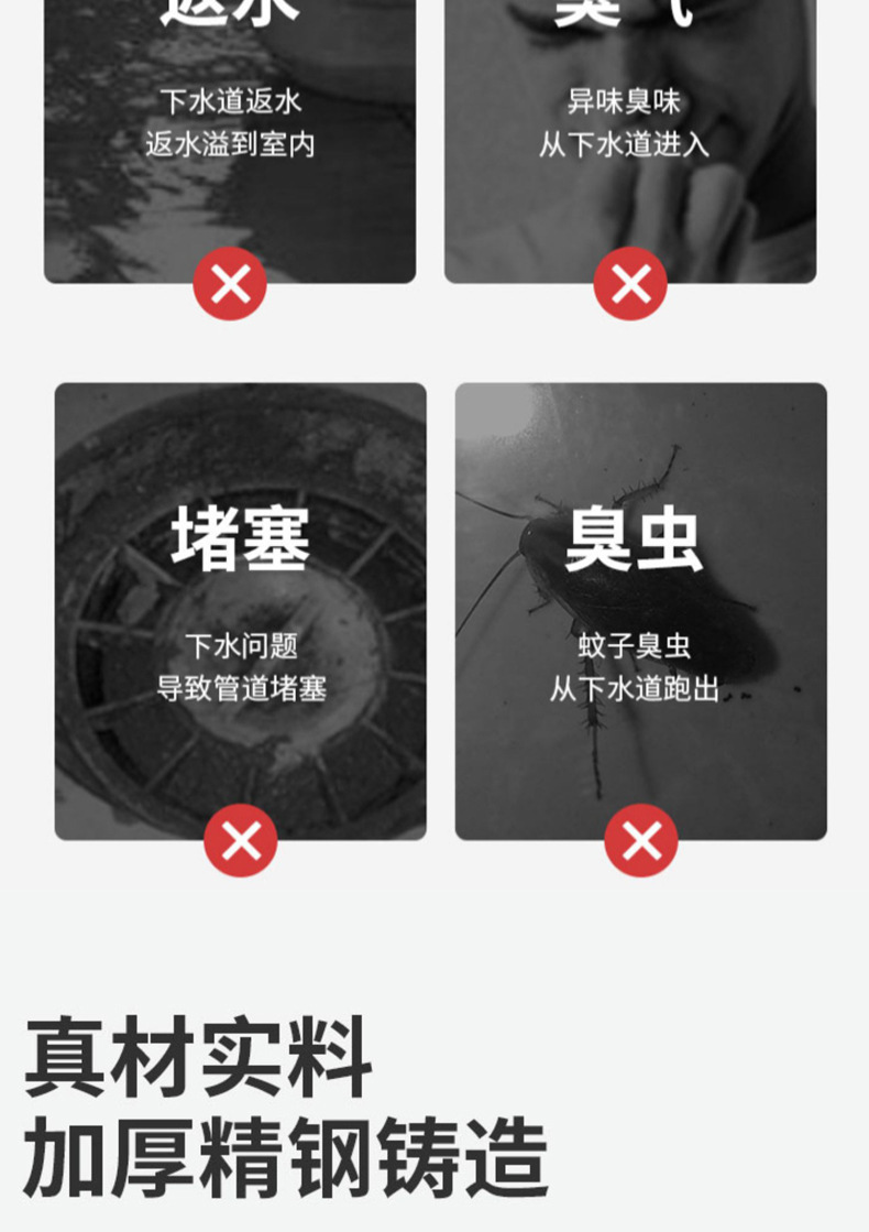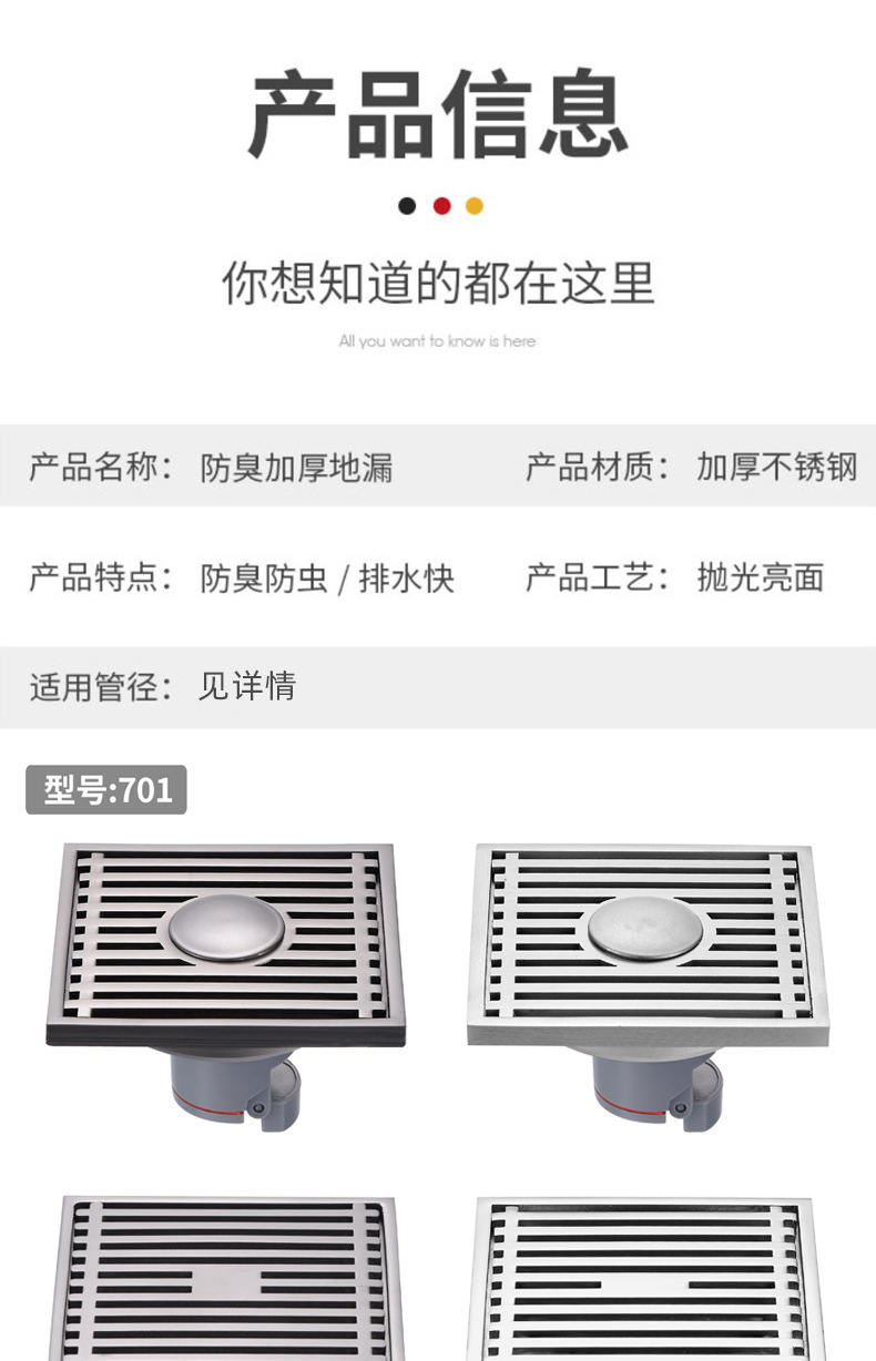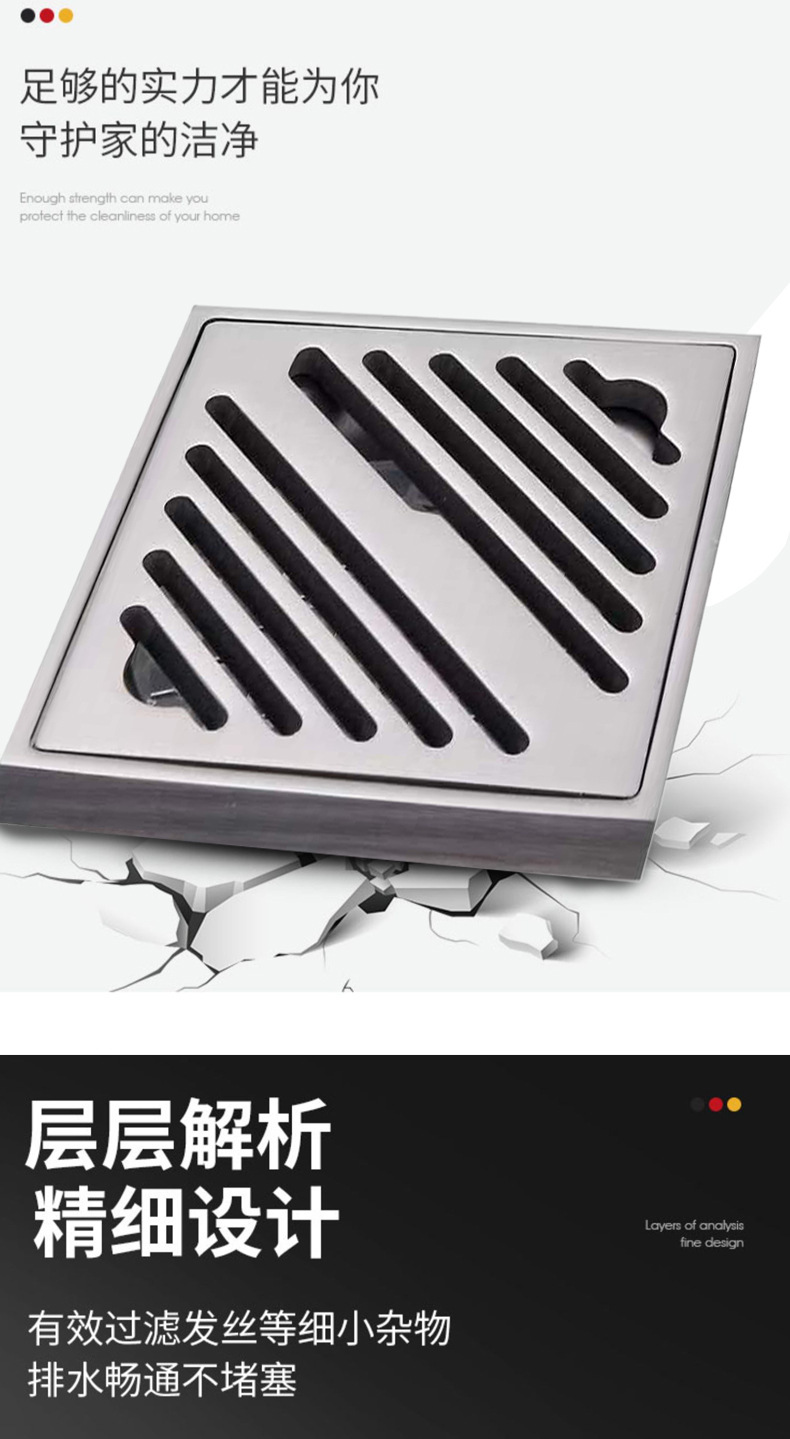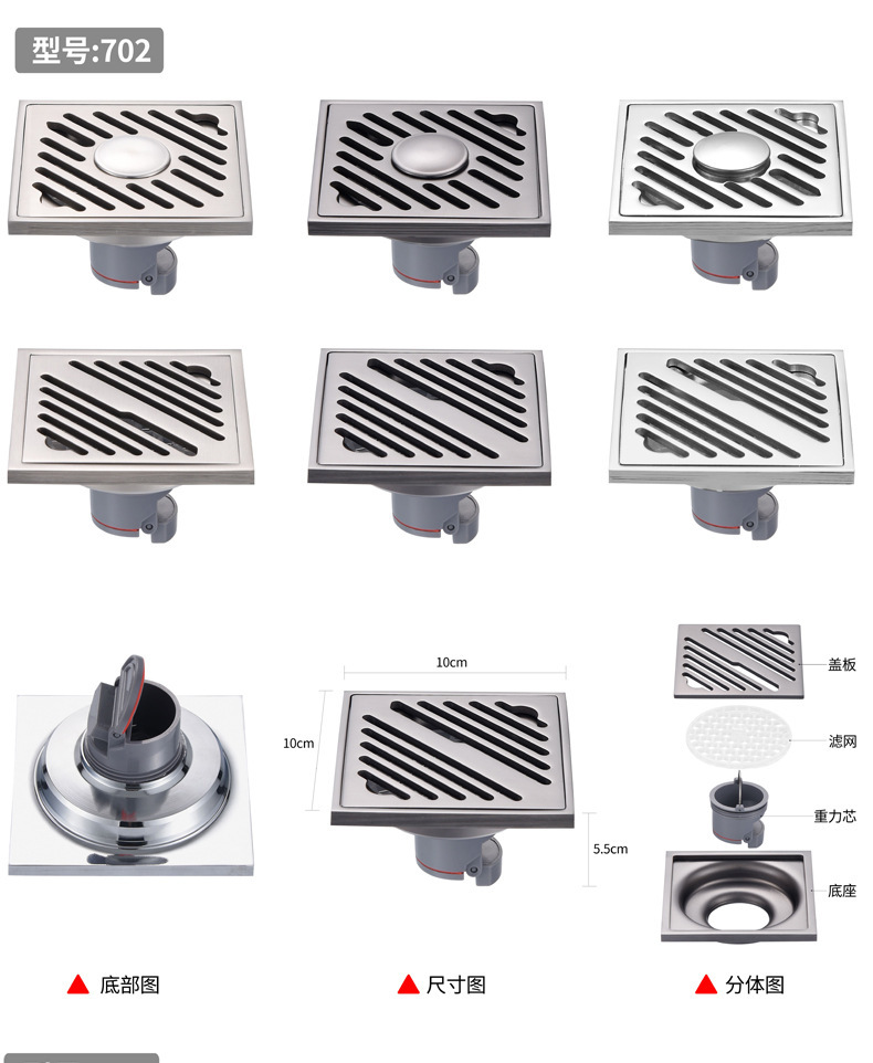Pistola de drenaje gris de 9 cm, drenaje de suelo de acero inoxidable, drenaje de suelo maloliente, drenaje de suelo cuadrado, Sala de ducha, alcantarillado anti - bloqueo, gran desplazamiento