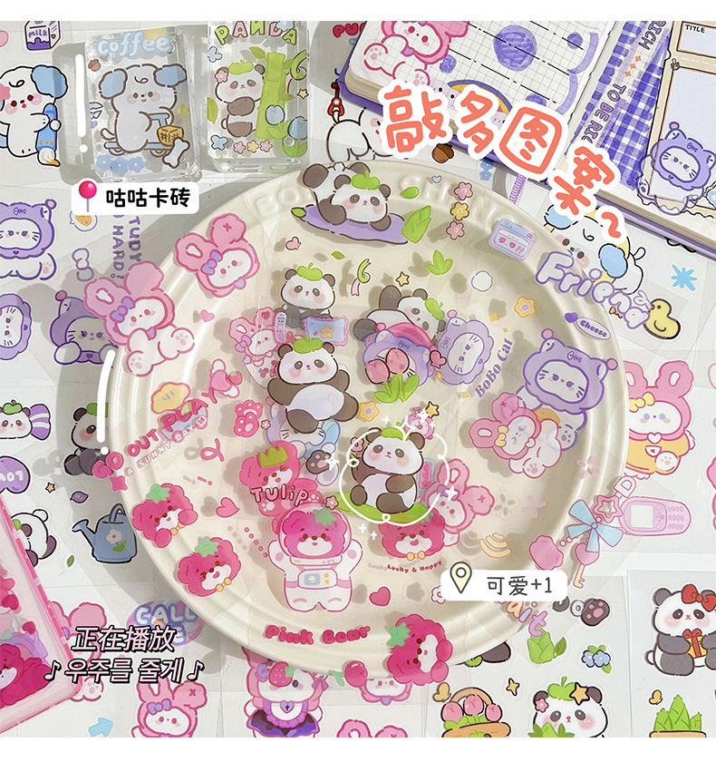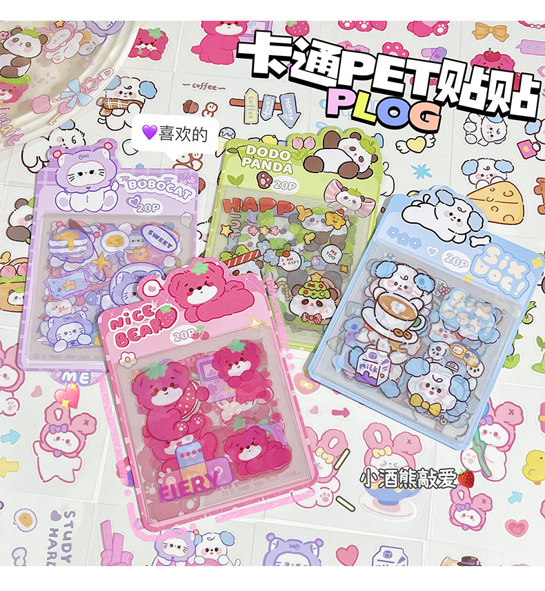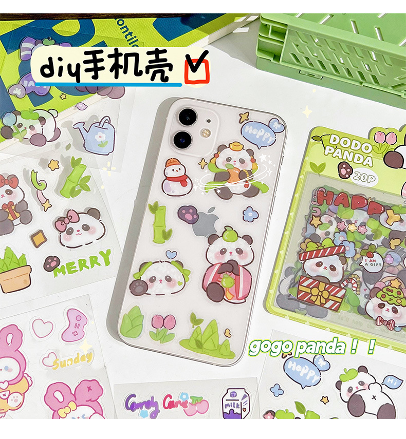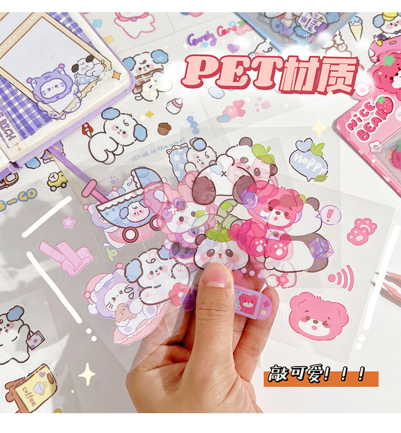 Lindo PET transparente pegatinas de cuentas a mano pintadas DIY Goo Chuck con tazas de agua de dibujos animados pegatinas decorativas de la carcasa del teléfono móvil