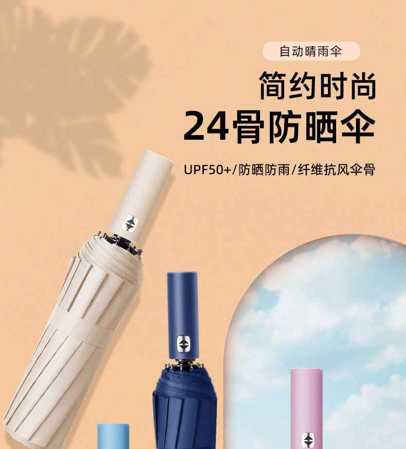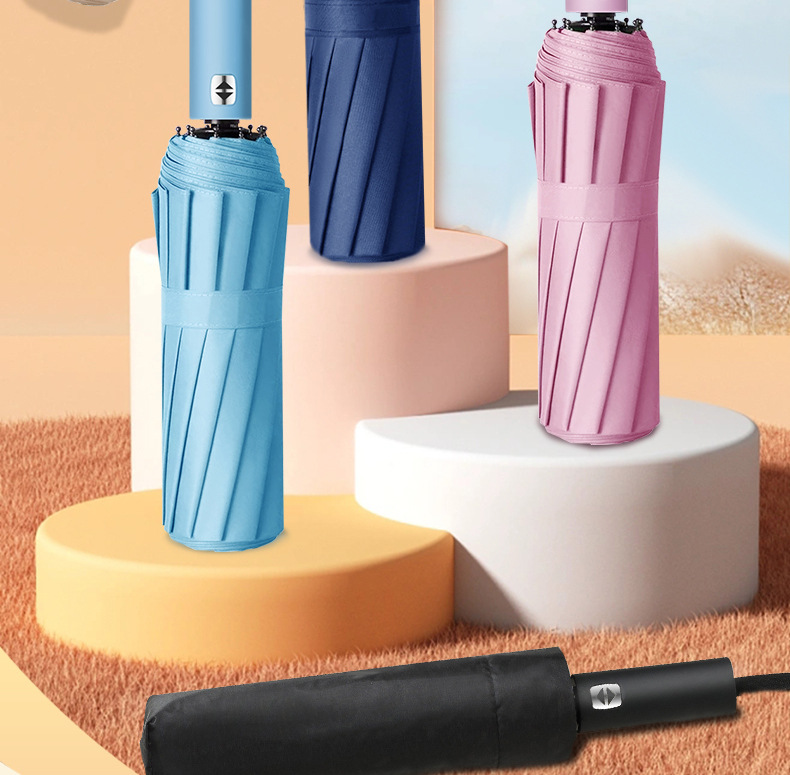 Paraguas soleados automáticos de 24 huesos macarrones más grandes paraguas plegables dobles disponibles pegamento negro duradero 30% de descuento paraguas