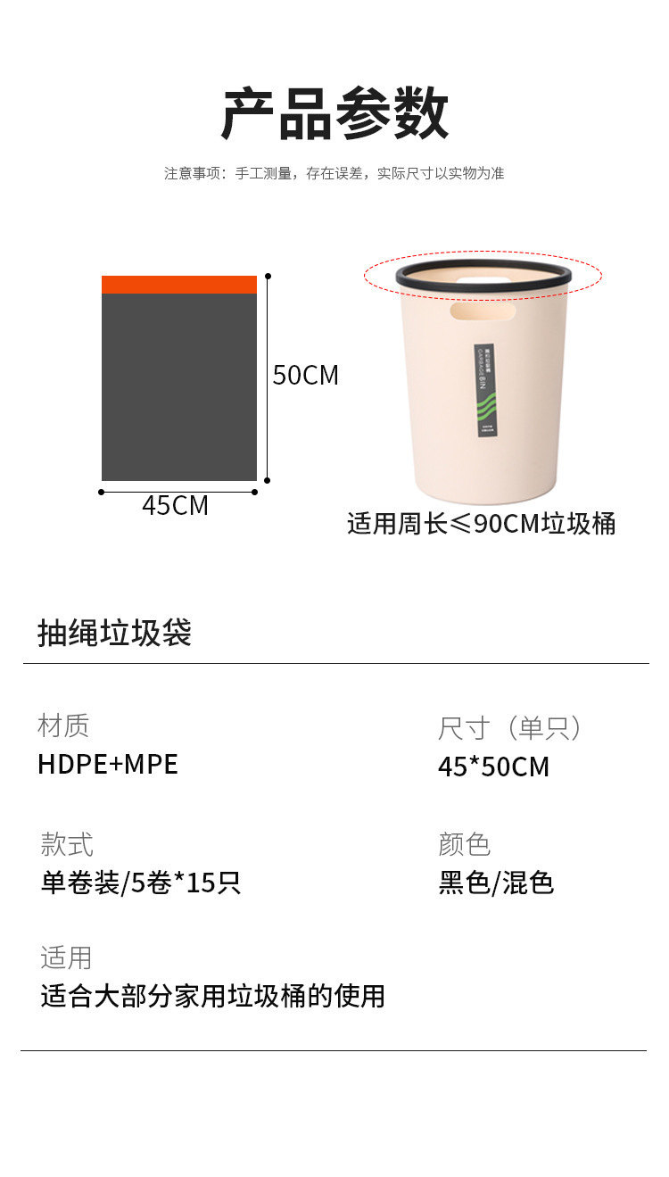 Bolsas de basura tipo cuerda engrosadas para el hogar, dormitorios de cocina portátiles con bolsas de plástico negras grandes para estudiantes
