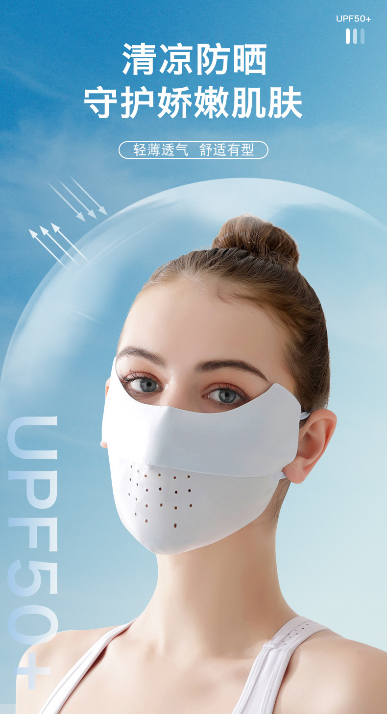 Máscara de protección solar femenina contra los rayos ultravioleta verano delgado, transpirable, sombreado tridimensional, máscara de seda de hielo en toda la cara, máscara facial para proteger las esquinas de los ojos