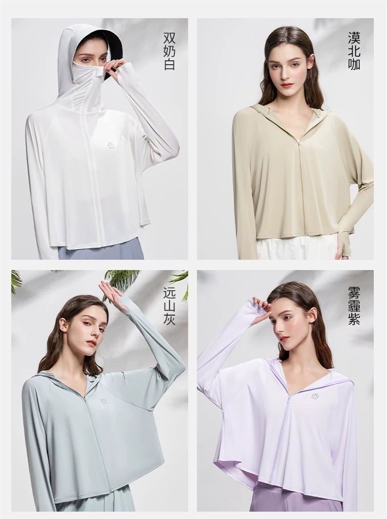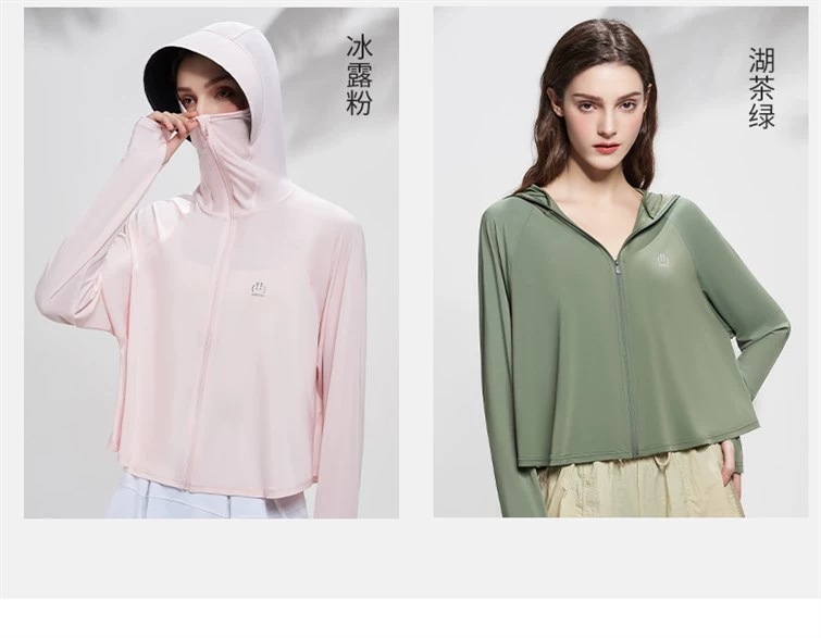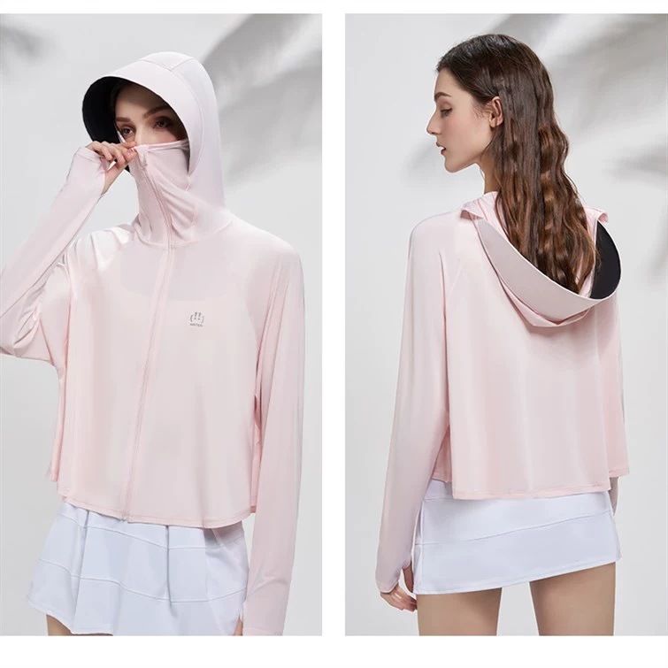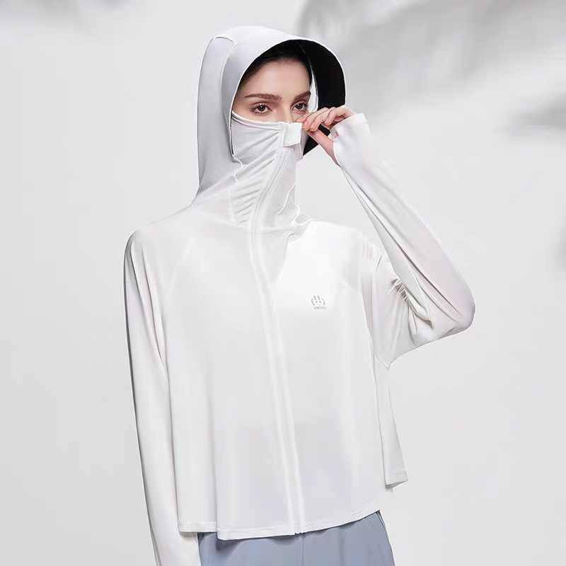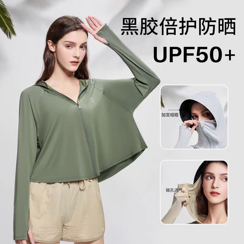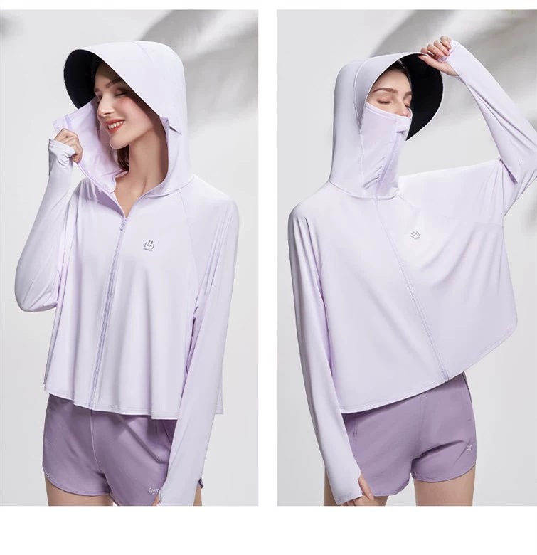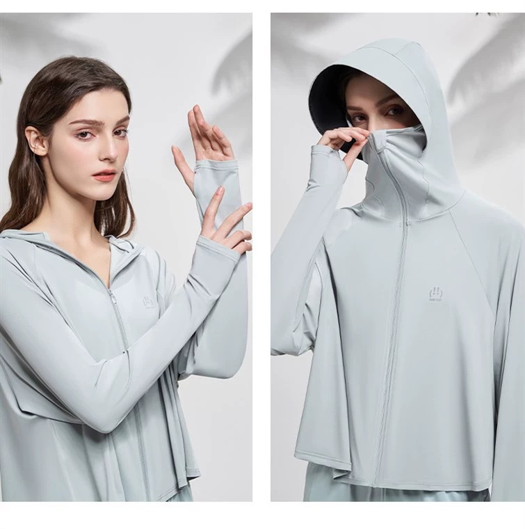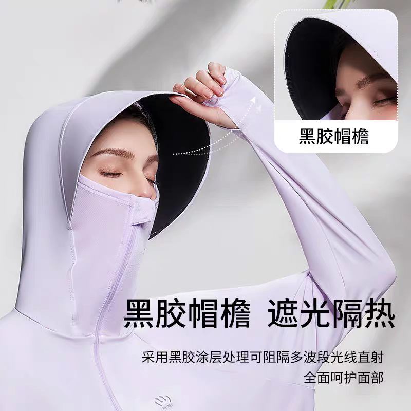 Ropa de protección solar 2024 ropa de protección solar de moda femenina al aire libre protección contra rayos ultravioleta hilo primario de hielo ropa de protección solar de seda de hielo pegamento negro con capucha y máscara al por mayor
