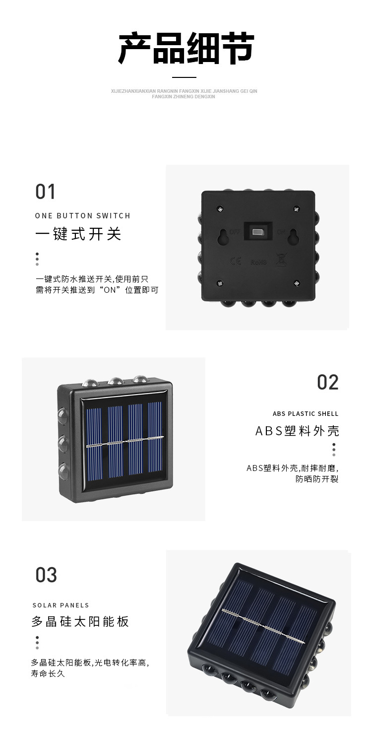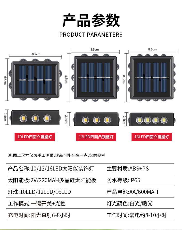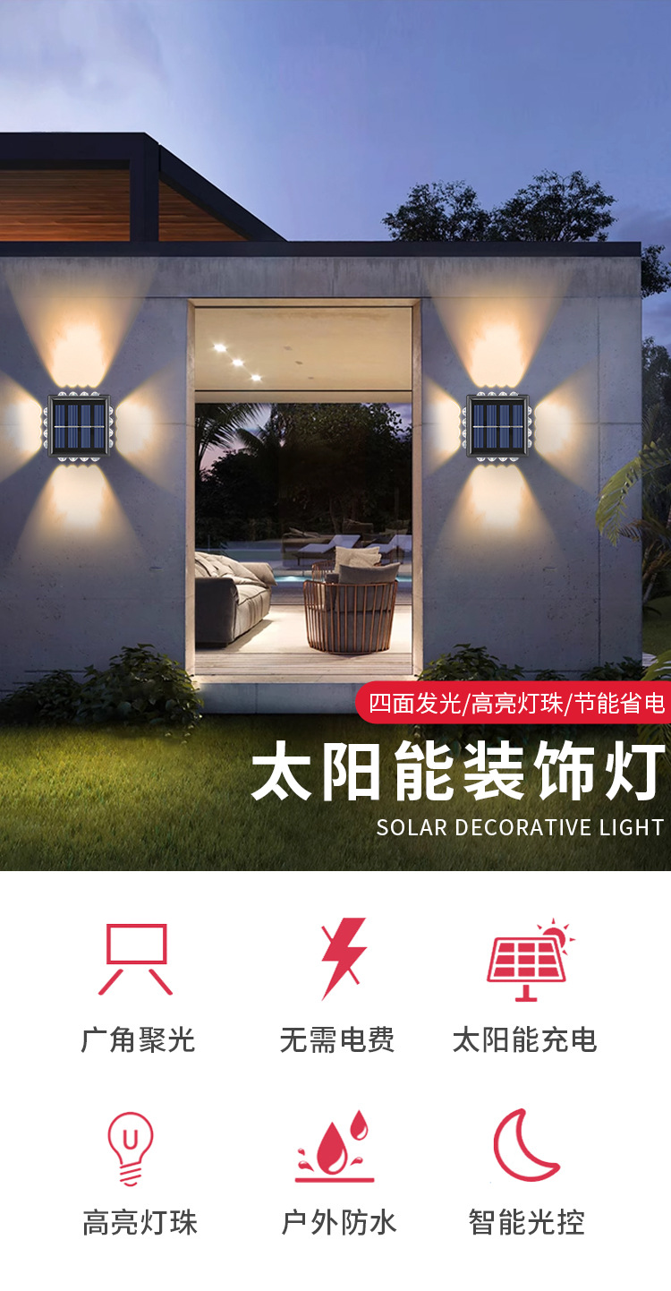 Lámparas de pared de lavado de paredes de paredes de patio al aire libre transfronterizo lámparas de pared de iluminación al aire libre Villa pasillo jardín con lámparas decorativas solares