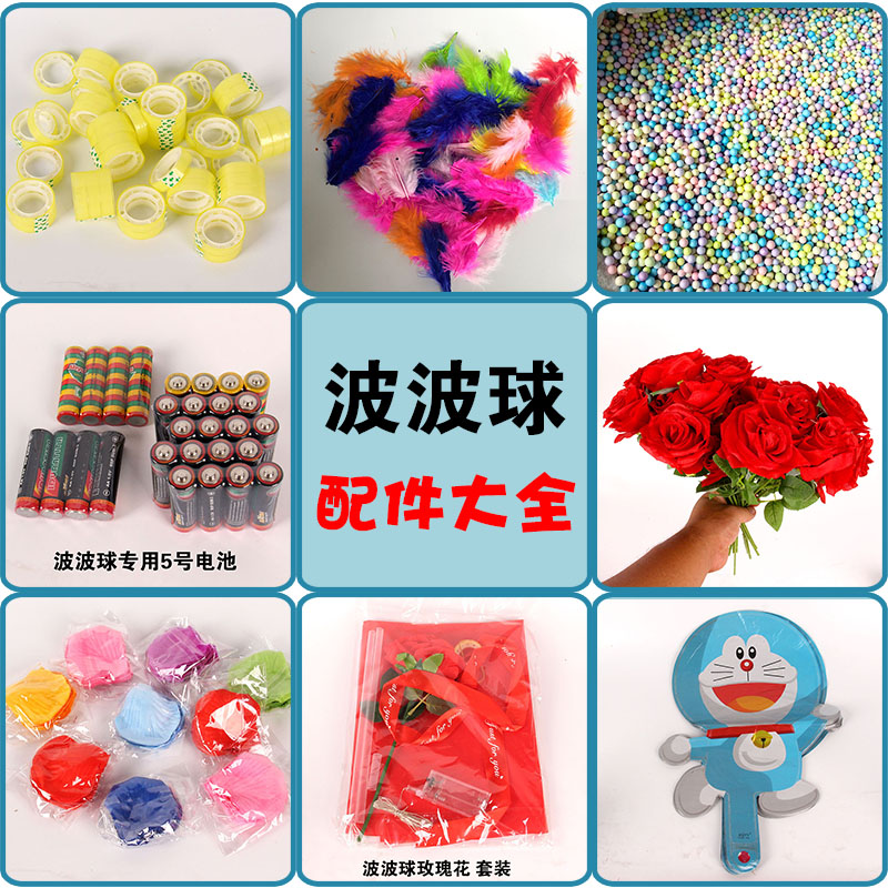 Accesorios de bola de onda, bola, pluma, espuma, caja de baterías de lentejuelas, batería de pétalos de rosa, líquido protector de comercio exterior, cilindro de aire