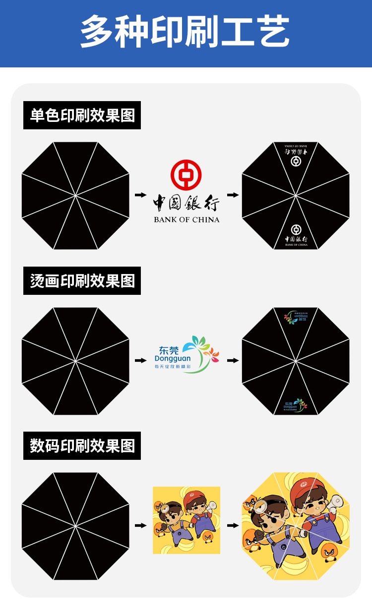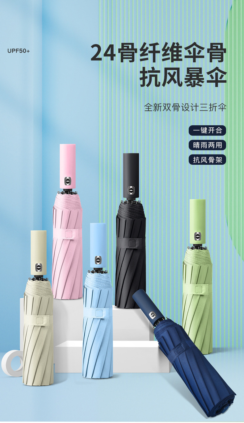 El fabricante suministra directamente paraguas automáticos de 24 huesos, paraguas de regalo con logotipo impreso, paraguas de fibra de vidrio fracturados y paraguas apilados.