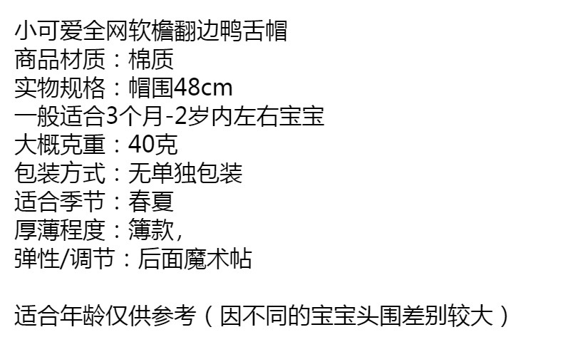 Gorra de protección solar para bebés gorra de pato para bebés gorra de sol transpirable delgada en verano gorra de béisbol para niños y niñas