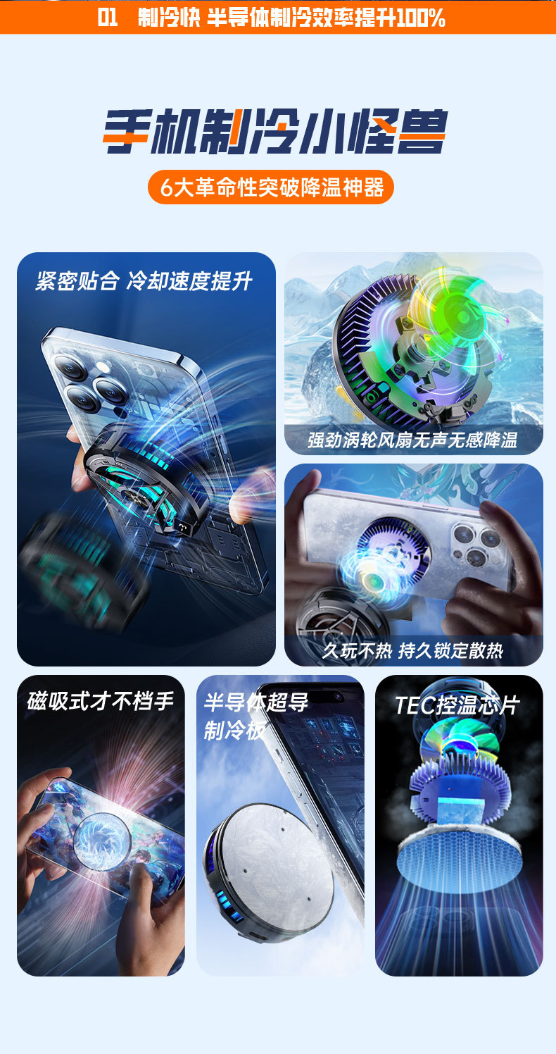 Nuevo disipador de calor de teléfono móvil de refrigeración de semiconductores juego de tableta en vivo disipación de calor absorción magnética clip de espalda artefacto de enfriamiento de juego móvil