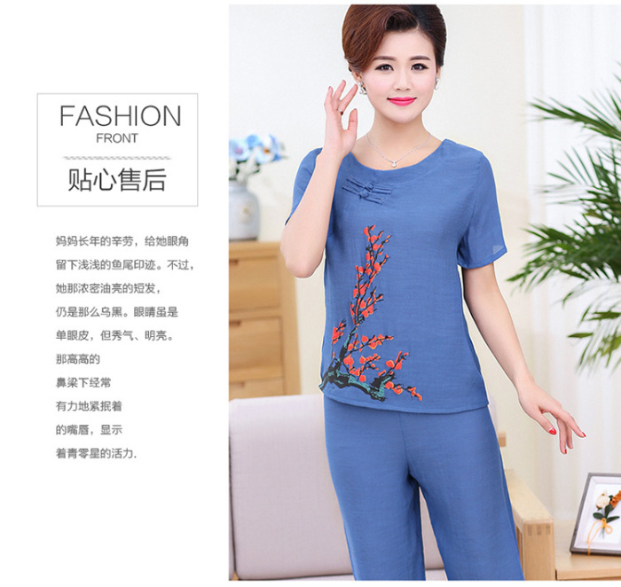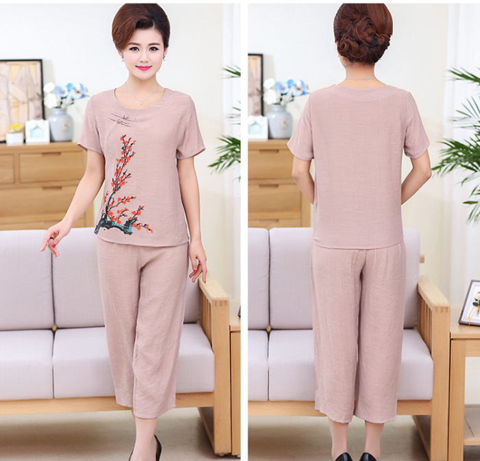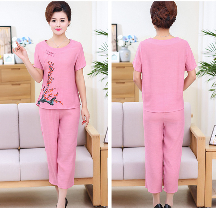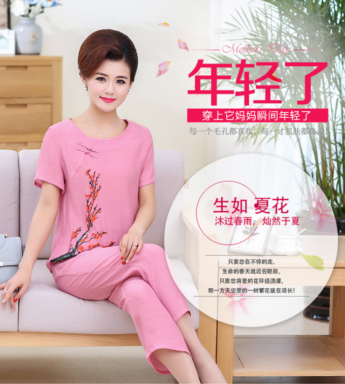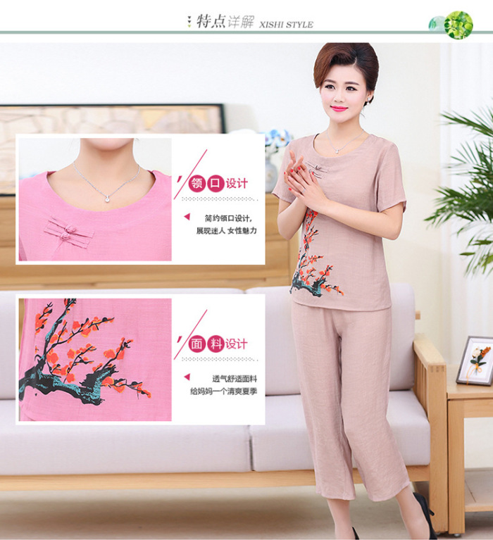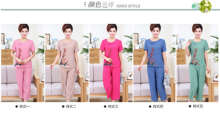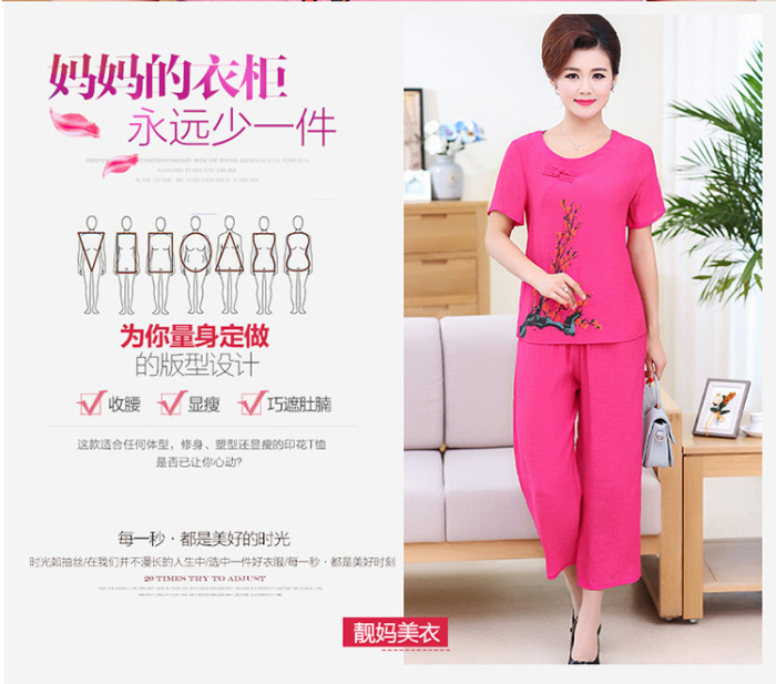 Ropa de verano nueva ropa de mujer de mediana edad y ancianos moda madre con mangas cortas y pantalones ajustados de siete puntos conjuntos