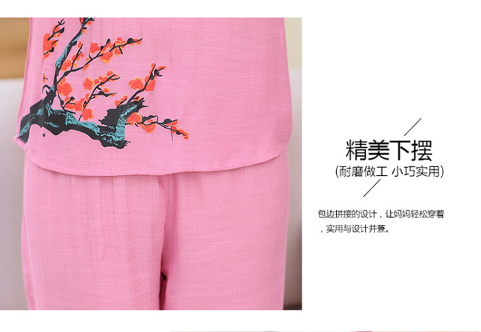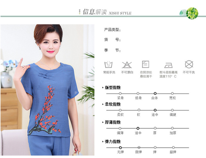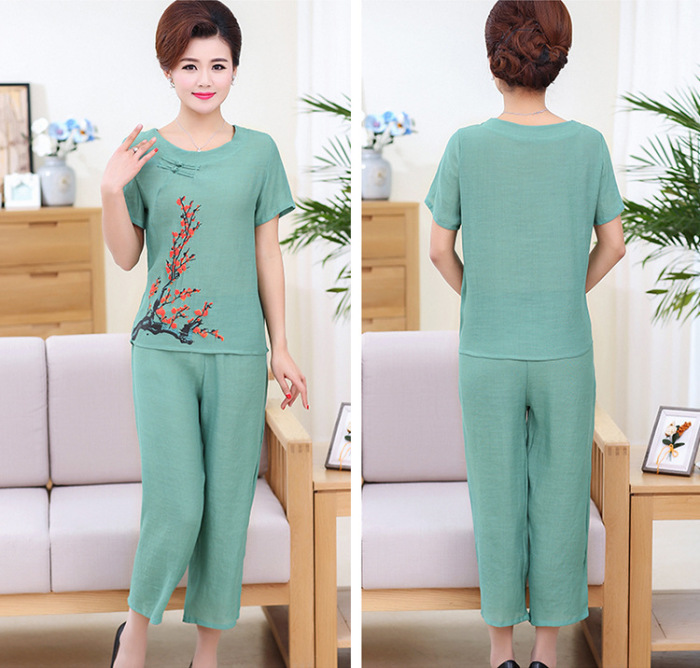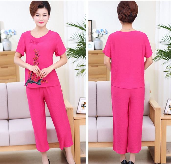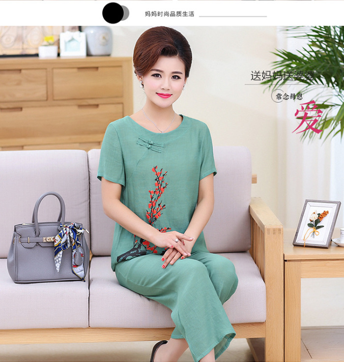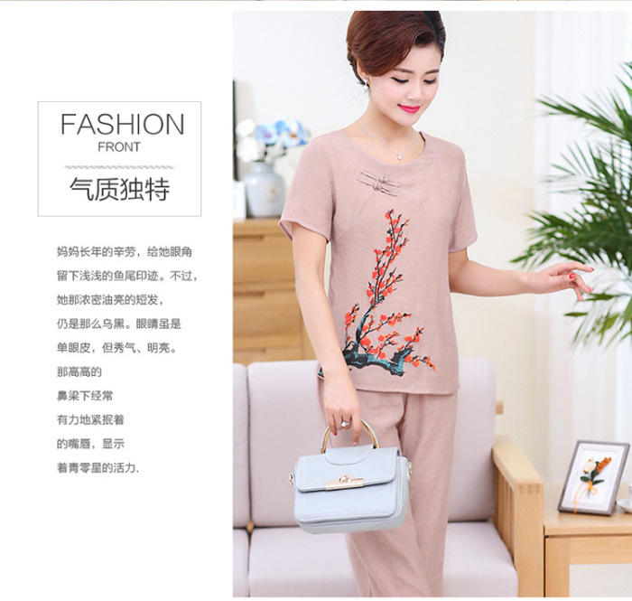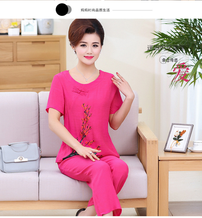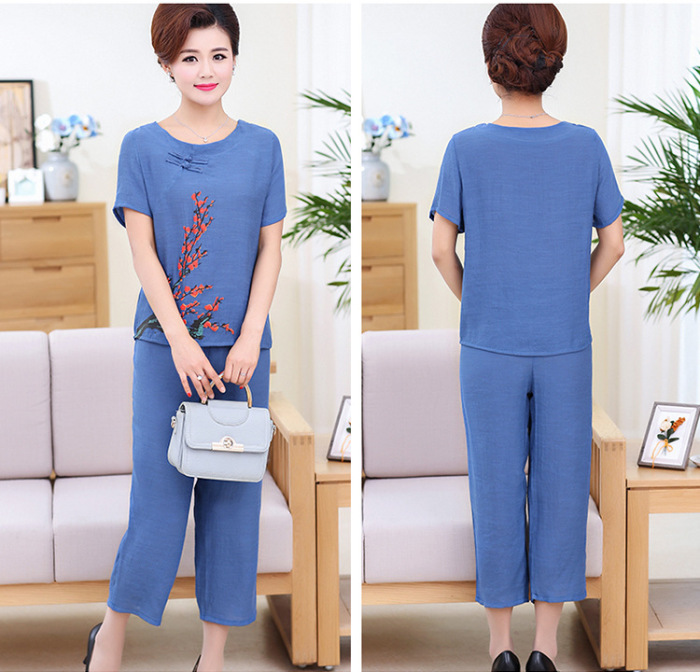 Ropa de verano nueva ropa de mujer de mediana edad y ancianos moda madre con mangas cortas y pantalones ajustados de siete puntos conjuntos