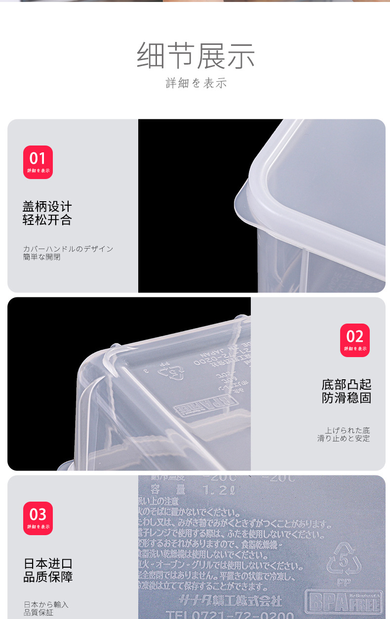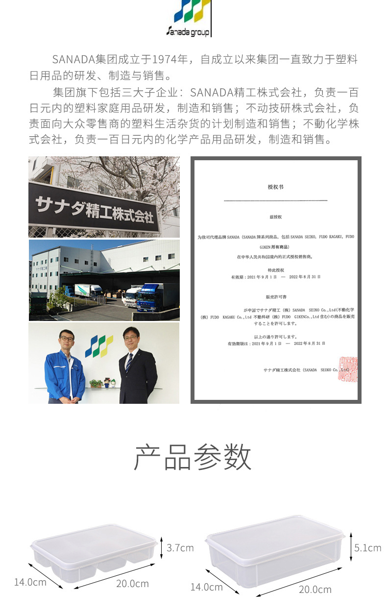 Las cajas de almacenamiento de refrigeradores importados de Japón de Sanada pueden conservarse en posición vertical en 6 puntos de cuadrícula y 75 ml por cuadrícula.