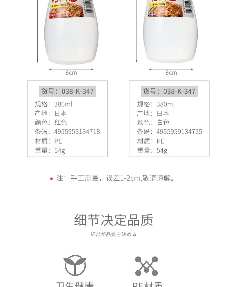 Nakaya botella de condimento importada de Japón queso de ensalada poroso salsa de tomate salsa de condimento exprimida a prueba de fugas botella de condimento 380ml