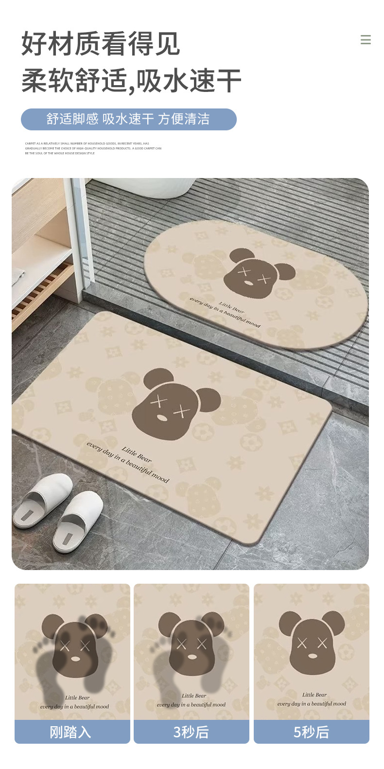 Almohadilla de barro de diatomeas almohadilla antideslizante para baño almohadilla de goma blanda en la puerta del baño de la serie de dibujos animados modernos y simples