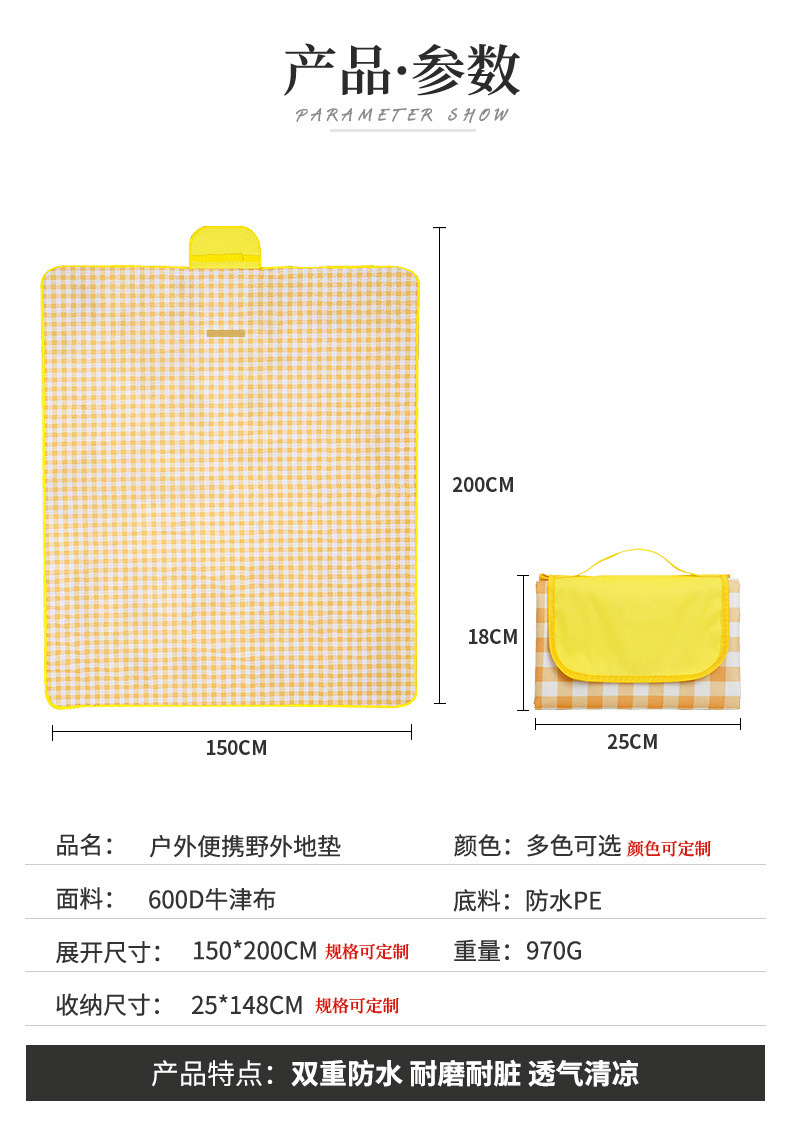 Almohadilla de picnic almohadilla de playa impermeable al aire libre almohadilla de playa a prueba de humedad de tela de Oxford almohadilla de tienda de campaña almohadilla de picnic fabricante recto