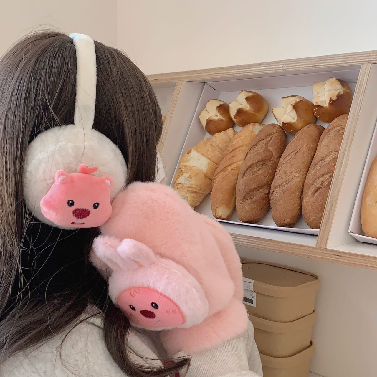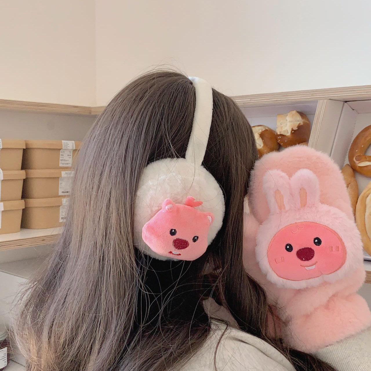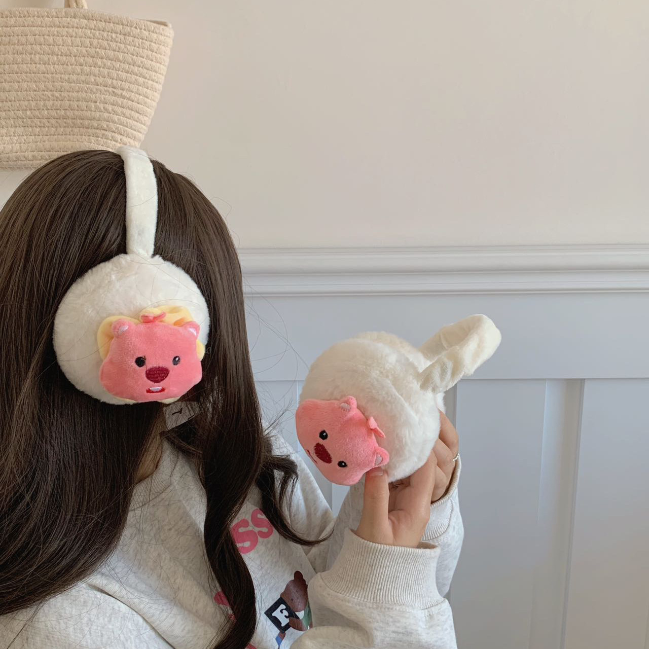 Las Orejeras de castor pequeño y lindo corazón de la niña se engrosan en invierno y se pueden plegar para evitar la congelación y el frío. las Orejeras de peluche de moda protegen las orejas de la niña.