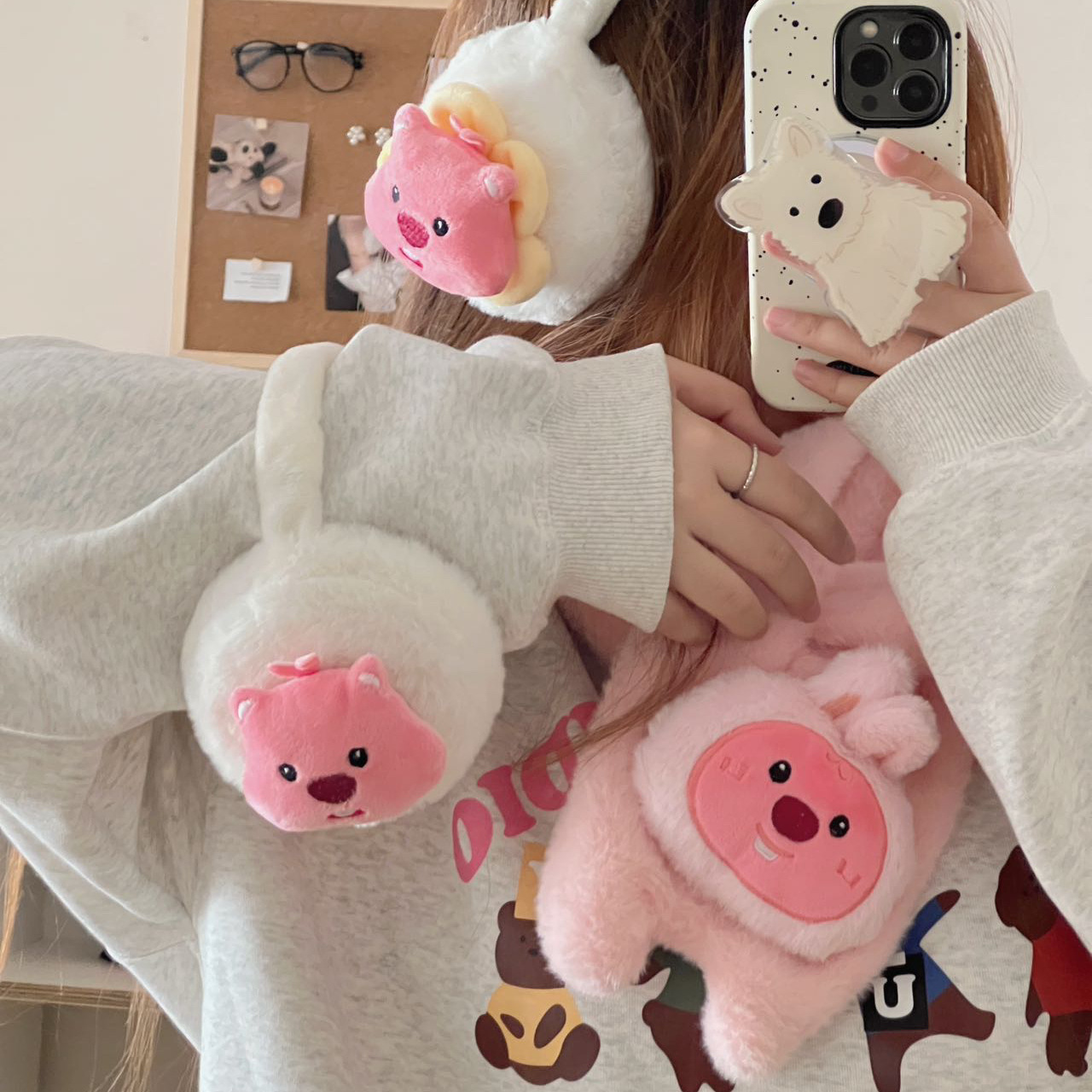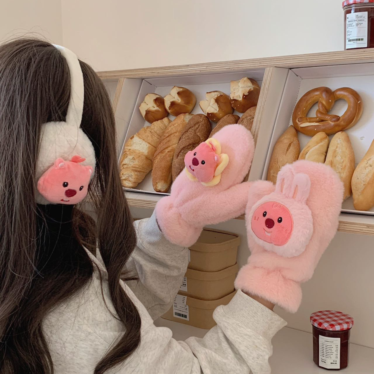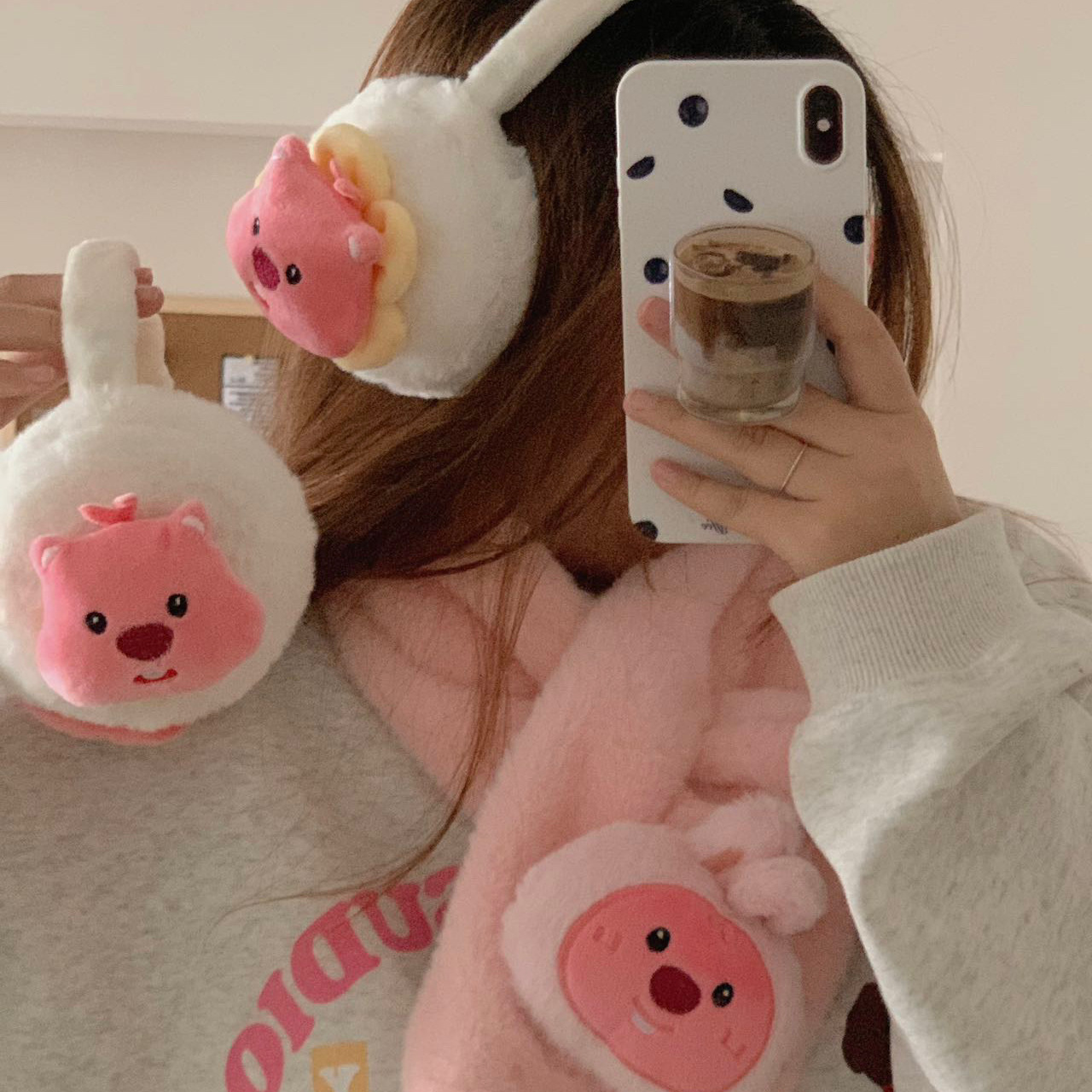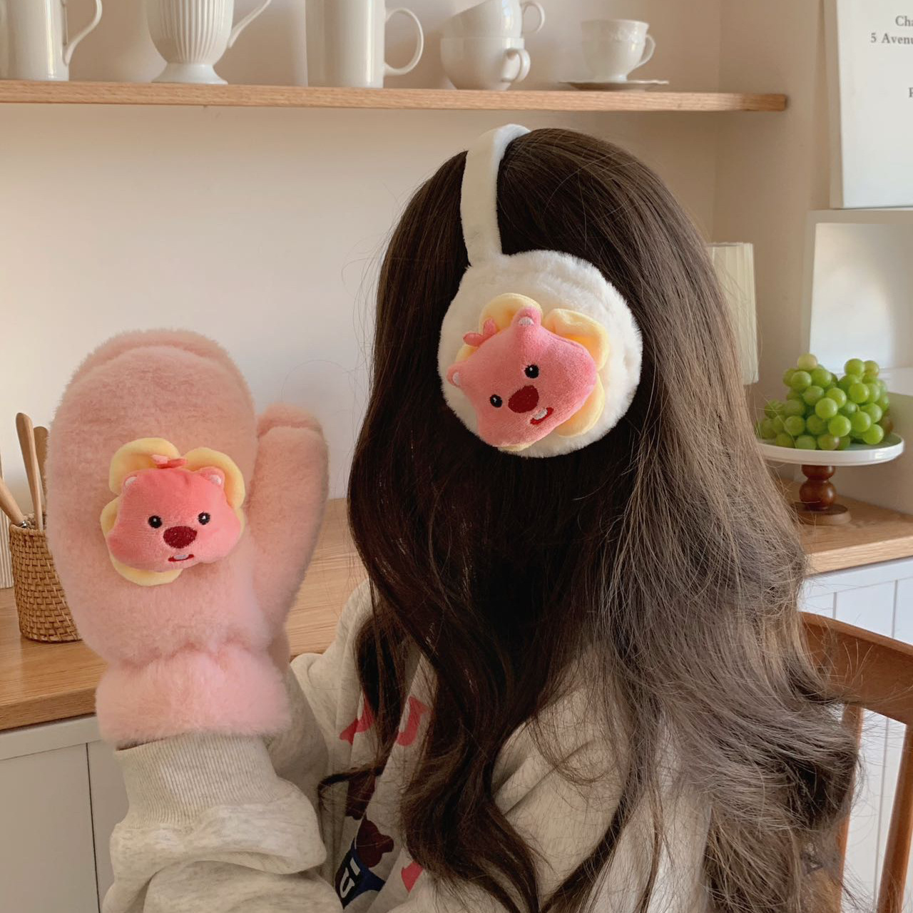 Las Orejeras de castor pequeño y lindo corazón de la niña se engrosan en invierno y se pueden plegar para evitar la congelación y el frío. las Orejeras de peluche de moda protegen las orejas de la niña.