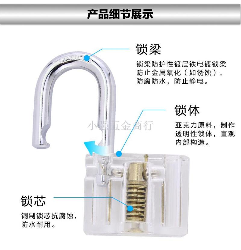 Candado transparente cerradura de hoja transparente fuente de cerradura de hoja de exhibición transparente cerradura de hoja de soporte personalizado logo