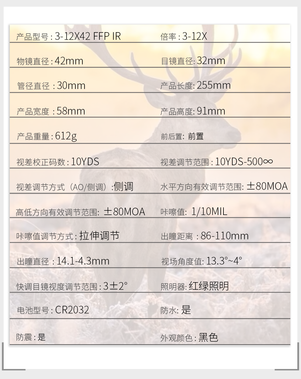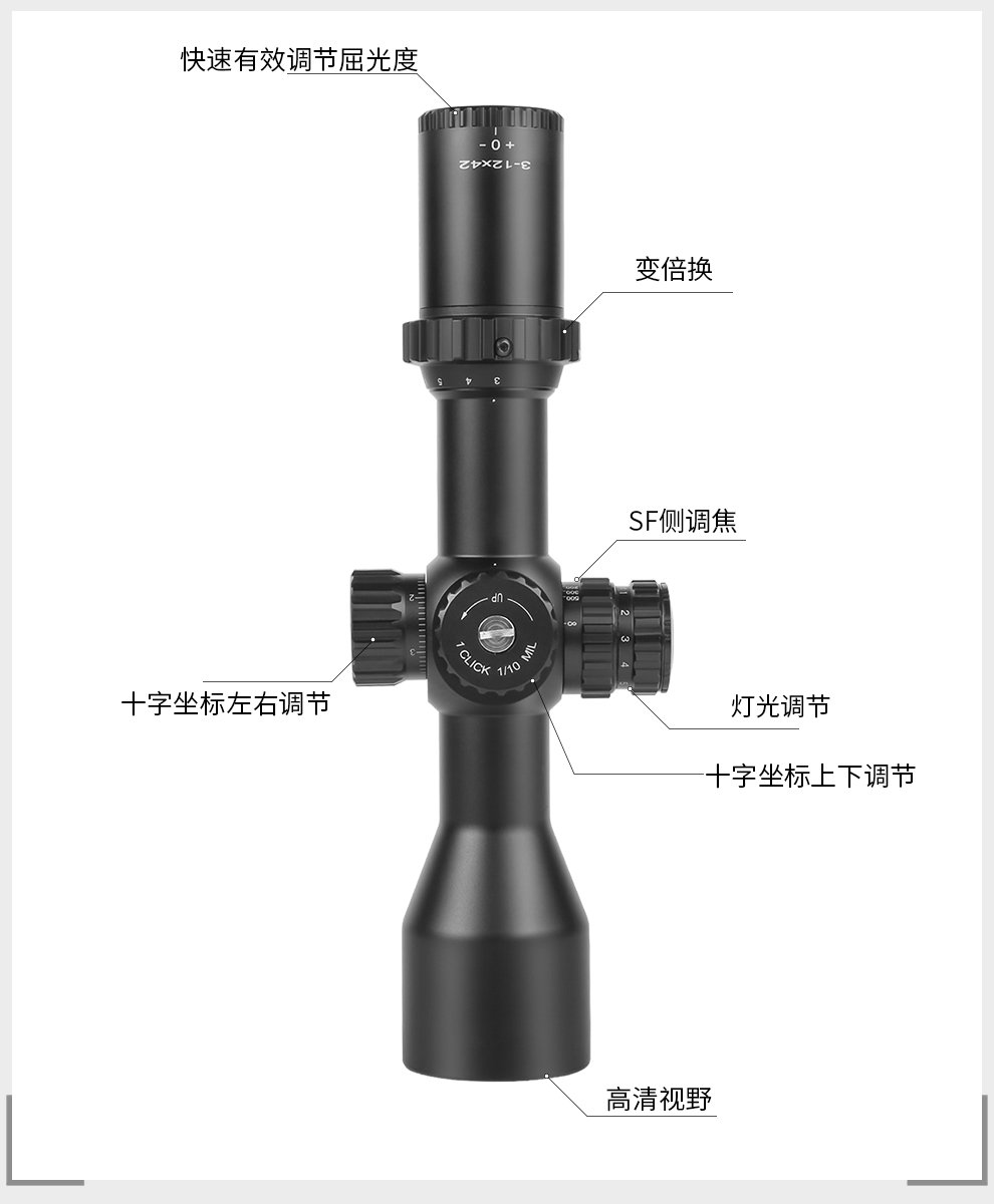 T - Eagle Flying Eagle mr3 - 12x42 placa de vidrio lado delantero con luz de ajuste corto vista delantera corta