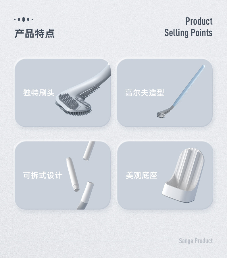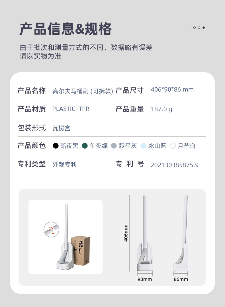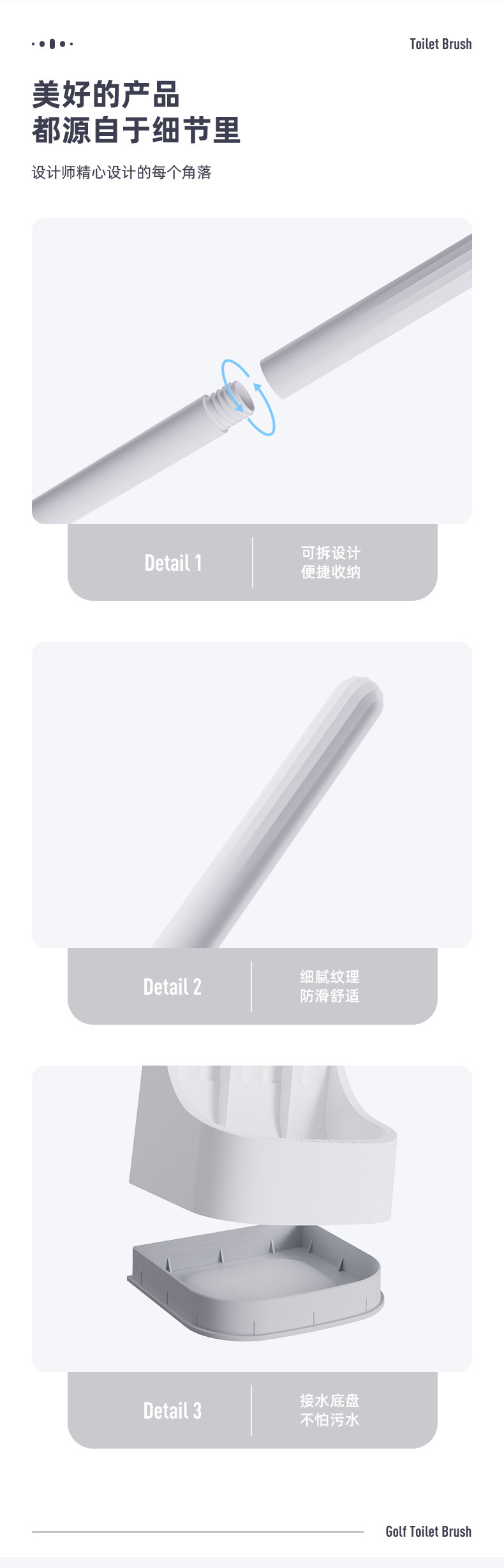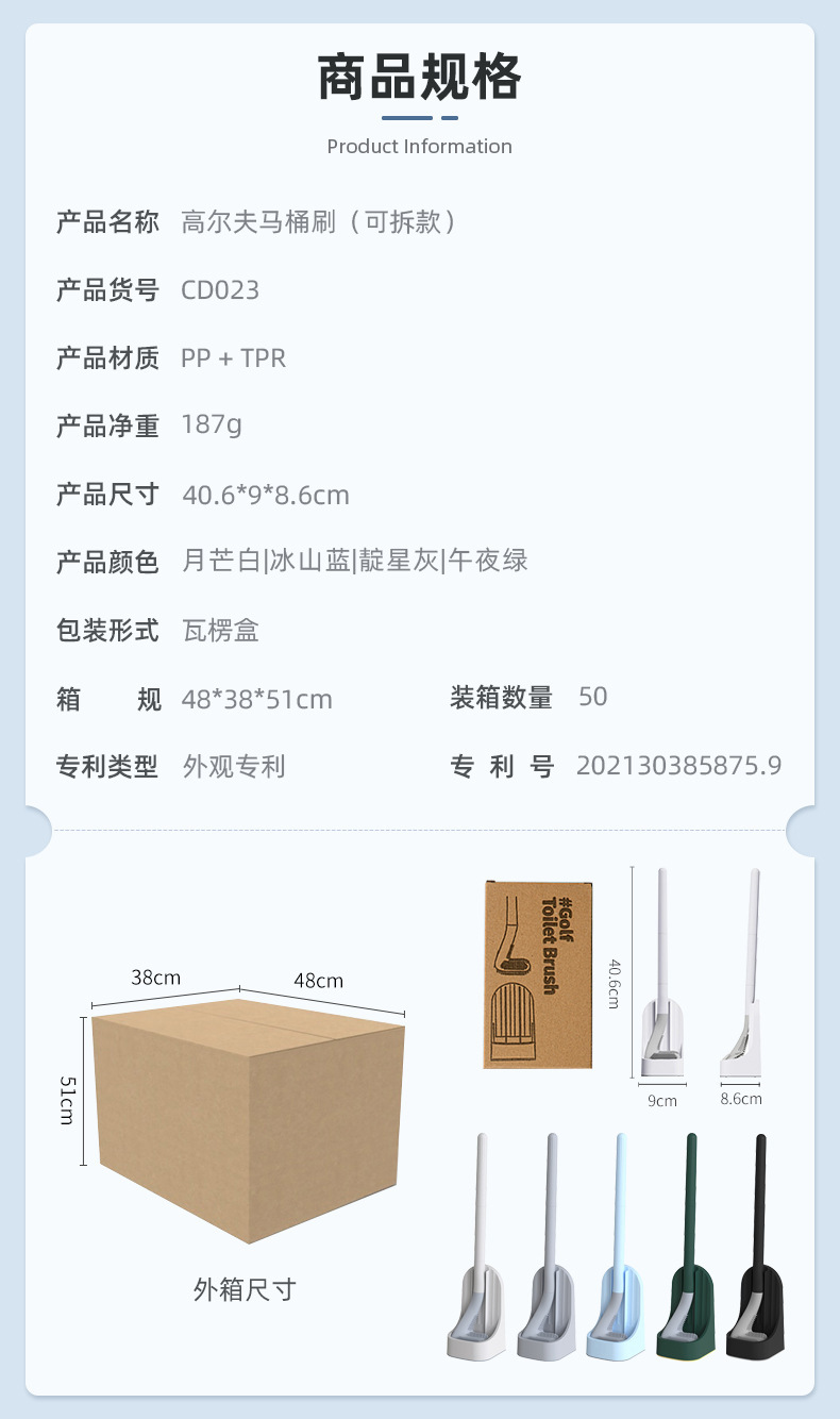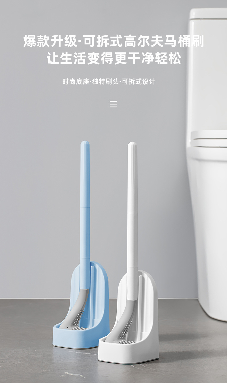 Venta caliente transfronteriza cepillo de inodoro de golf mango largo desmontable con base de goma blanda sin ángulos muertos juego de cepillo de limpieza de inodoro
