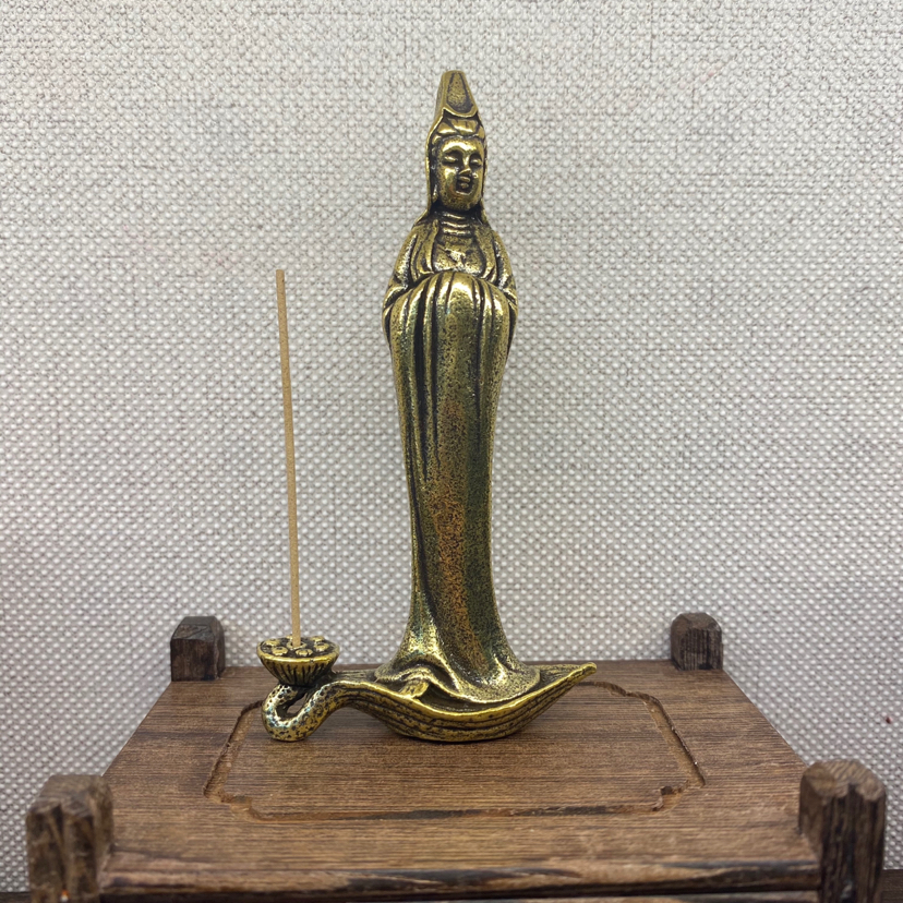 Mini estatua de Buda Guanyin de cobre puro con fragancia insertada en el pisapapeles de Buda ritual, línea de adoración de Buda con fragancia insertada en la Mesa de té de texto, mascota de té japonesa