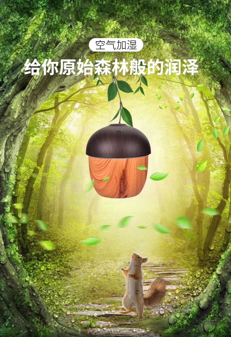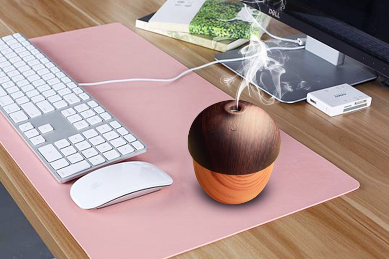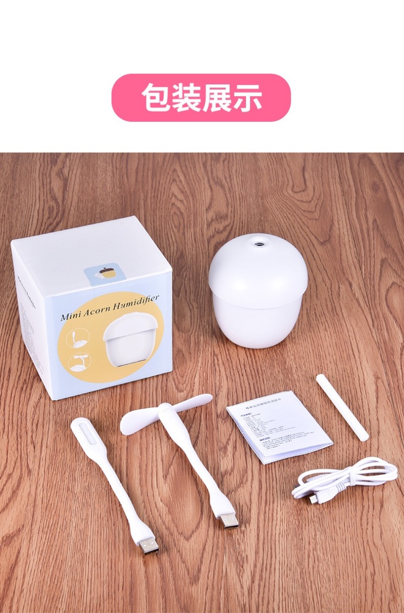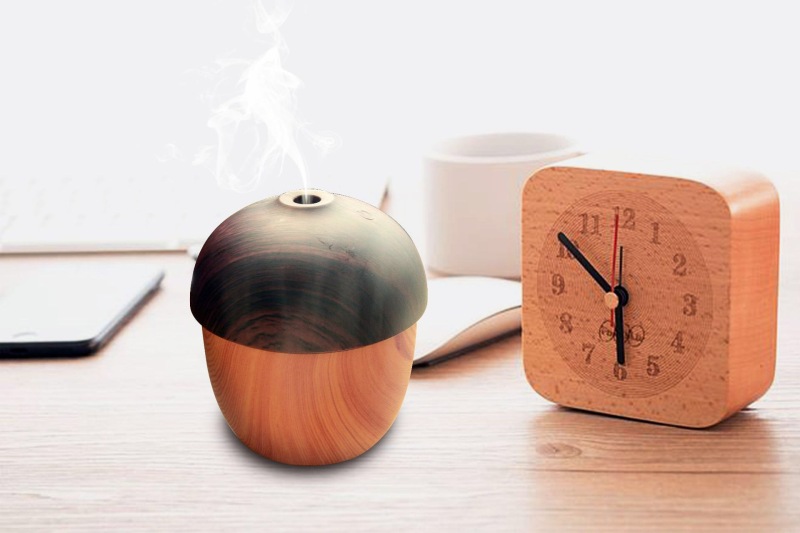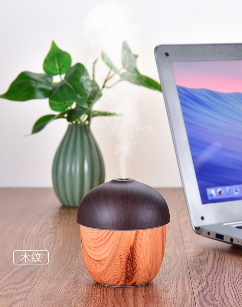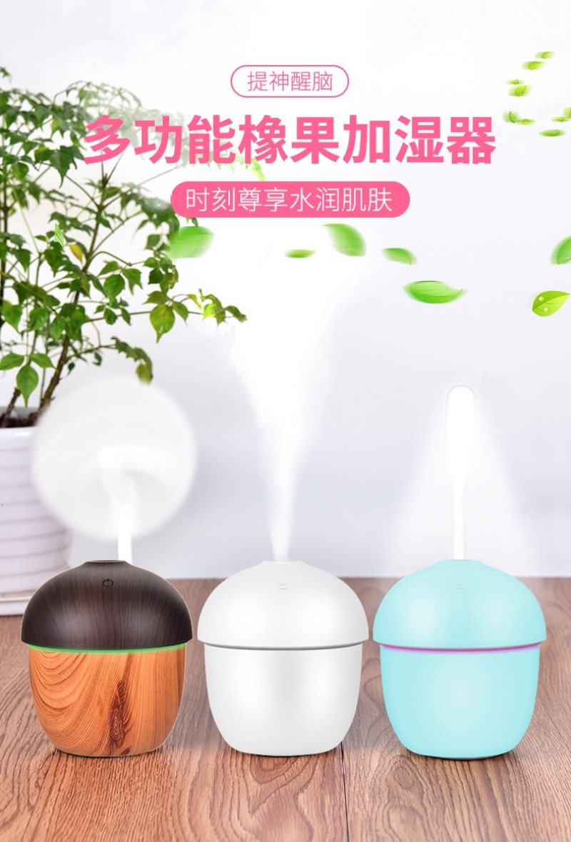 Humidificador de bellota de grano de madera USB purificador de aire de tres en uno mini Humidificador para vehículos