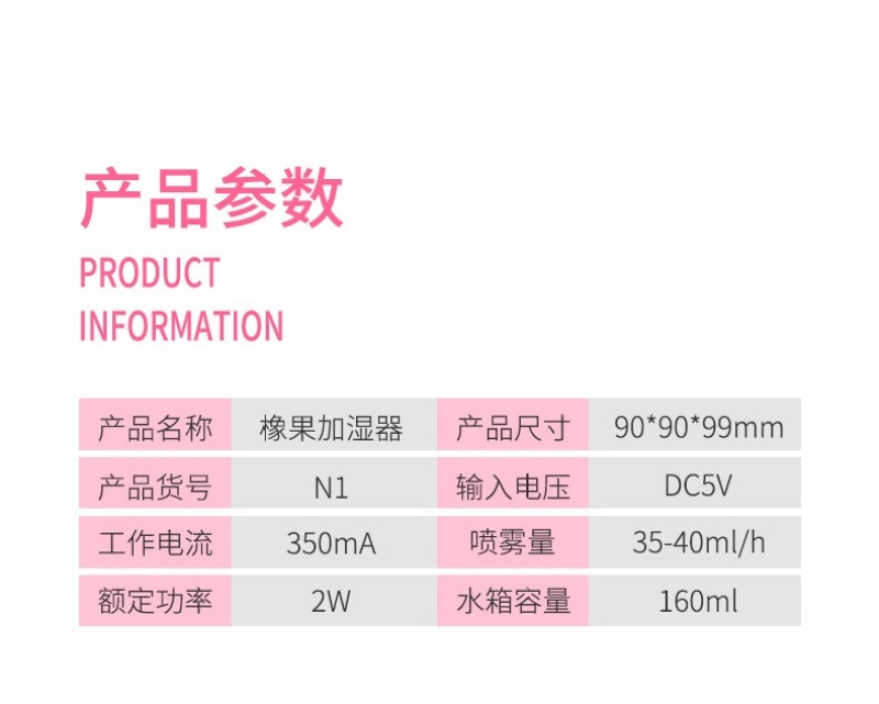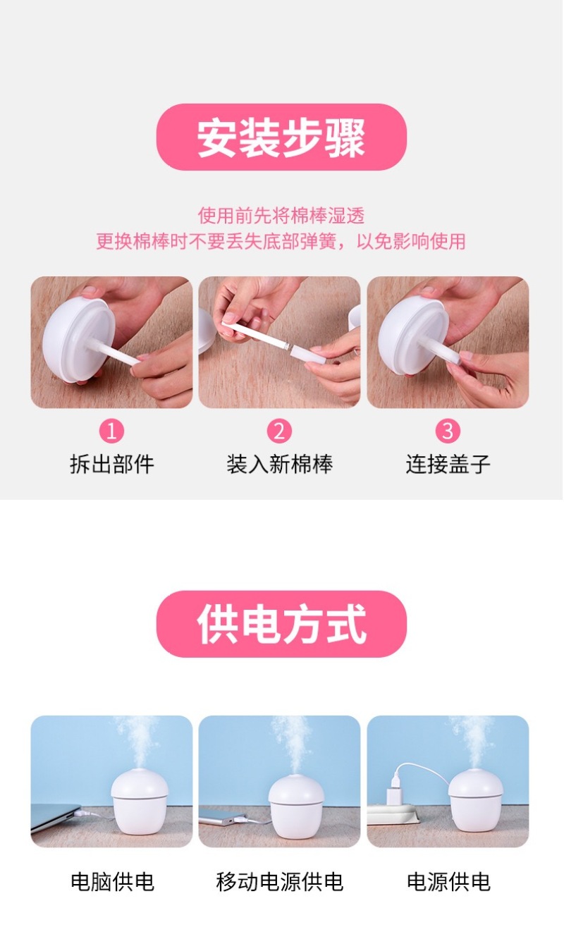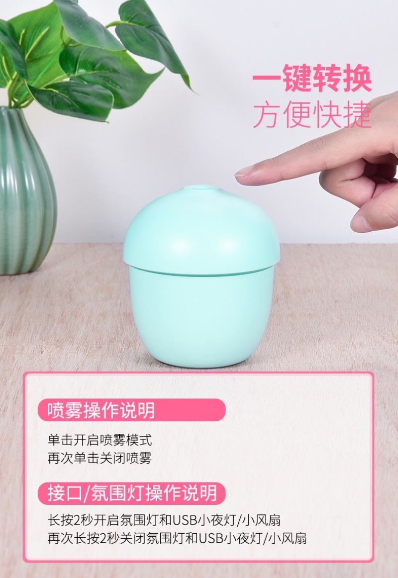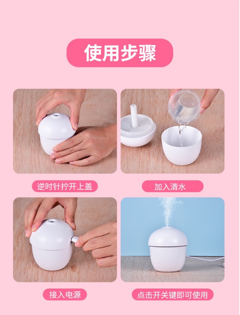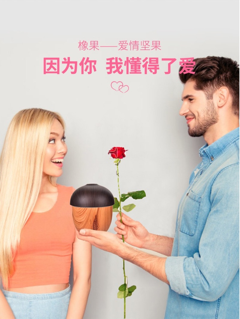 Humidificador de bellota de grano de madera USB purificador de aire de tres en uno mini Humidificador para vehículos
