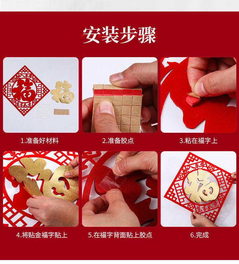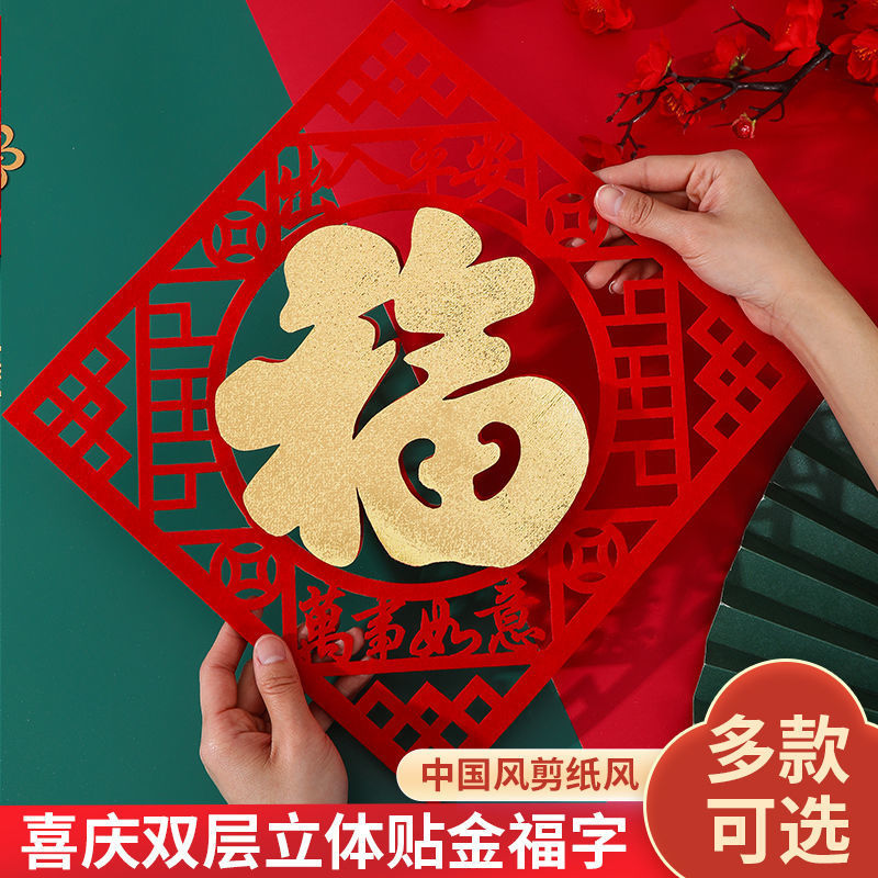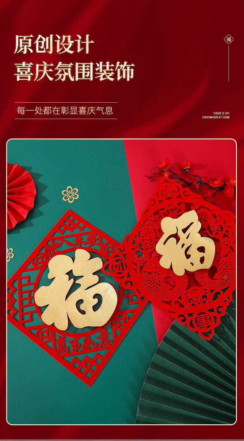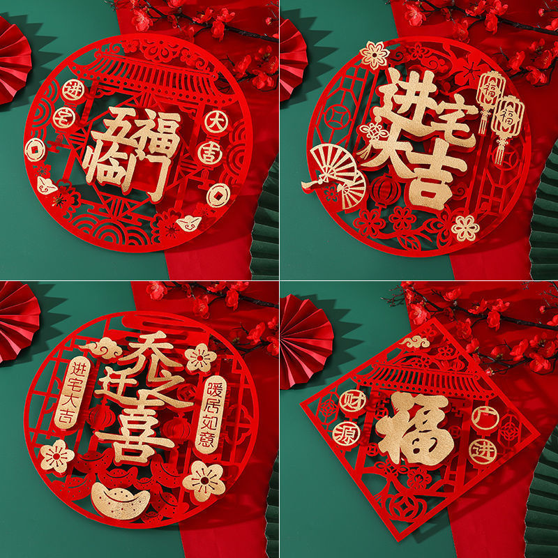 Palabras de bendición de año nuevo, pegatinas de puertas de año nuevo, pegatinas de pared, pegatinas decorativas del Festival de primavera, suministros de alegría para el traslado, la nueva casa se unió a la familia y entró en la casa.