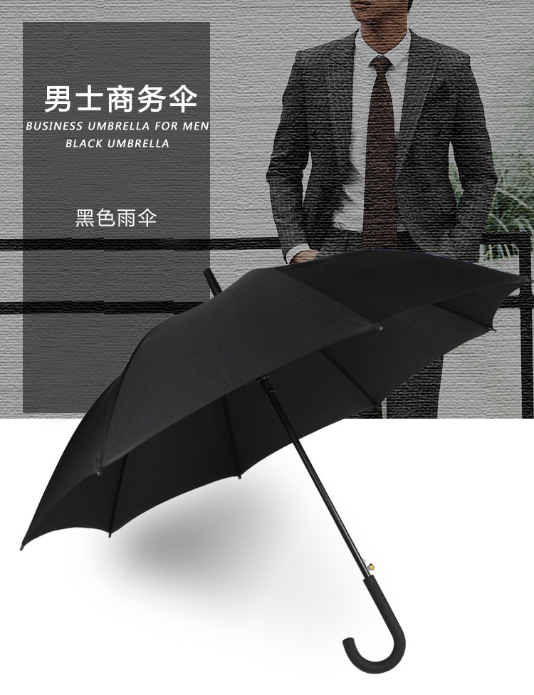 Paraguas negros mango largo automático para hombres de negocios a prueba de rayos ultravioleta paraguas negros pequeños publicidad de logotipo de doble impresión
