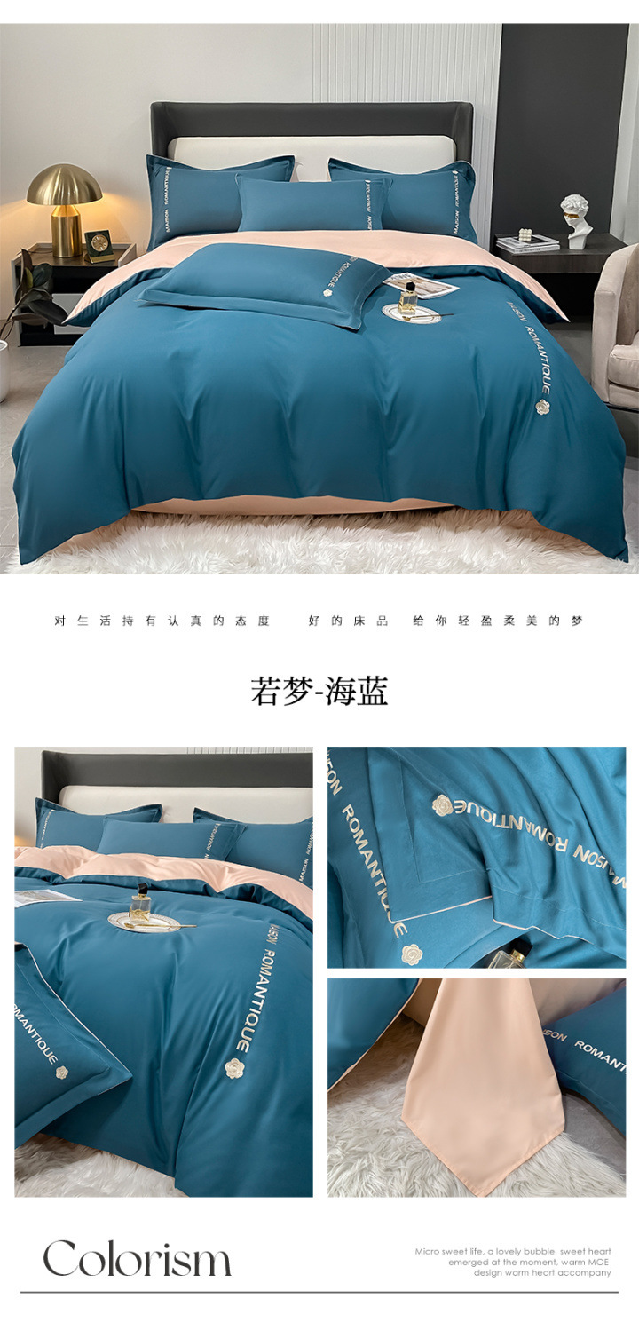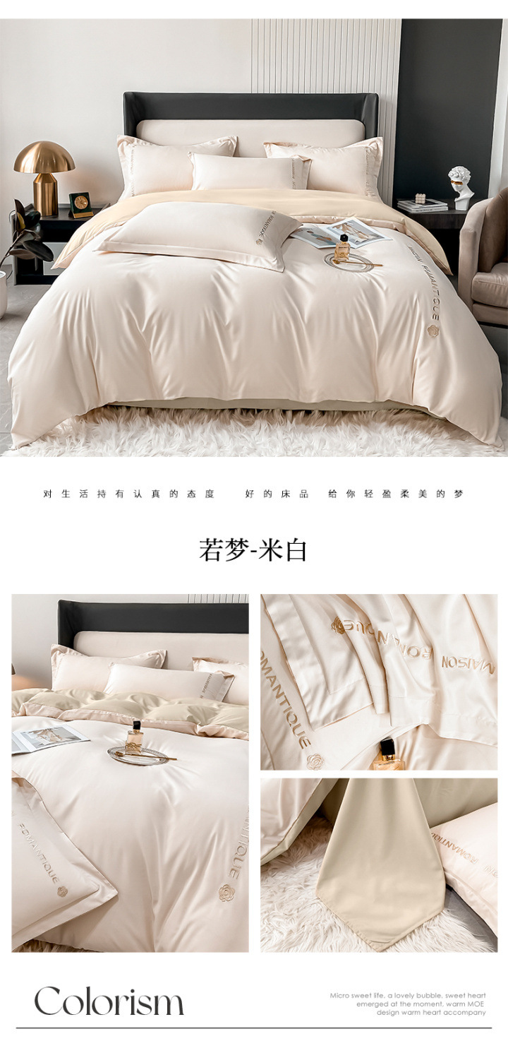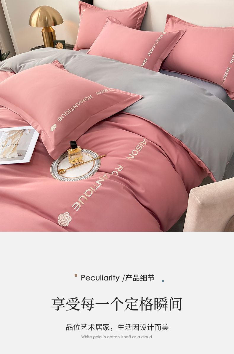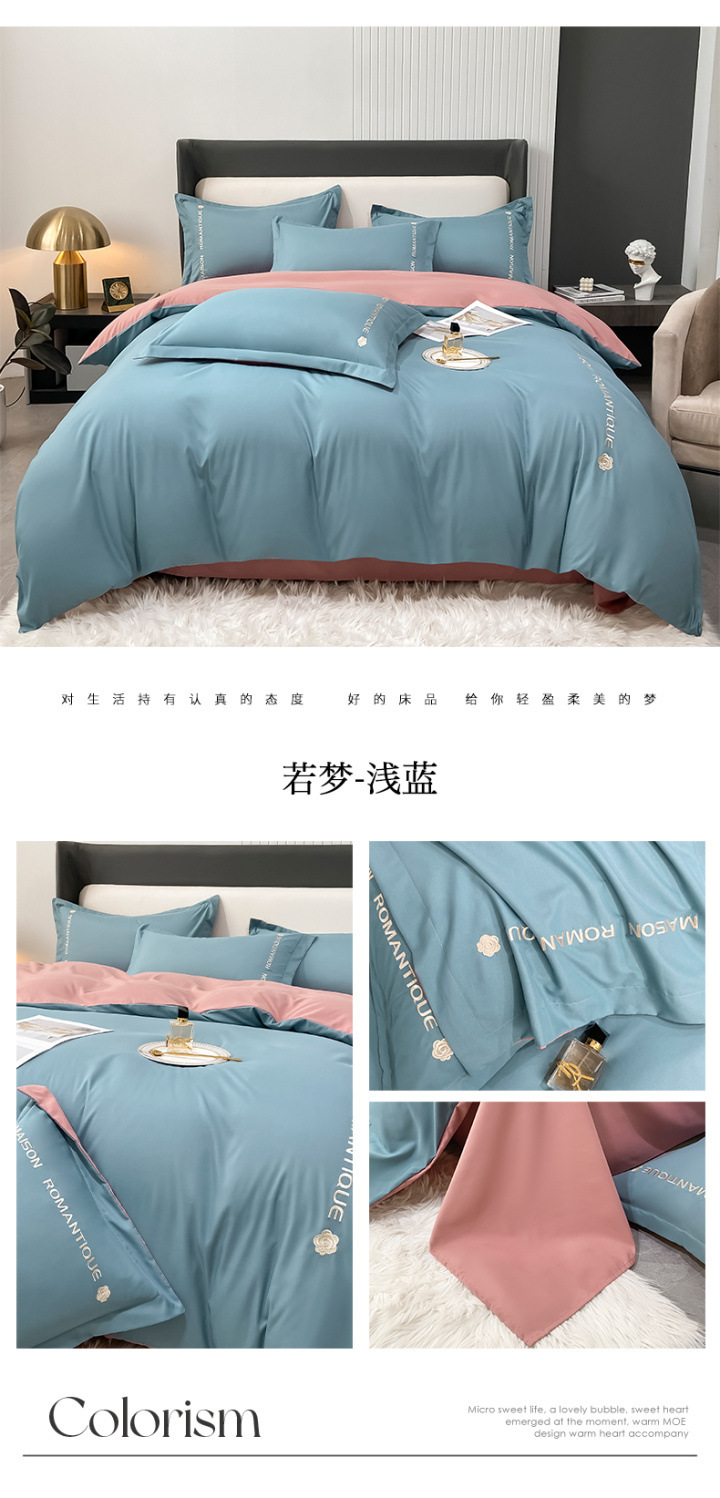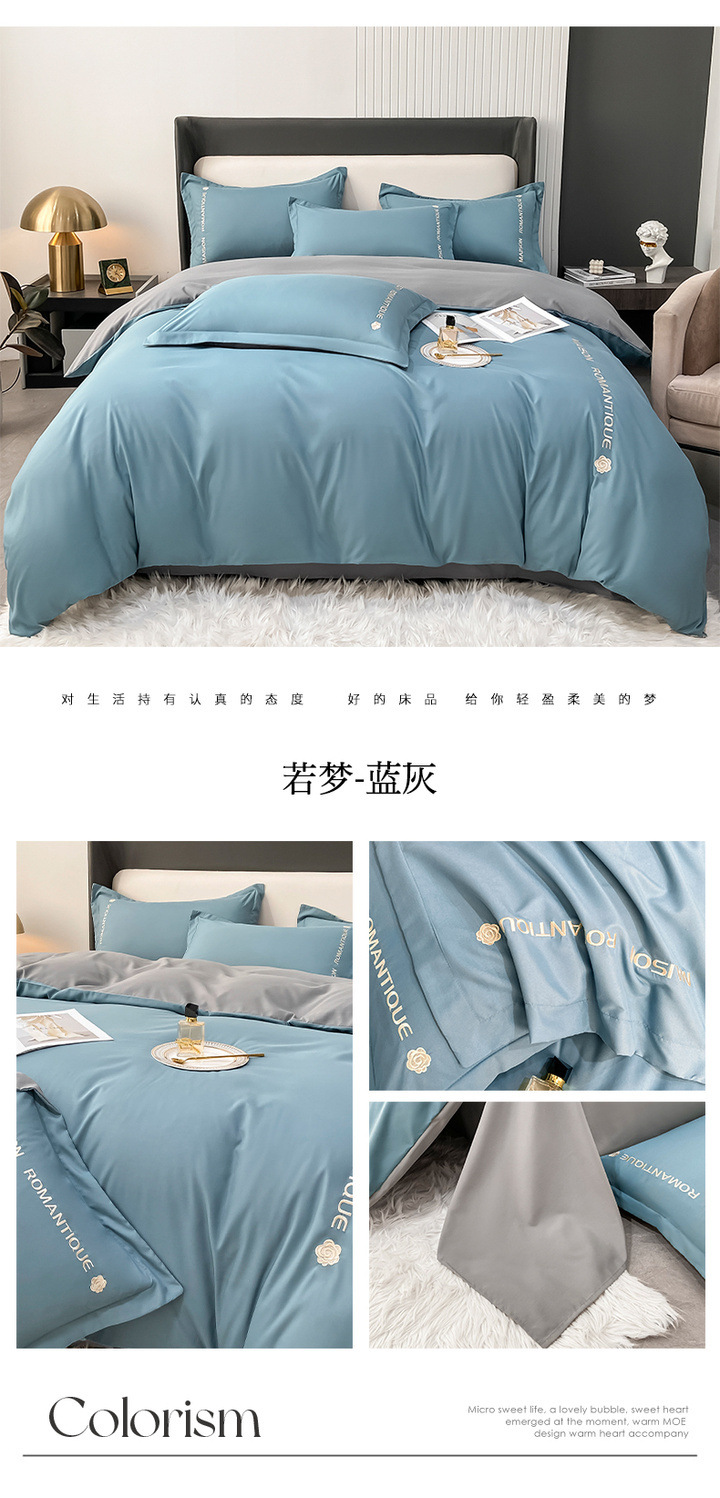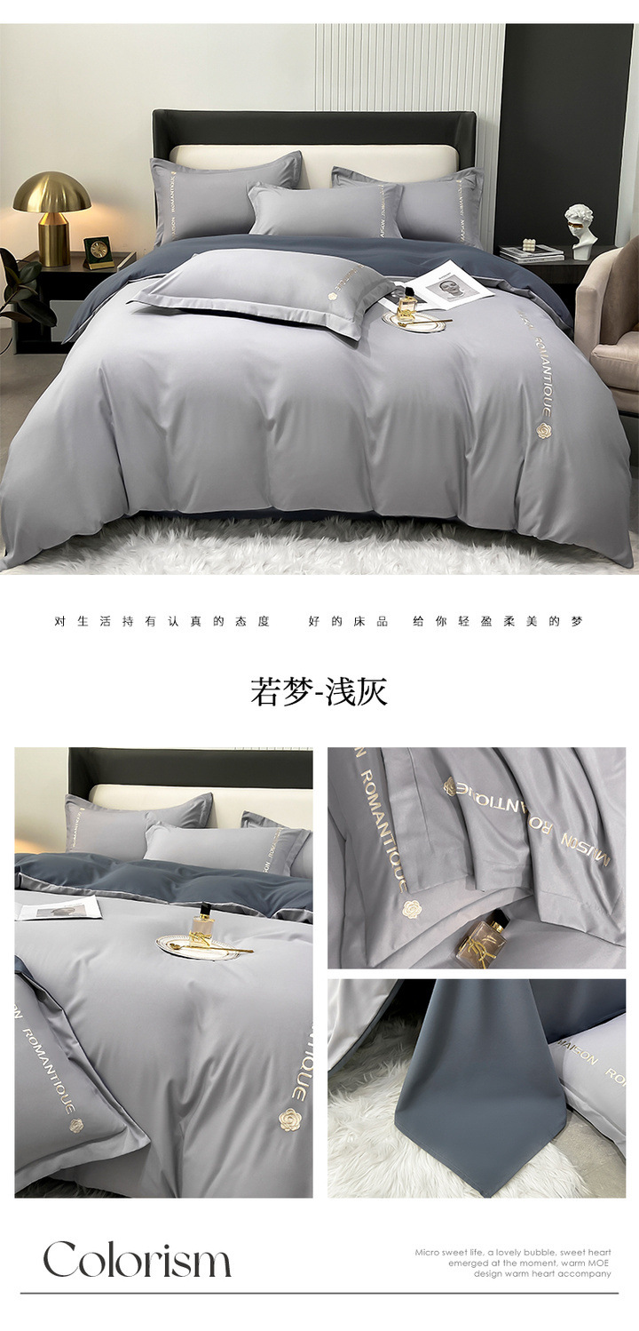 Cuatro juegos de algodón lavado de lujo ligero para la piel cuatro estaciones ropa de cama universal bordada dormitorio tres juegos de sábanas y edredones