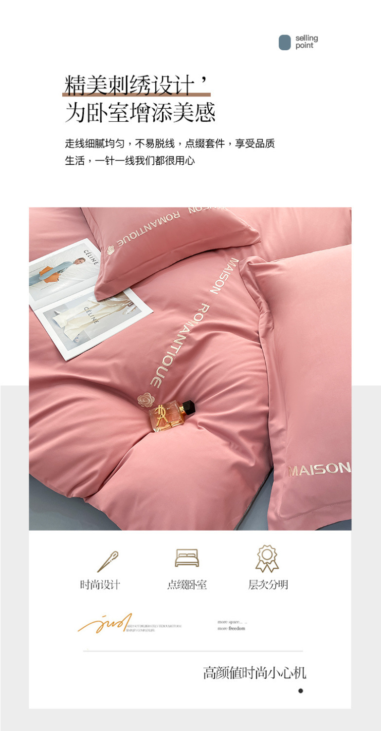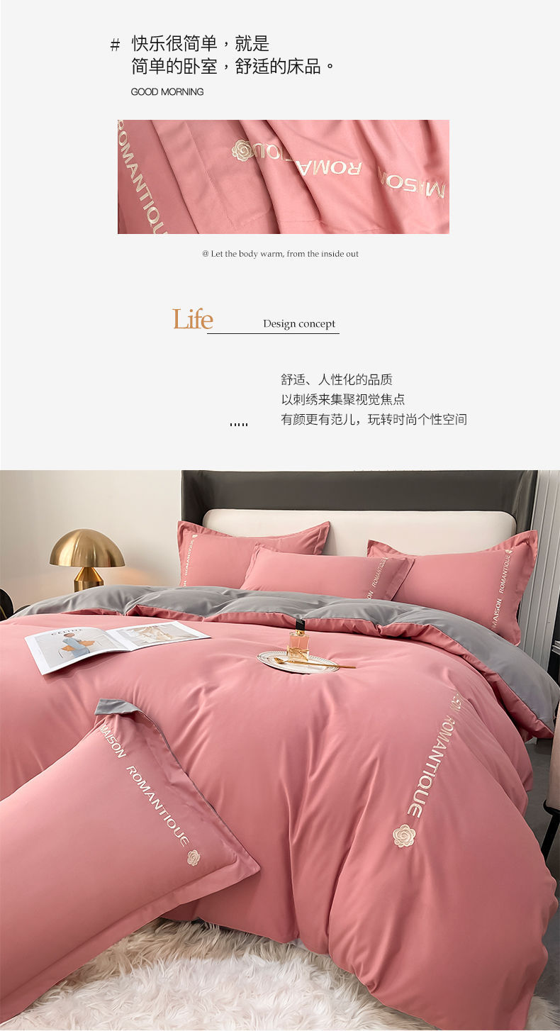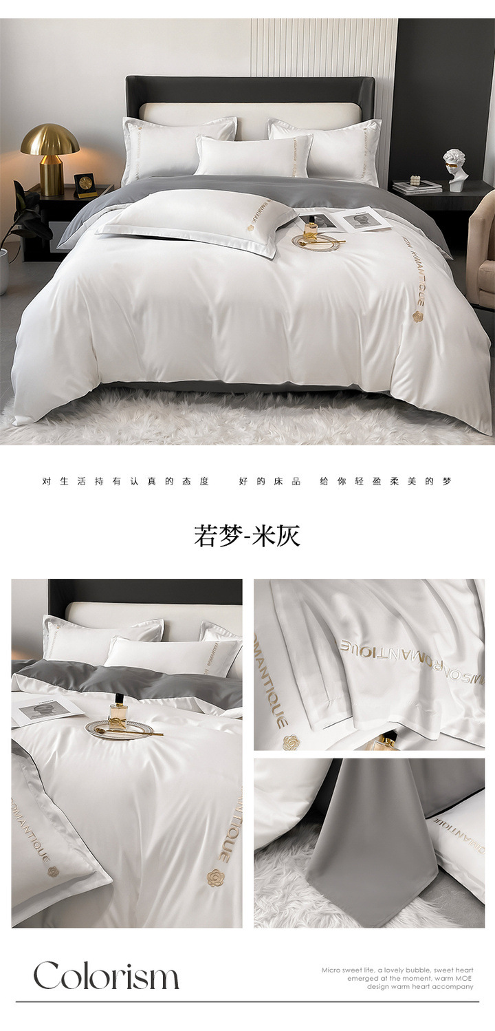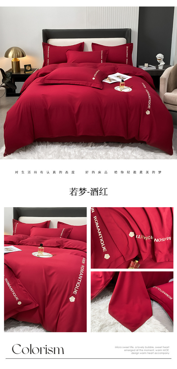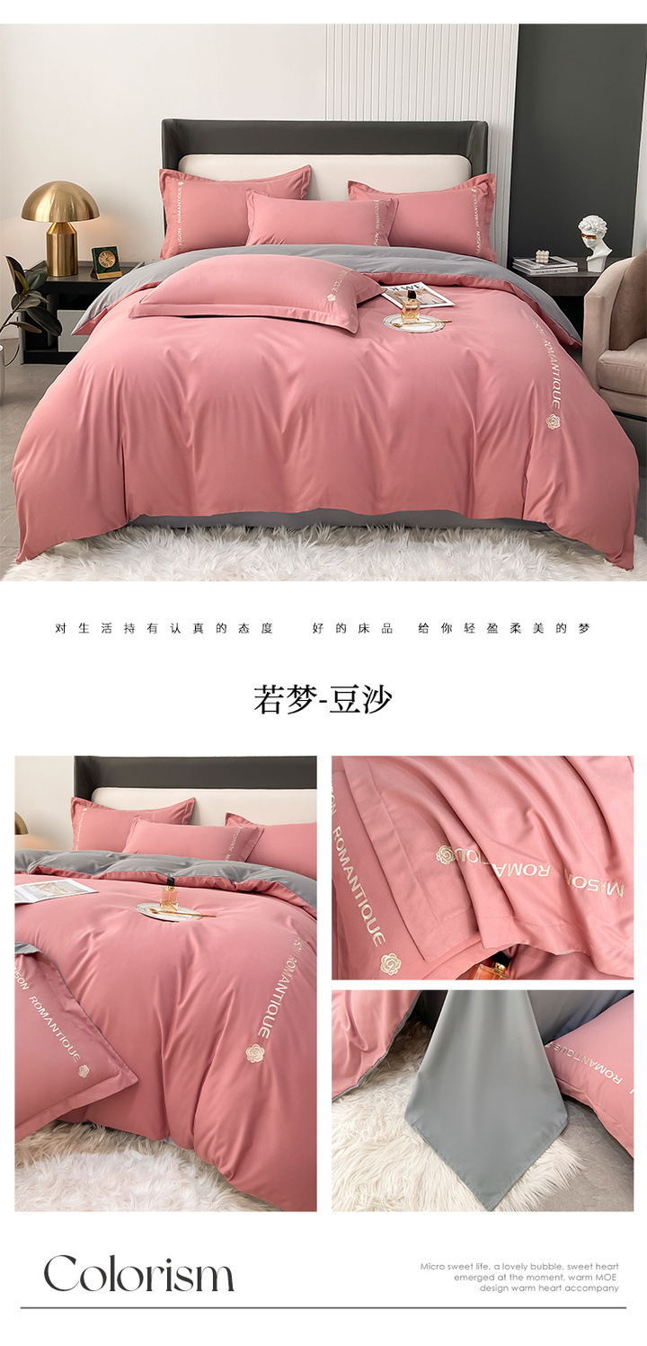Cuatro juegos de algodón lavado de lujo ligero para la piel cuatro estaciones ropa de cama universal bordada dormitorio tres juegos de sábanas y edredones